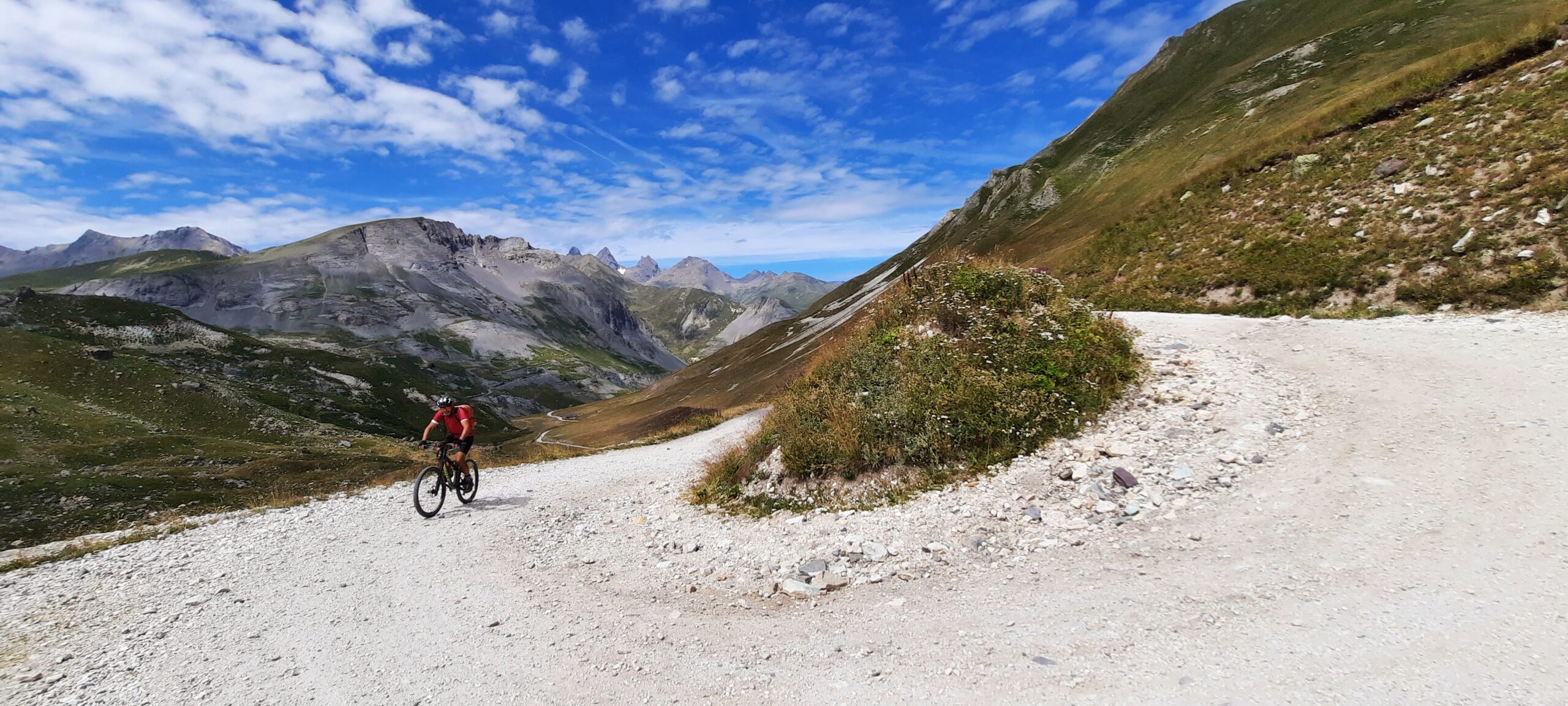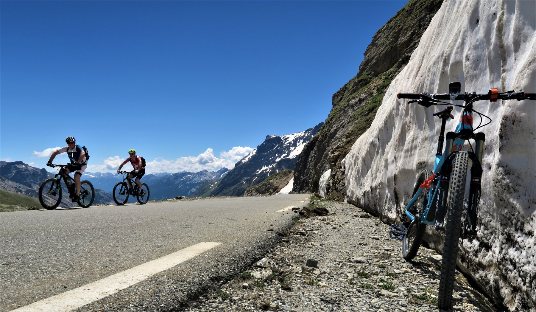 Si sale per asfalto fino al Colle del Galibier (chi vuole può fare l’Ancienne del Galibier, sterro un po’ duretto,ma fattibile).