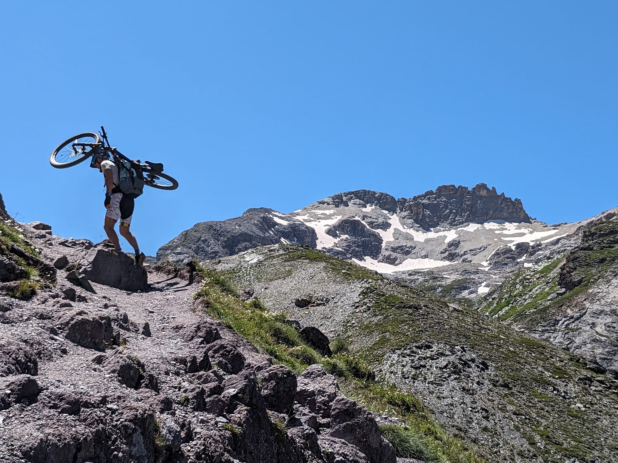 Poi si sale fino al Col de Ponsonniere, poi discesa a volte tecnica fino all’asfalto.