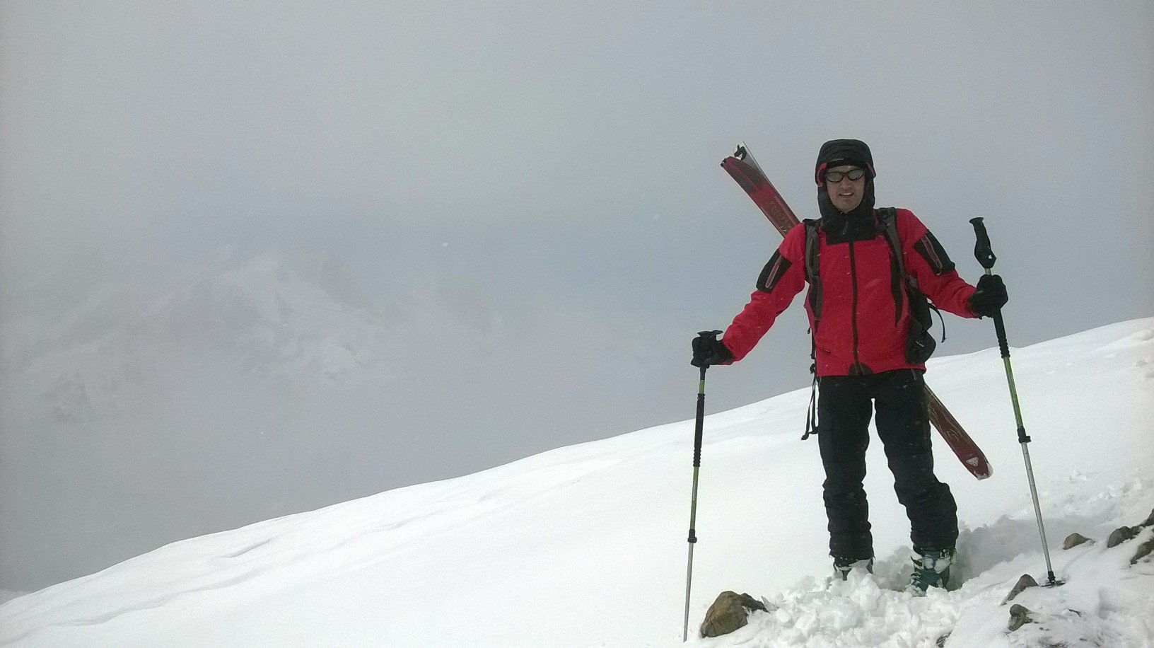 Nevischio e nebbia hanno caratterizzato la trasferta in terra di Francia ma non ci hanno impedito di raggiungere la vetta del Pic Blanc du Galibier. Partiti sci in spalla (il portage iniziale è di una ventina di minuti, fino al guado a quota 2.150 circa) sotto una leggera precipitazione mista pioggia e neve, ci siamo inoltrati nel vallone con una nebbia sempre più fitta e una visibilità divenuta via via nulla. Solo grazie al gps abbiamo raggiunto la base del ripido pendio finale dove abbiamo atteso almeno tre quarti d’ora una schiarita che ci consentisse di apprezzare la posizione e valutare la situazione. Un raggio di sole, invero timidissimo, ha bucato la coltre di nubi e ci ha consentito di salire rapidamente in punta con visibilità comunque scarsa. Il panorama, che sappiamo essere davvero meritevole, non l’abbiamo proprio visto. Discesa buona solo in alcuni tratti per la nebbia e la neve pesante ma, sciando con un po’ di decisione, qualche serie di belle curve sui pendii del vallone l’abbiamo fatta. Dal guado in poi siamo scesi sci in spalla sui prati, non più sciabili ma molto scivolosi, in quanto la poca neve caduta in nottata e nella prima parte della giornata era ormai sciolta. Con Danilo, Daniela, Alberto e Vincenzo.