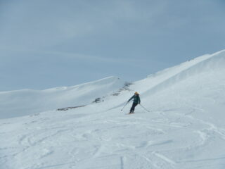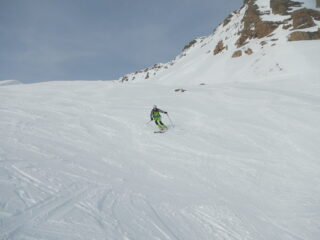 Crosta da rigelo portante su tutto il percorso; migliore nella parte medio alta per un leggerissimo strato di neve fresca.