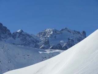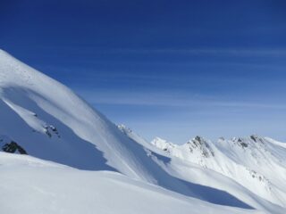 Parte alta con neve migliore, bassa labirinto tra neve e prato.