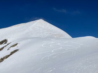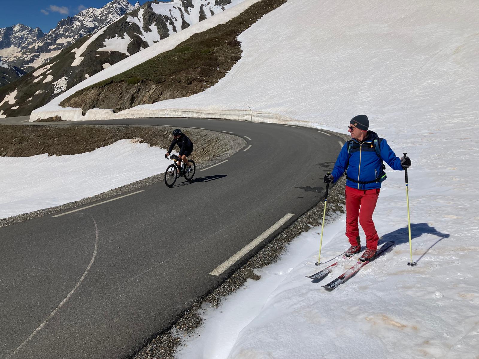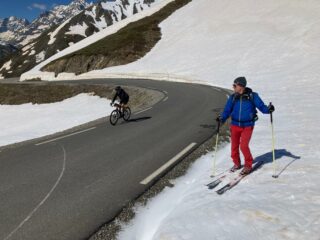 Partenza dal park 2430m sci ai piedi dalla strada tutto un biliardo di velluto con 4 dita di polvere della notte…..da tanto non si vedeva un Galibier così a giugno.