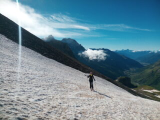 Partenza ancora dalla strada al park a 2430m. Un solo g&b (per poco) poi neve continua.