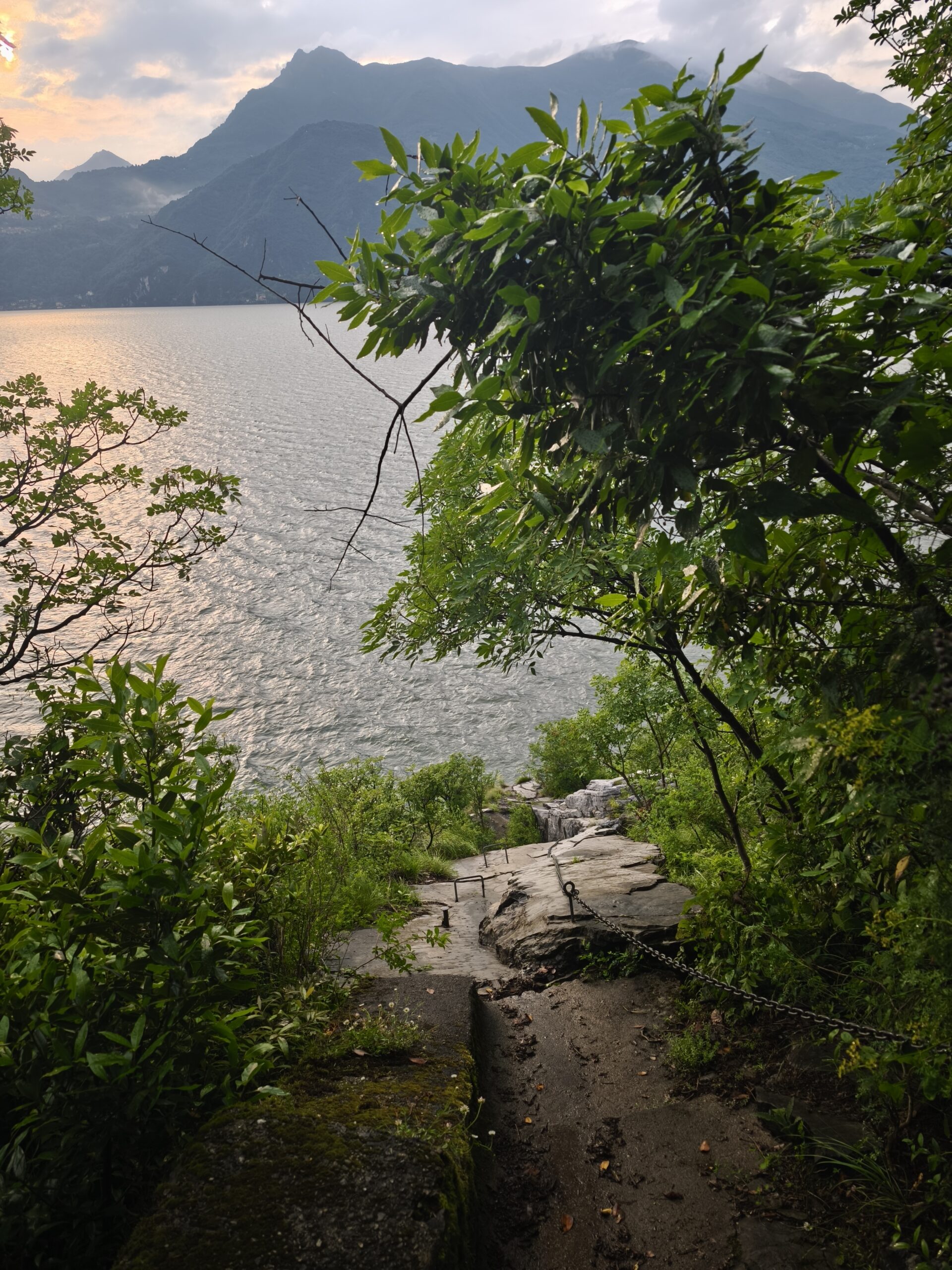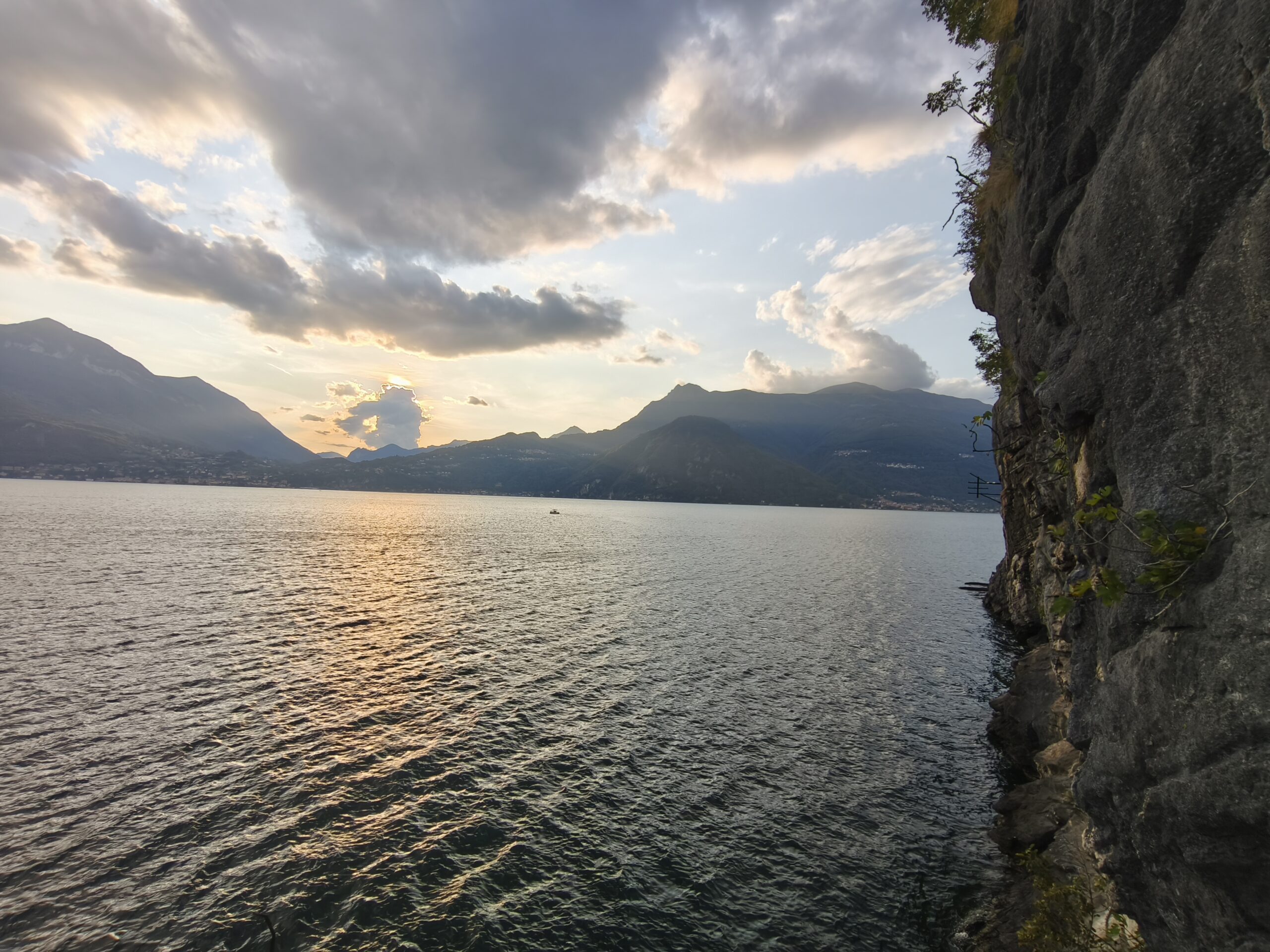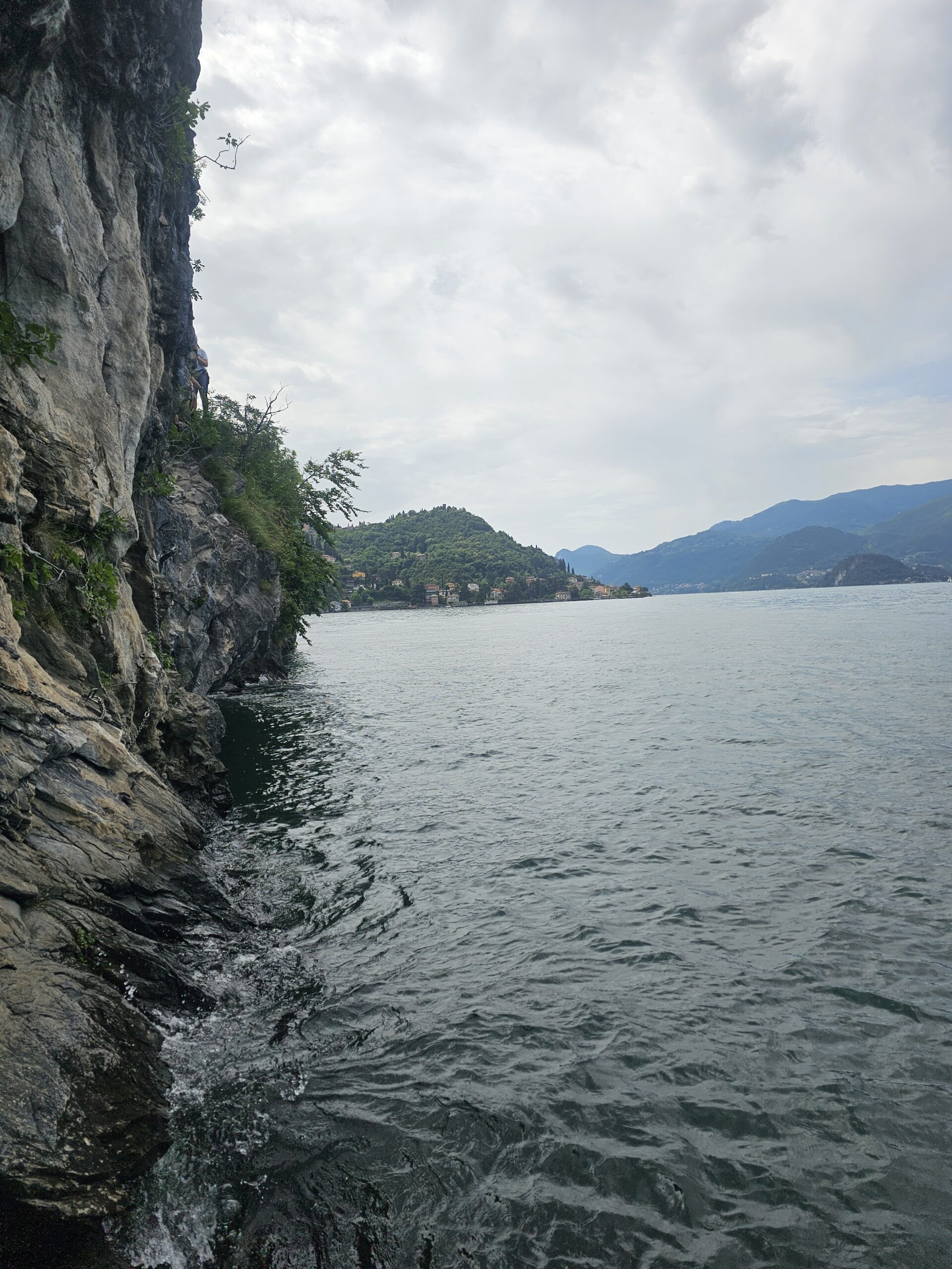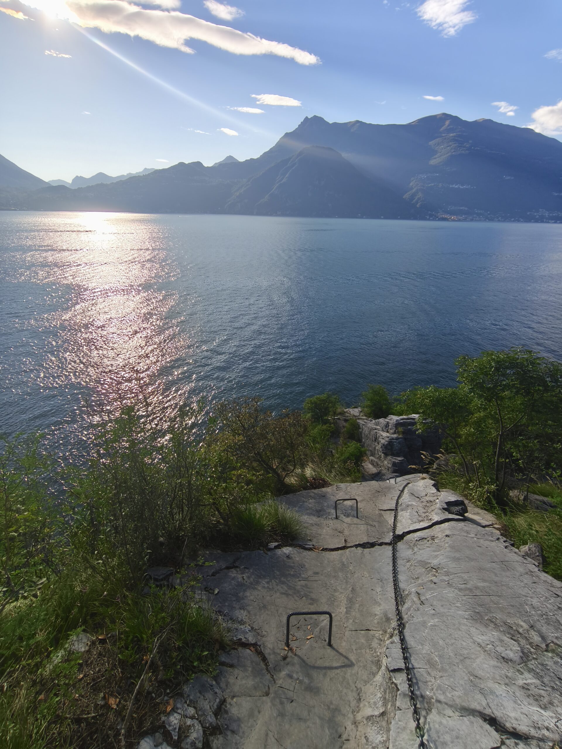 Percorrere la galleria in direzione Lecco sino a raggiungere la prima finestra artificiale della galleria (fittone e staffa) dalla quale si esce verso il lago. Prestare attenzione all’attacco perché nella galleria sono presenti altri cavi e catene a servizio della falesia e delle relative vie d’arrampicata presenti.
