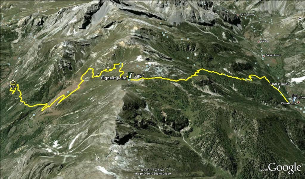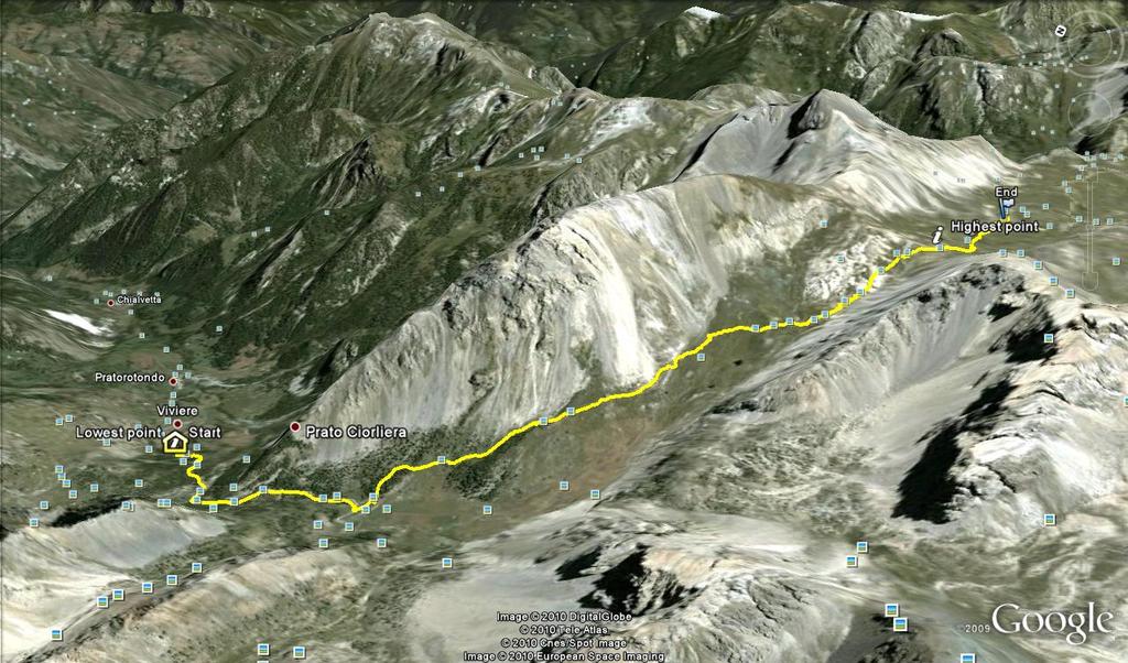 lasciare l’auto all’incrocio con la strada sterrata che porta al Gias Soleglio Bue 1700 m e seguire le tacche gialle fino al colle 2335 m. Scendere per 850 m, tenendo la sinistra, per i primi 100 lineari fare un po’ di attenzione, il sentiero e un po’ scivoloso causa pietre e seguire le tacche giallo blu fino a Chialvetta.