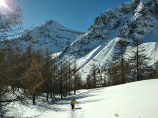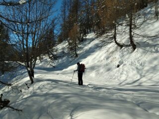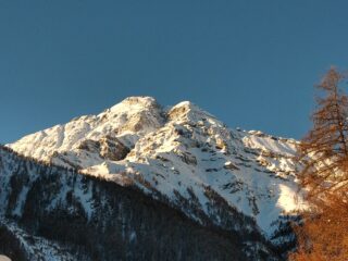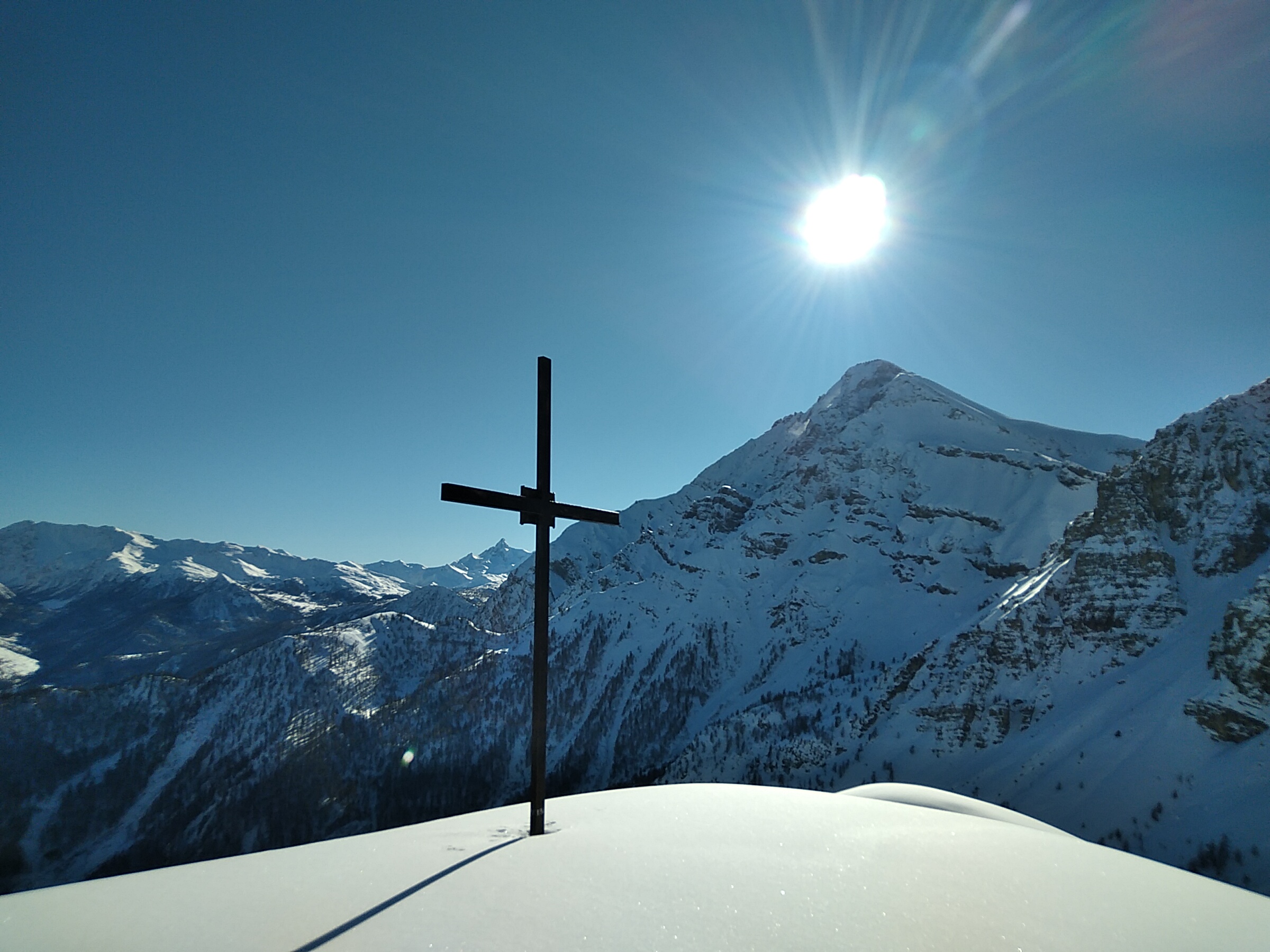 Nessuno sull’itinerario e battuta traccia dal sentiero fino in cima. Scesi dal bosco dritti per dritti e poi lungo il torrente con maggiore difficoltà causa la poca neve. Risaliti al colletto Rosso su buona neve