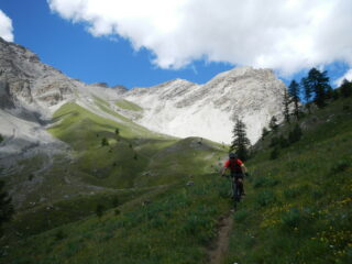 L’idea iniziale era quella di effettuare il giro ad anello ma non abbiamo rinunciato alla bella discesa sul sentiero di salita, ben ciclabile e molto panoramico.