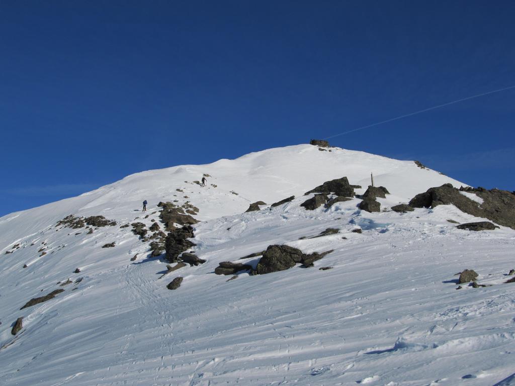 Quando il bosco si dirada si inizia a vedere la cima, che è quella più spostata verso sinistra (se ne vedono due molto simili). Si incrocia per l’ultima volta la strada per il Col du Granon a quota 2250 m, e si prosegue per comodi dossi e dorsali sempre a sinistra, raggiungendo un enorme altopiano, da cui appare ormai evidente la cima ed il percorso (che non è mai obbligato). Attraversato tutto il pianoro, si risale un pendio di pendenza moderata, che adduce ad un nuovo ripiano sotto la “pala” finale della Gardiole. A questo punto si può risalire direttamente il pendio più ripido, circa 100 m sui 30°, oppure piegare a sinistra per andare a raggiungere velocemente la dorsale sud-ovest, decisamente più dolce, che raggiunge una anticima (con un piccolo rudere militare) e quindi dopo un breve tratto pianeggiante, si giunge allo strappetto conclusivo finale che conduce in cima, caratterizzata da una truna di pietre circolare (priva di tetto), che in caso di vento può offrire un po’ di riparo.