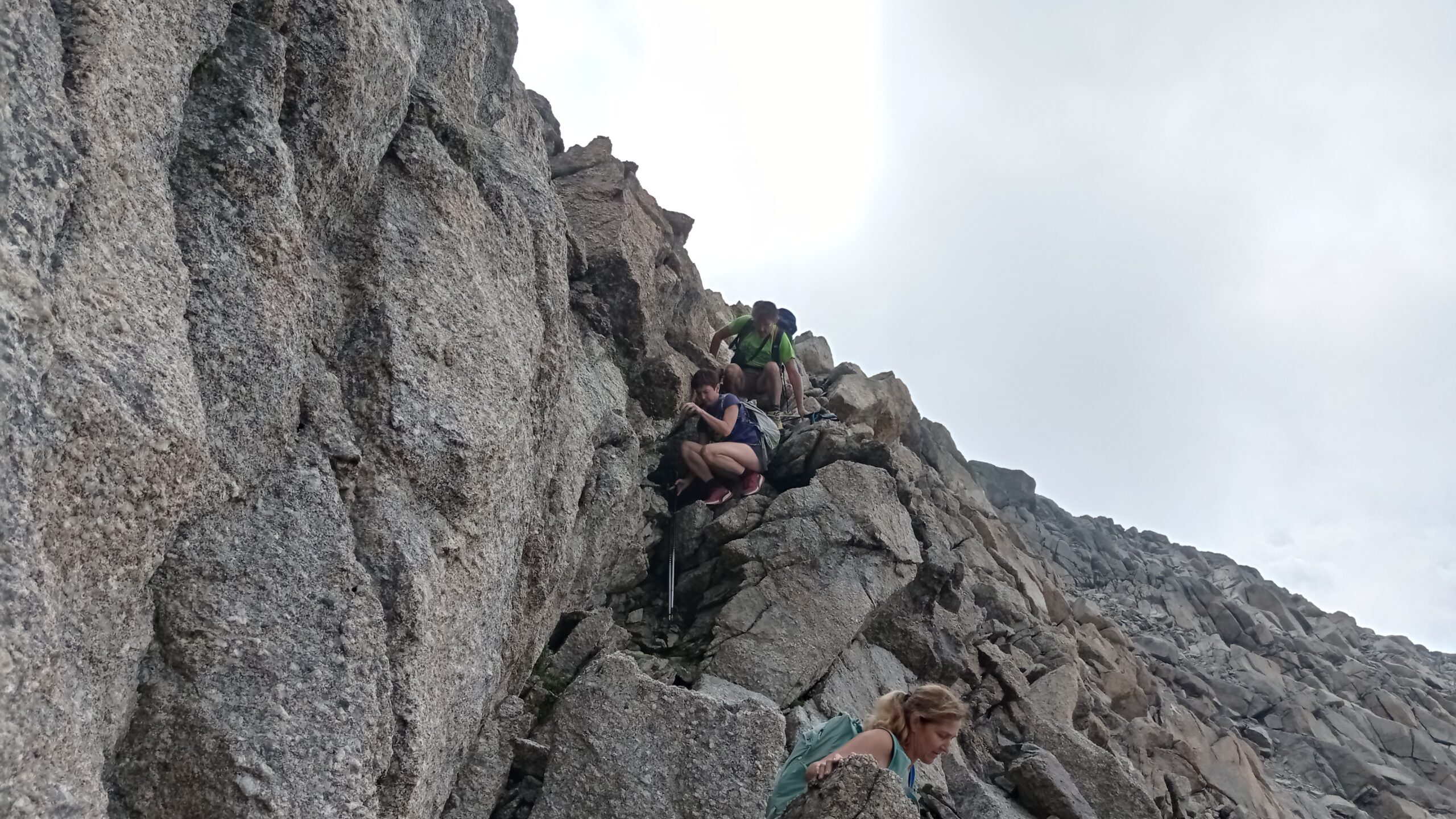 Si risale su pietraia (noi non abbiamo visto ometti) fino al colle (3001 m). I primi 150 metri di discesa sono sfasciume puro (fare attenzione) dopo la situazione migliora e si arriva su pietraia abbastanza stabile nei pressi del bivacco Revelli.