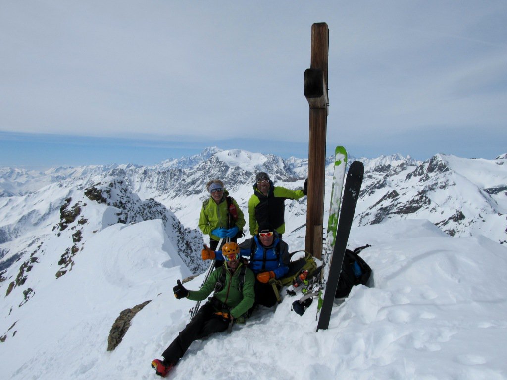 Giornata iniziata male per me, pelli che si staccano, fatica a trovare il passo giusto, paturnie varie, volevo fermarmi al rifugio, un grande grazie ai compagni di gita Orfeo, Renato, Davide e Roby che mi hanno trascinato a suon di minacce fino in punta.