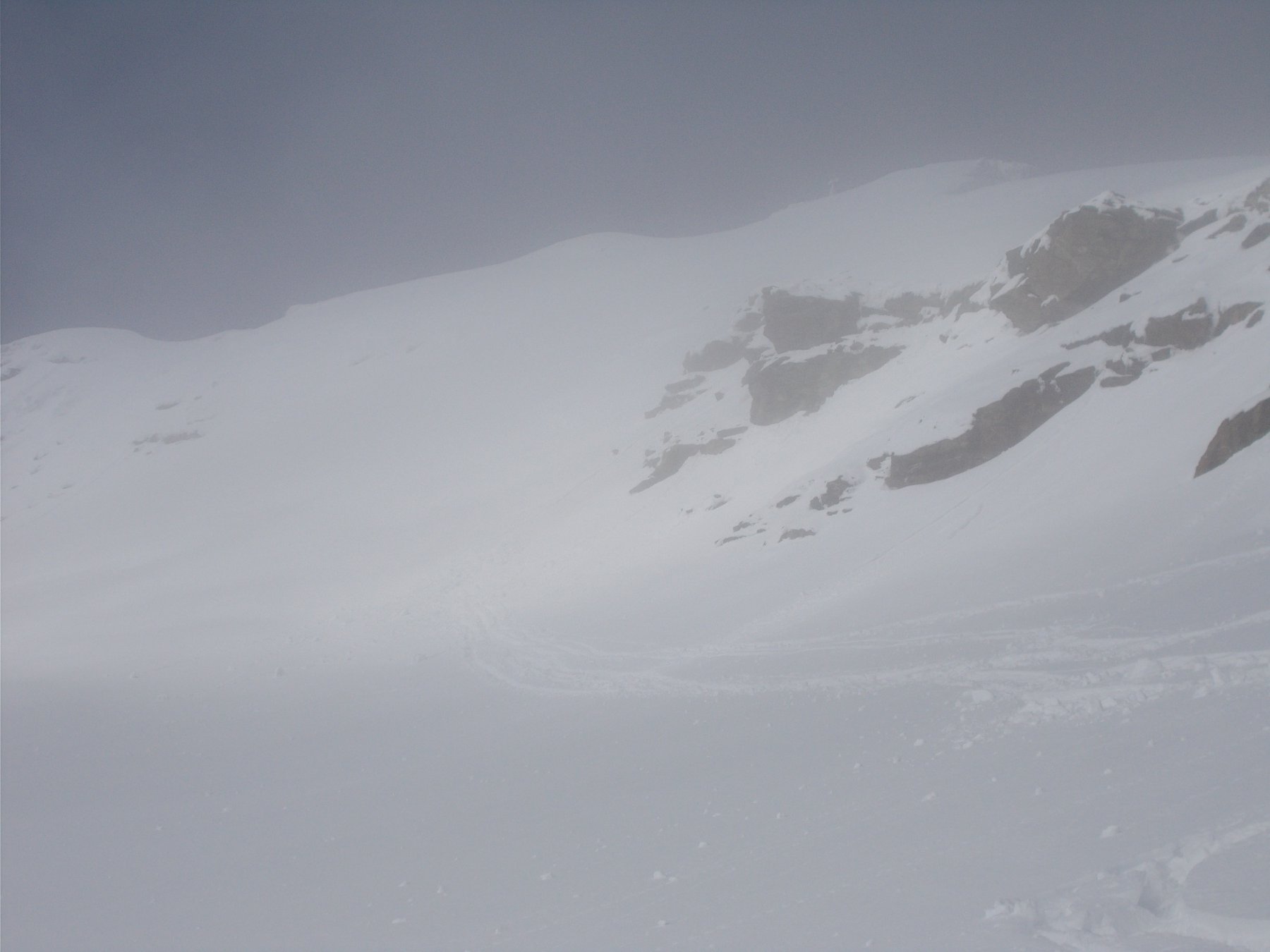Partiti dalla macchina che sembrava di essere in un sogno, la nevicata del giorno prima aveva reso il paesaggio un ambiente incantato..siamo partiti dalla macchina con sci ai piedi, abbiamo per un po dovuto pistare. Siamo arrivati in cima che c’era nebbia, la visibilità ridotta non ha però compromesso il piacere della discesa..giornata molto calda e umida, un caldo anomalo.. Con Gambalesta..