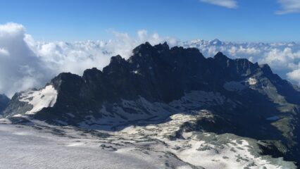 Parto con il dire che il Rifugio Crete Sèche è davvero un bel posto , merita una visita anche solo per una polenta. Gestori giovani , sorridenti e gentili . Si è mangiato bene , rifugio accogliente. Per la gita , ancora nevai nella parte alta prima del colle del mont Gelè che aiutano specialmente in discesa. Dal colle sul ghiacciaio tutto ancora coperto ma molto segnato dal caldo di questi ultimi giorni. Per la salita ancora possibile salire dal canalino tutto a sinistra dritto per la vetta , oppure per il tratto attrezzato con le corde che porta sulla cresta rocciosa un po’ più a destra della vetta . Noi abbiamo optato per questa soluzione perché era già caldo alle 9.00 e mollava la neve. Panorama super dalla vetta