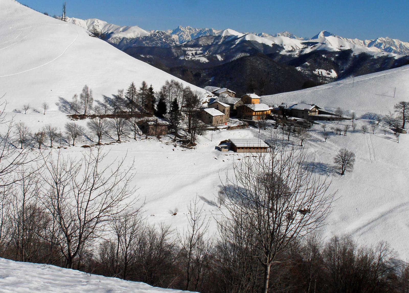 Dalla partenza degli impianti ormai smantellati a 1050m. prendere la mulattiera che parte immediatamente a ridosso di una cascina . Seguire la mulattiera nel bosco con direzione NW che conduce senza strappi alla Bocchetta di Orimento 1275m. dove è posto un piccolo villaggio (ca 1/2h).