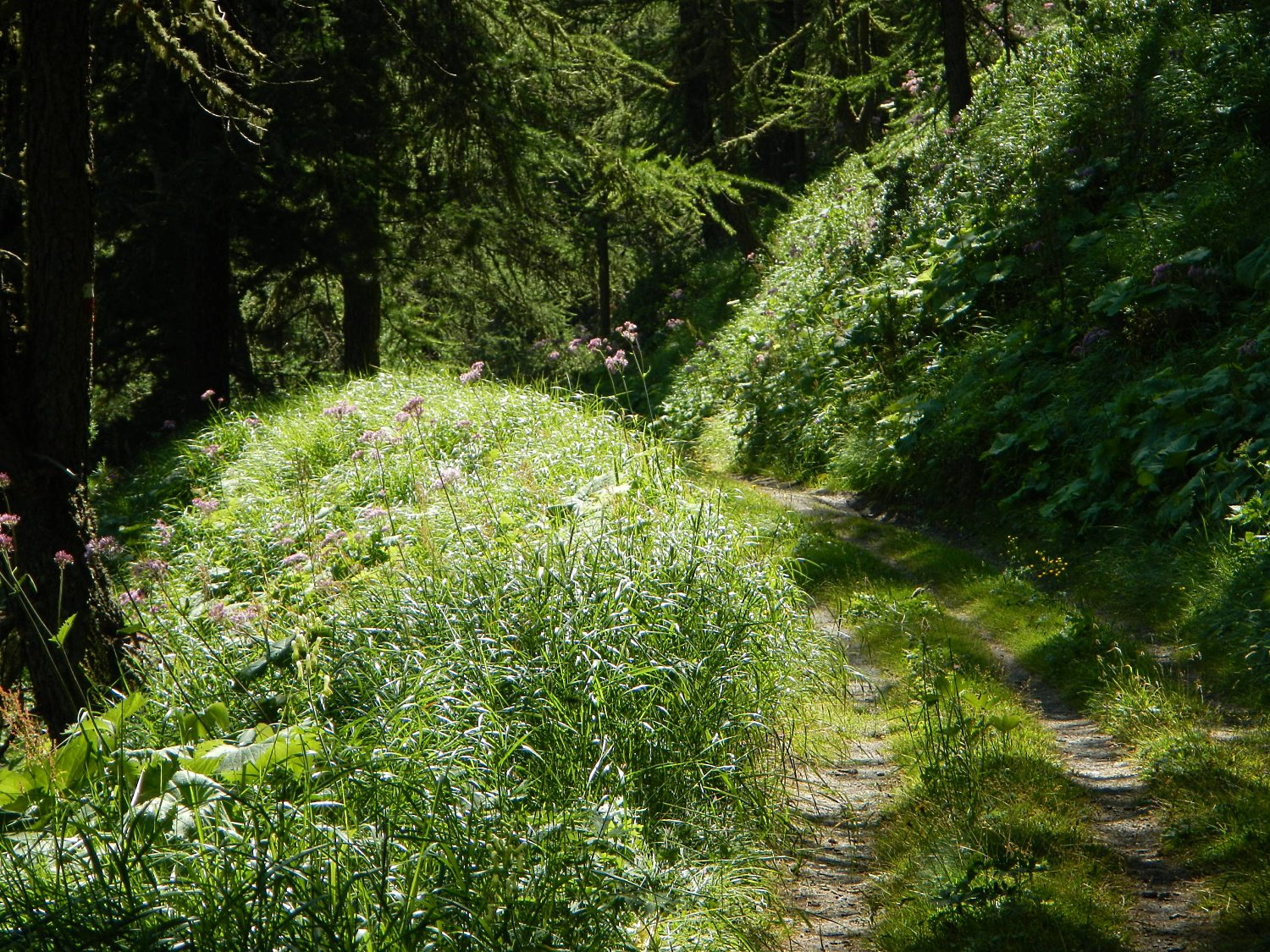 In discesa rientro sullo stesso percorso fino al bivio Ferro di Cavallo e da qui, su largo sentiero, al lago e all’alpe Laune. Poco sotto la “stazione sperimentale” una deviazione sulla destra verso Enfers, su sterrato con tratti in leggera salita, permette di ritrovare la strada che sale al Colle Blegier.