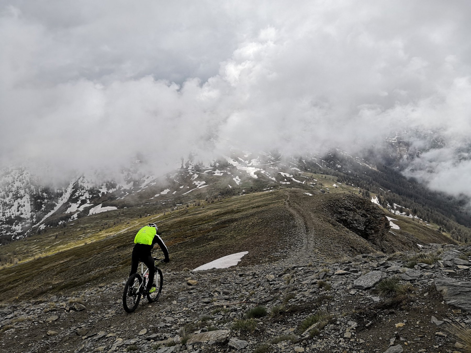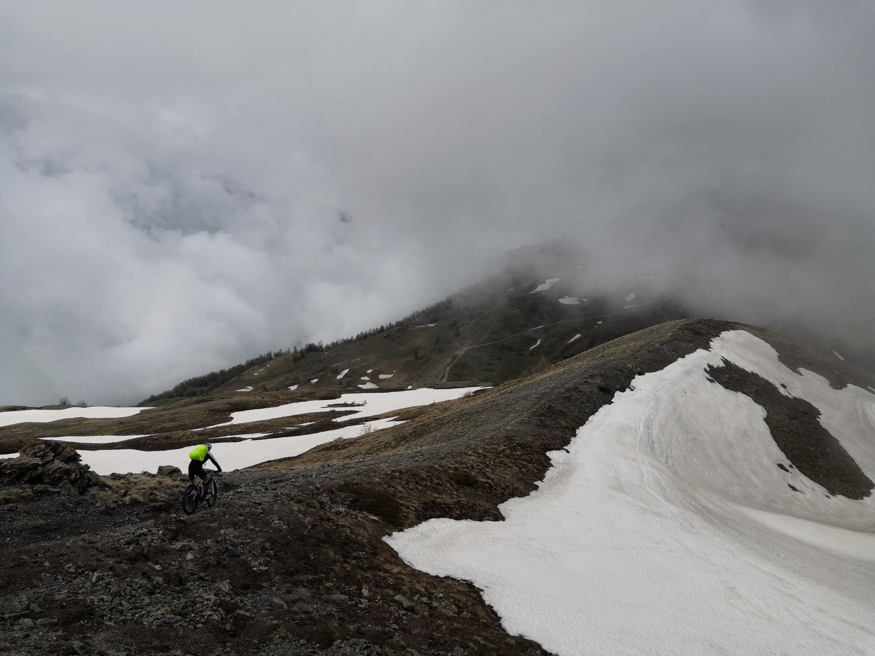 Da Pragelato si inizia a salire in direzione Gran Puy, dopo una serie di tornanti si trova una sterrata sulla sinistra in corrispondenza della Fontana Clot, la si imbocca iniziando a salire verso l’Alpe Giarrasson, l’unico bivio successivo è in un tornante a sx che dobbiamo percorrere evitando di andare dritti verso l’Alpe Rocce. Giunti al Giarasson (2125 m) proseguiamo dritti su sentiero ciclabile che attraversa uno dei tanti rii presenti in zona, per poi innestarsi più avanti sul sentiero per il colle di Costa Piana. Prendiamo ovviamente a dx continuando a salire per sentiero, poco ciclabile, arrivando in breve al colle e quota 2320 m.