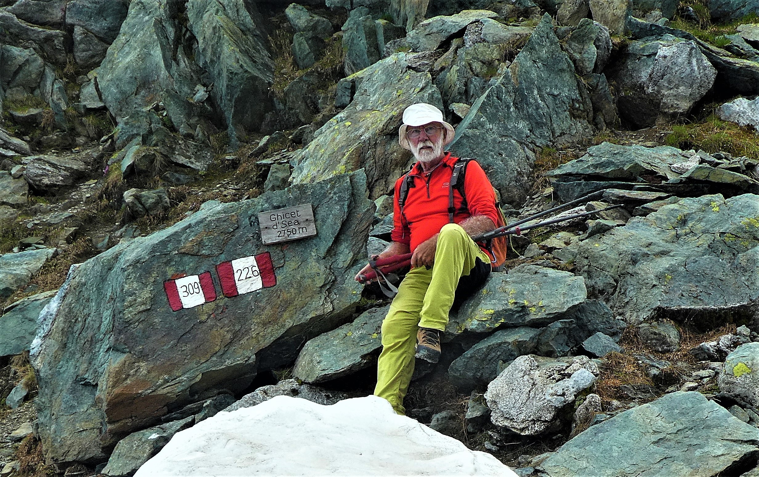 In partenza cielo aperto ma presto monta la nuvolaglia con un plaffond a 2400 m. che accorcia le visuali… sentiero ben evidente… neve completamente sparita …