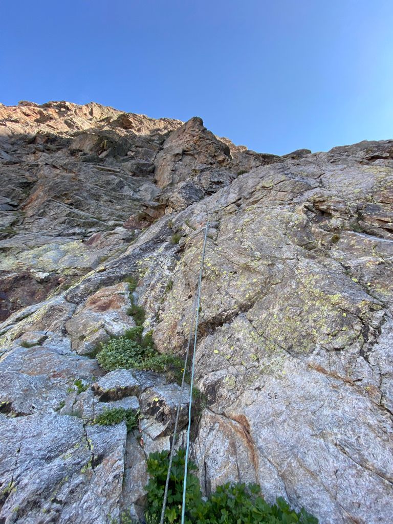 - L7. 3c, 4c, 3c verticale ben appigliata, attenzione: qualche roccia instabile