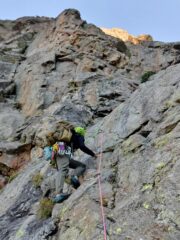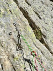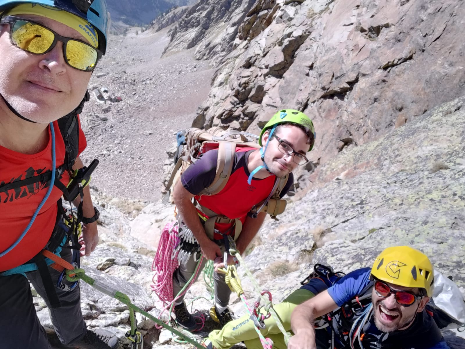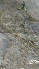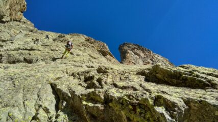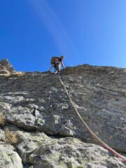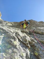 Ottima via Plasir tutta a spit e soste con catena e anello tranne S2 su spit e chiodo con cordone, gradi corretti sul 4c, bisogna usare i piedi per le placche, occhio agli attriti delle corde e sul secondo tiro di trasferimento a non muovere il marciume presente, giornata stupenda, in discesa scesi da S3 a S1 e poi a terra, rifugio Bozano chiuso, salita in compagnia degli stambecchi e con i Grandi Umbe e Claudio