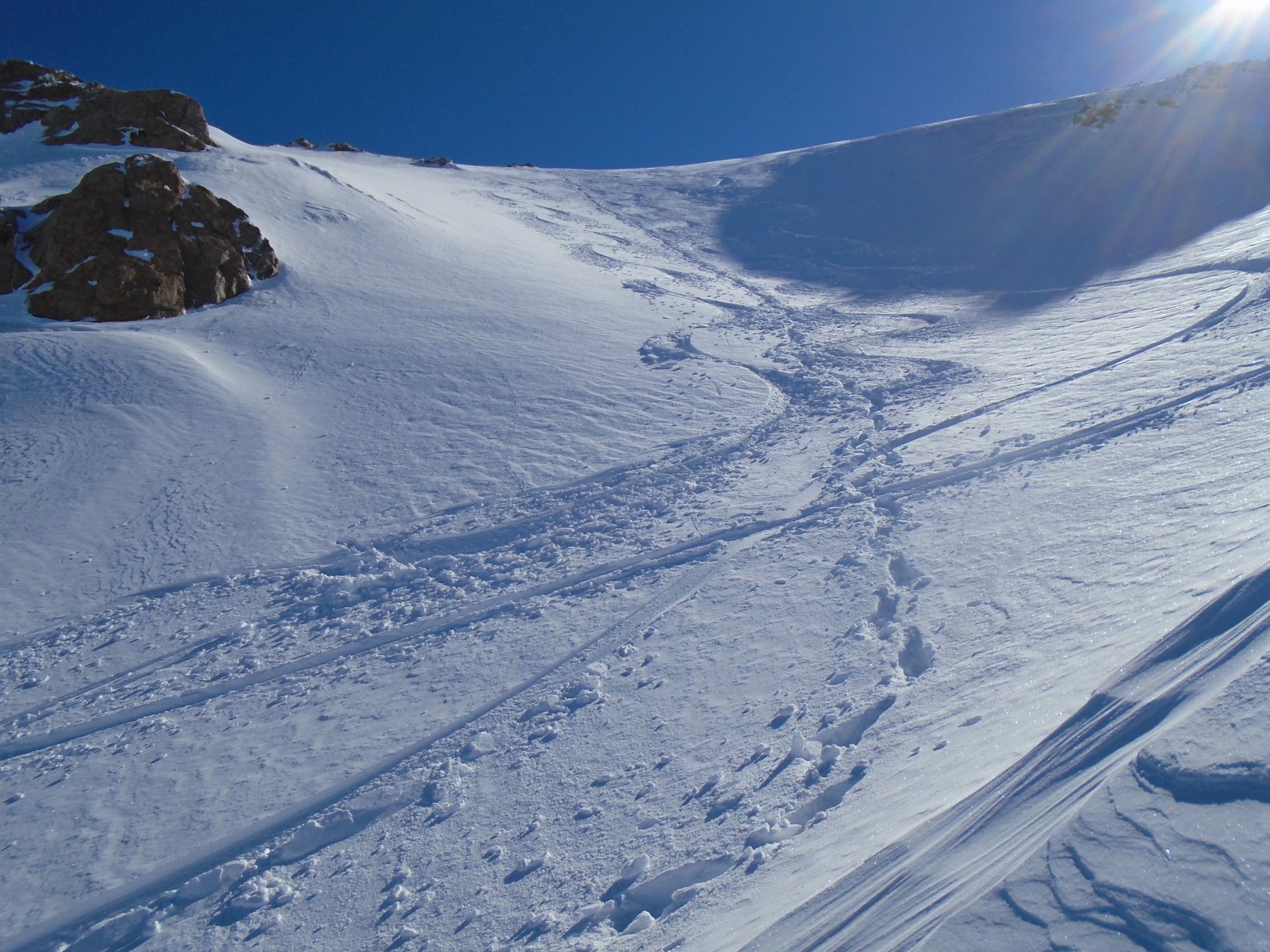 Partito da Pian della Casa alle 6.20 con -3°; in 10 minuti sono all’inizio della neve continua (1750m circa) a partire dall’ultima passerella di legno e tenendosi a ridosso del Rif. Elena. Tutta la salita sottozero, uscita al sole sul plateau sotto la vetta, su cui sono arrivato alle 8.35; clima piacevole, caldo e senza vento.Solo due prima di me, un sciatore e un snowboarder (grazie per la traccia), che stavano iniziando la discesa mentre arrivavo. Pendio sommitale un po’ pelato, ma ancora sciabile con continuità. In generale oggi condizioni strepitose con 10-15 cm di neve fresca nella parte oltre il grande masso centrale della gorgia, dove si passa agevolmente sia in salita che in discesa senza ramponi. Discesa dalle 9.15 con arrivo all’auto alle 11.10: foto e condizioni sono relative alla discesa.