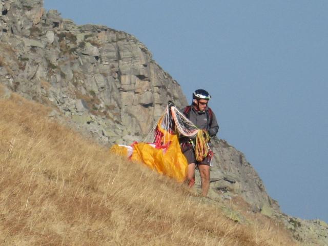 Volo con vela da speedflying e decollo a piedi nel periodo estivo, sempre con vento da nord / nord-ovest.