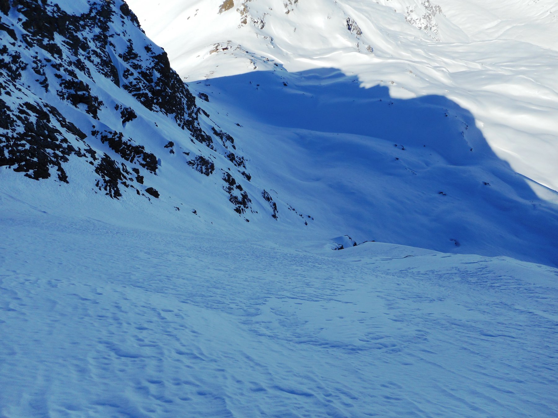 Volendo risalire il canale, per controllare le condizioni della neve, conviene all'Angolo seguire per il colle del Beth e di lì traversare fino all'attacco del canale.