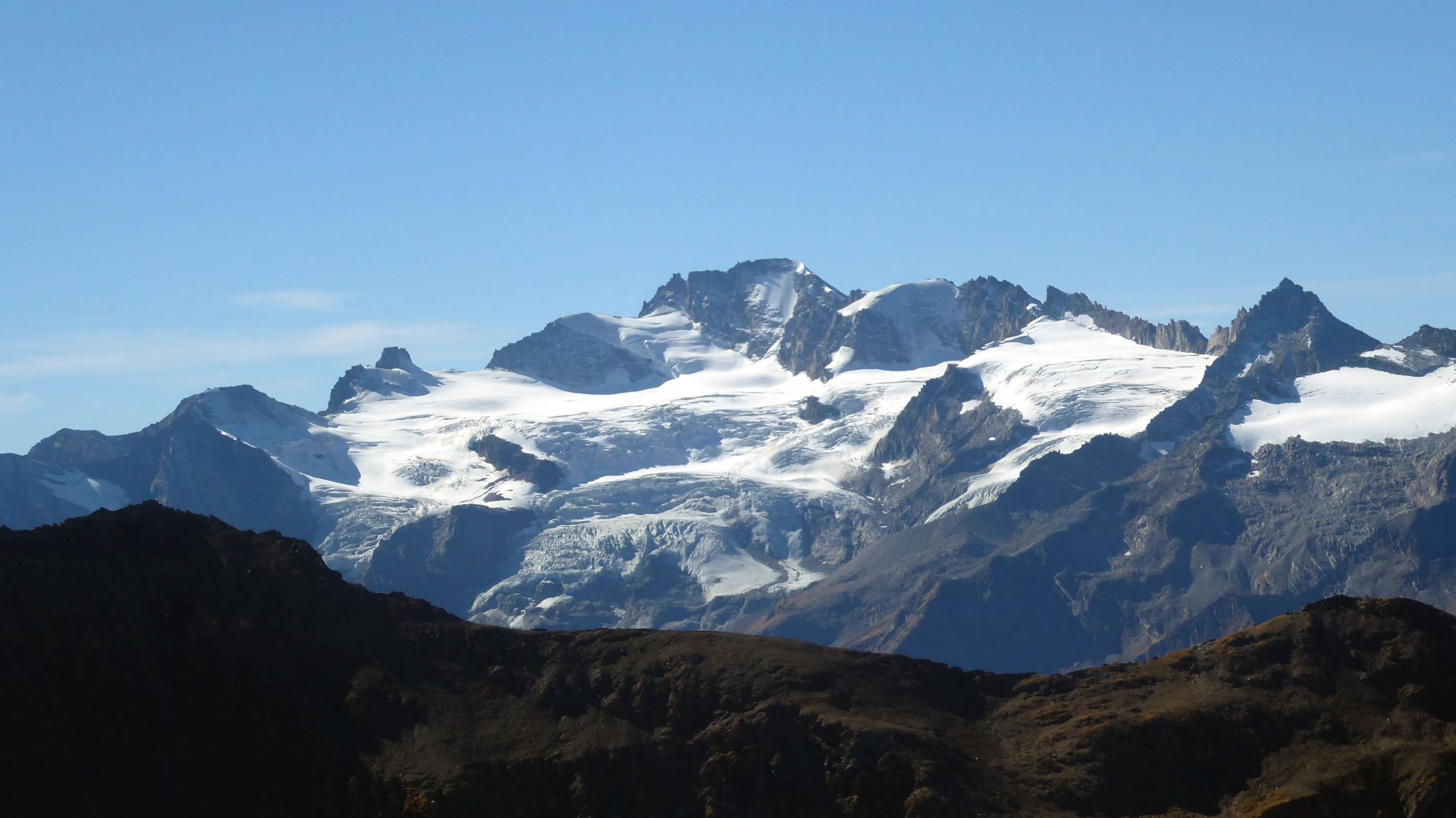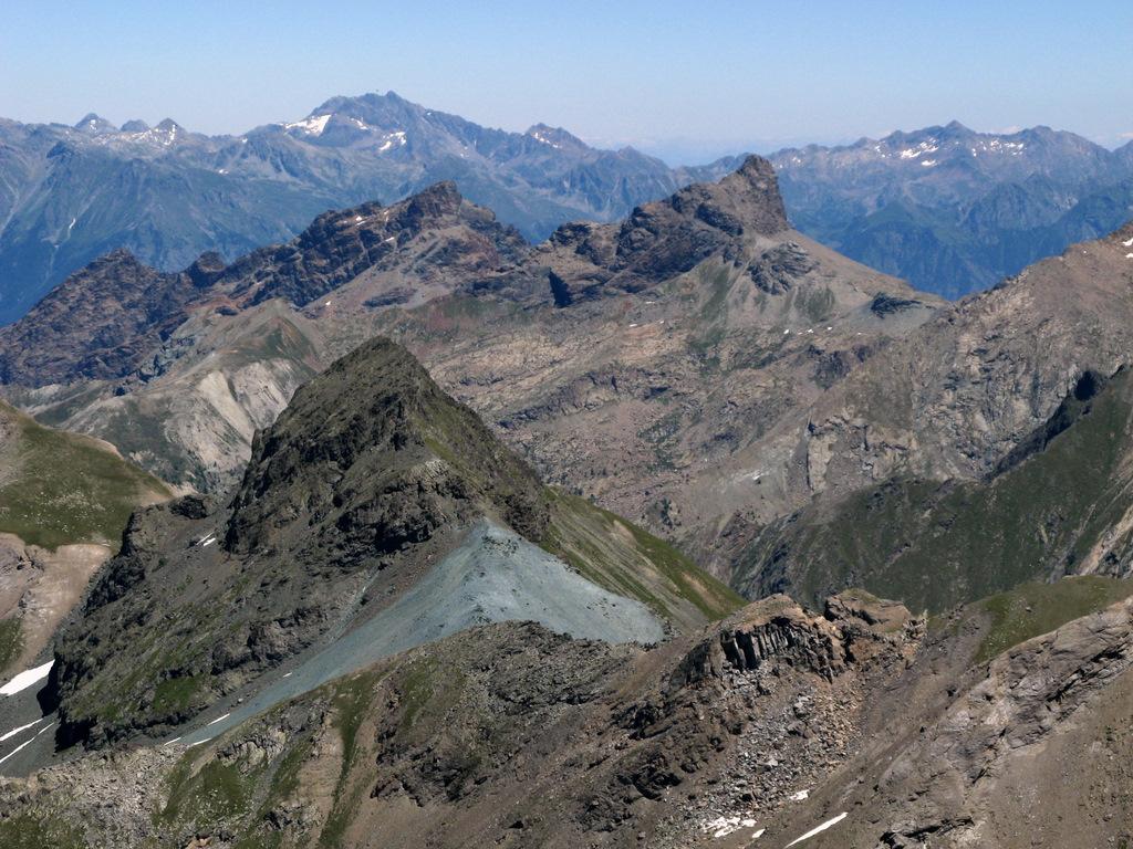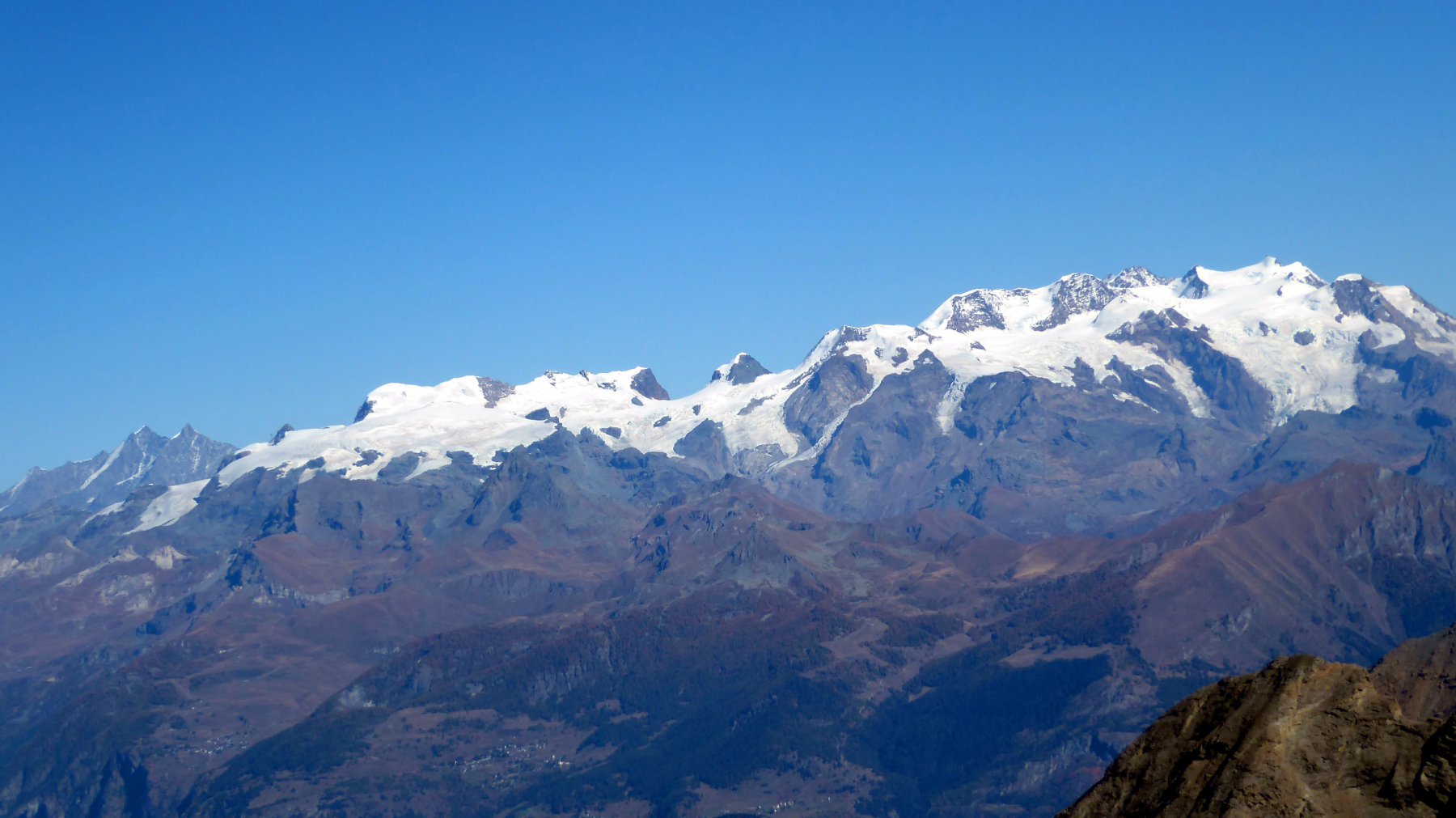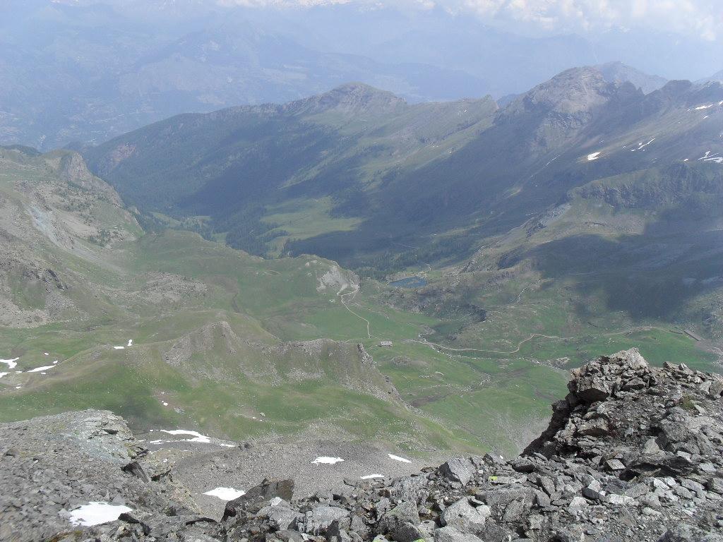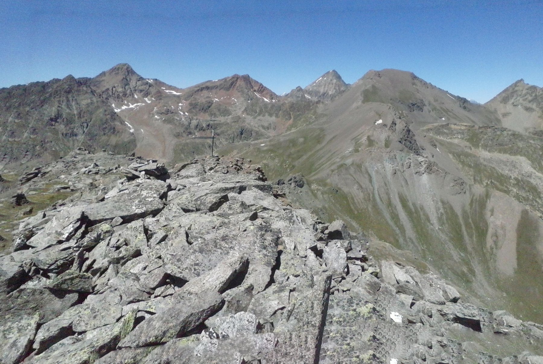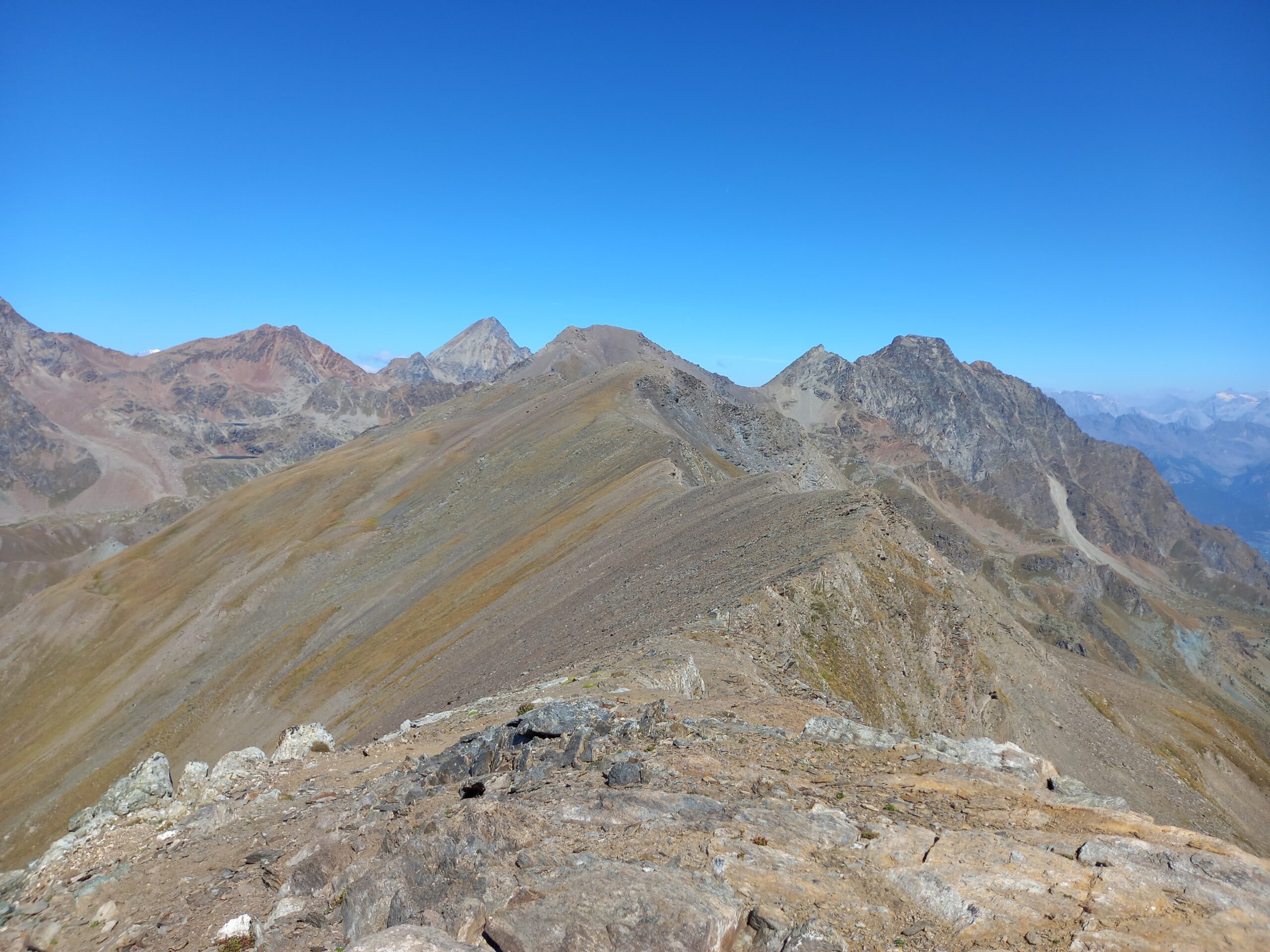 Da qui senza difficoltà seguendo il filo di cresta prima alla vetta 3091 m e in pochi minuti alla quota 3102 m. Dal colle puntare e superare verso sud la punta di Laval , raggiungere una sella ed affrontare l’ultimo pendio che porta alla piatta cima.