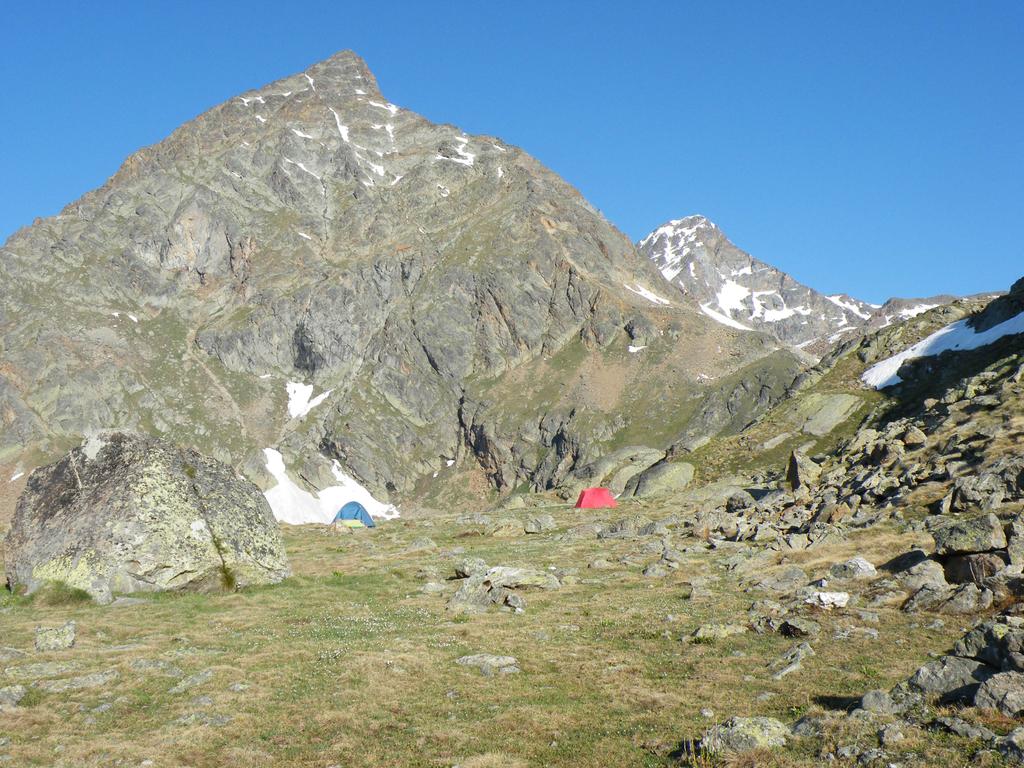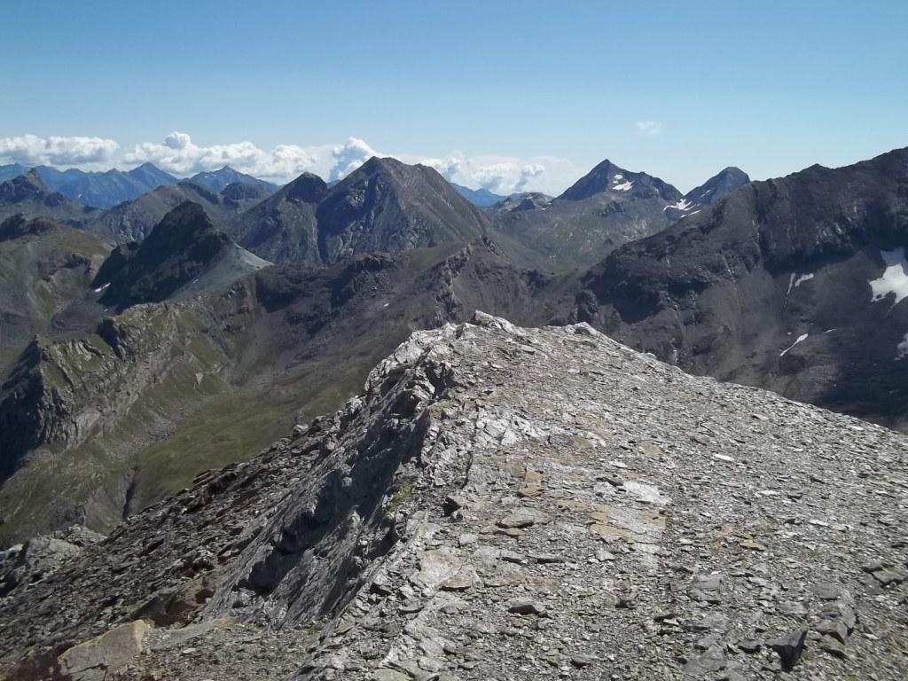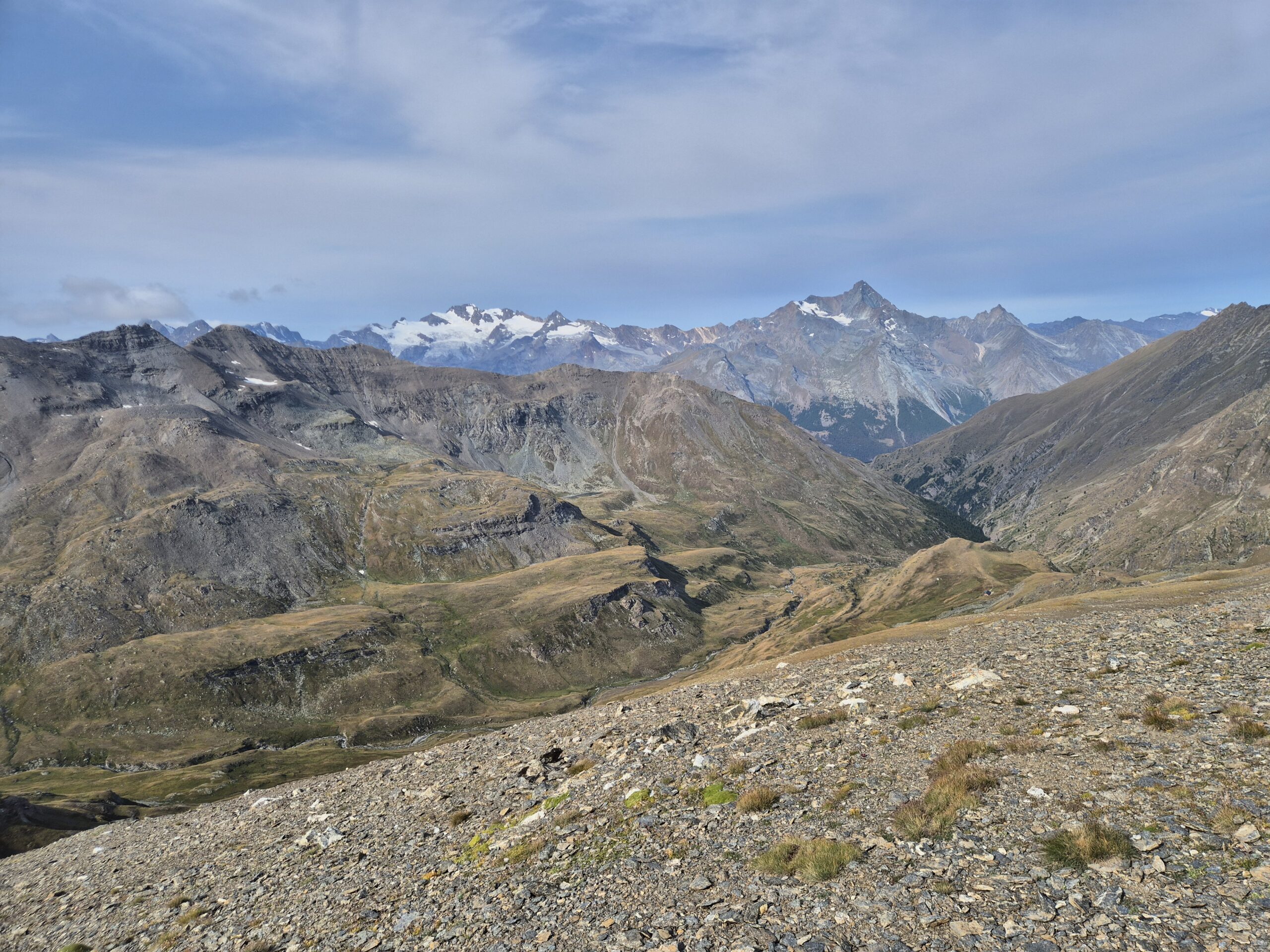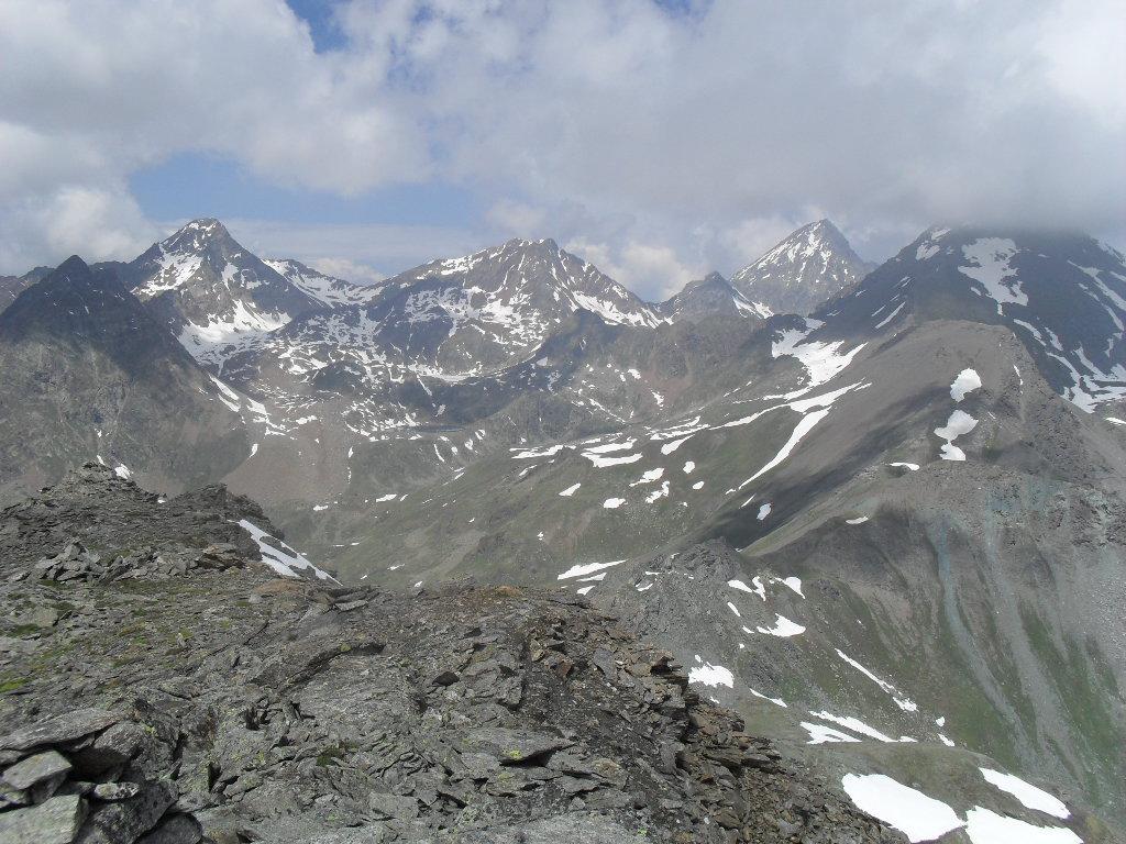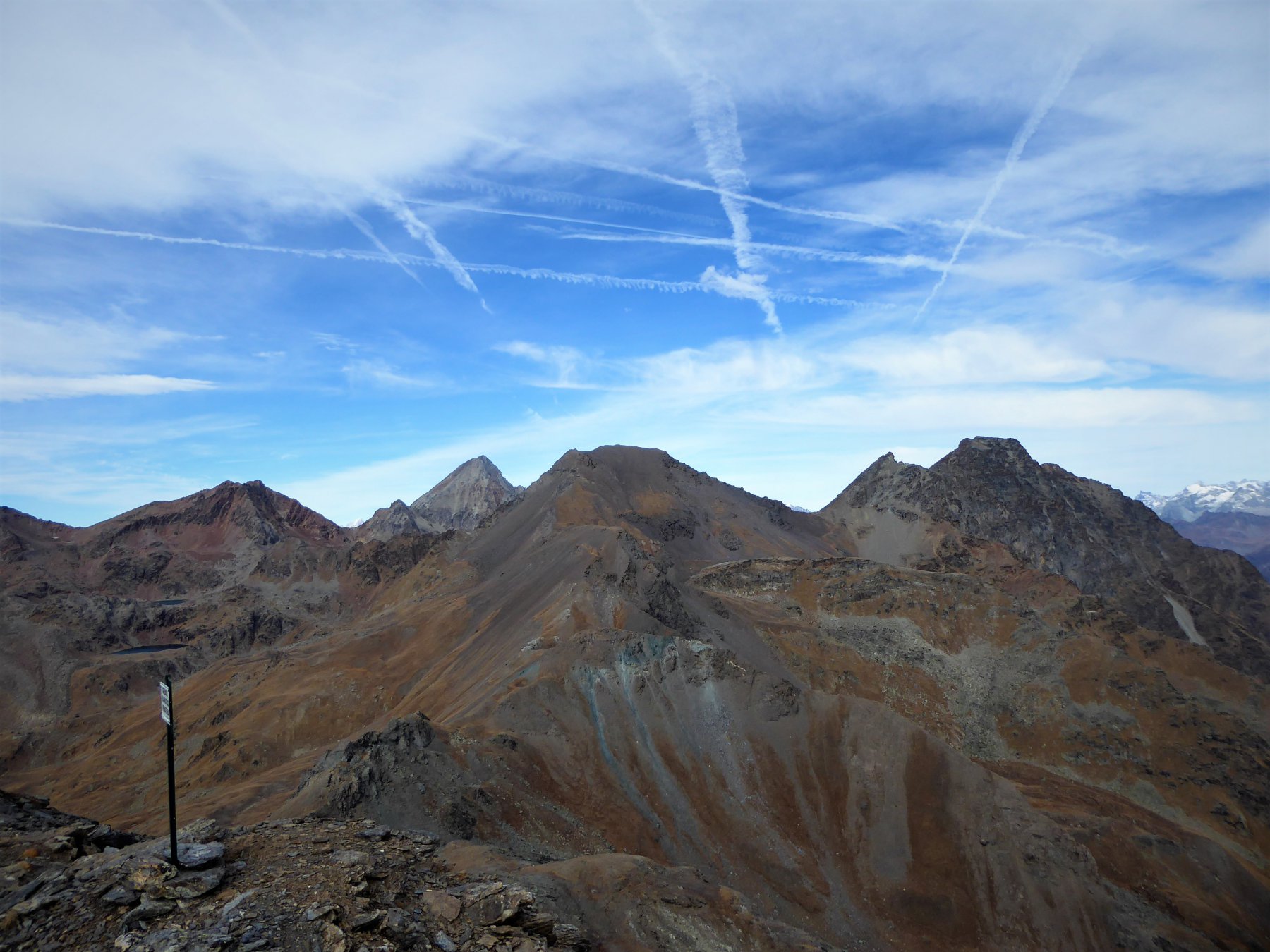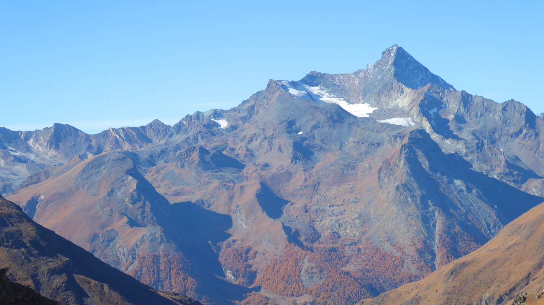 Da qui senza difficoltà seguendo il filo di cresta prima alla vetta 3091 m e in pochi minuti alla quota 3102 m. Dal colle puntare e superare verso sud la punta di Laval , raggiungere una sella ed affrontare l’ultimo pendio che porta alla piatta cima.