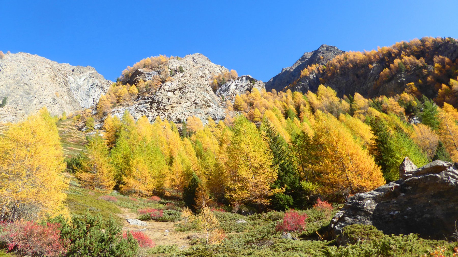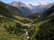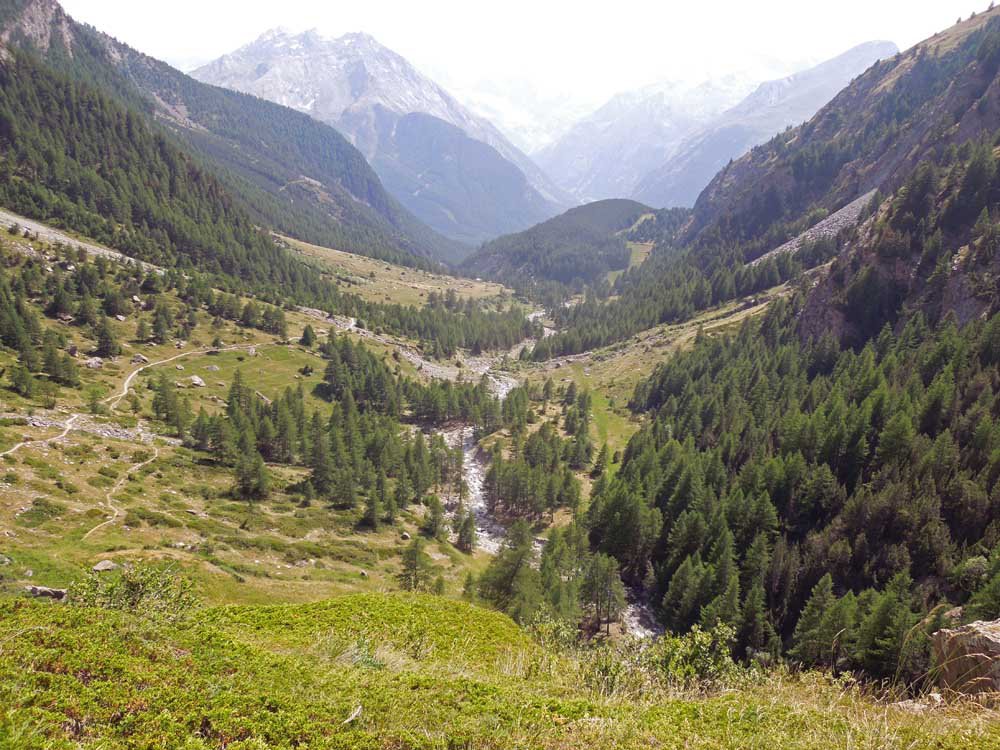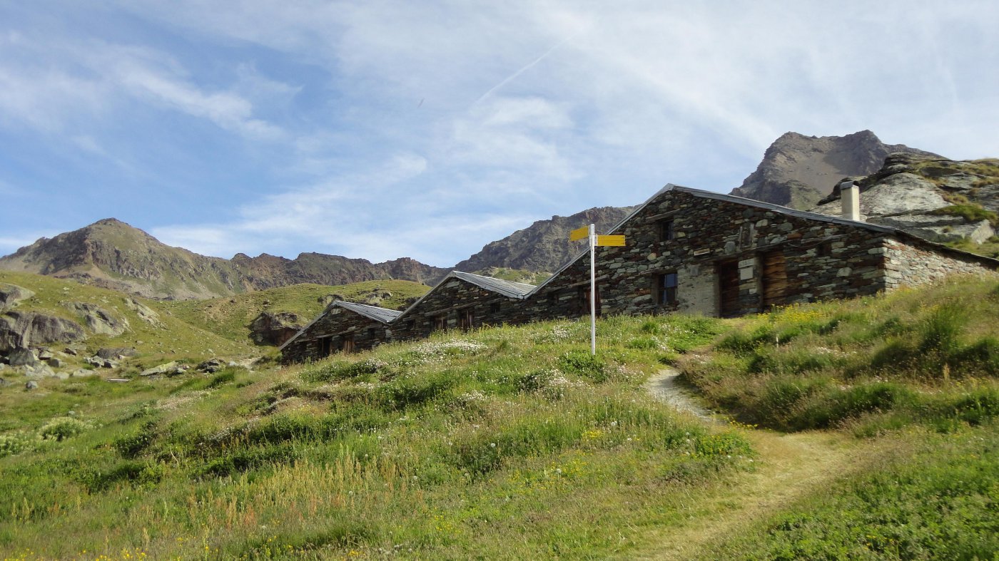 Da Gimillan si segue il sentiero 8 che sale per i prati dietro il paese, e prosegue poi a mezzacosta. Dopo una leggera discesa al ponte di Ecloseur 1925 m, si riprende a salire per il vallone, lasciando a sinistra la cascata dell’Alpe Pila, e giungendo così alle Alpi Grauson Vieux 2271 m (ottima sorgente).