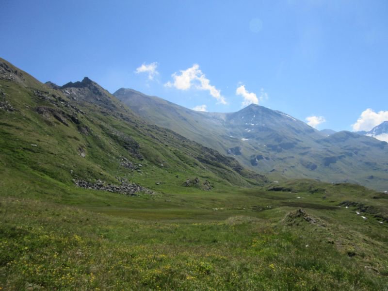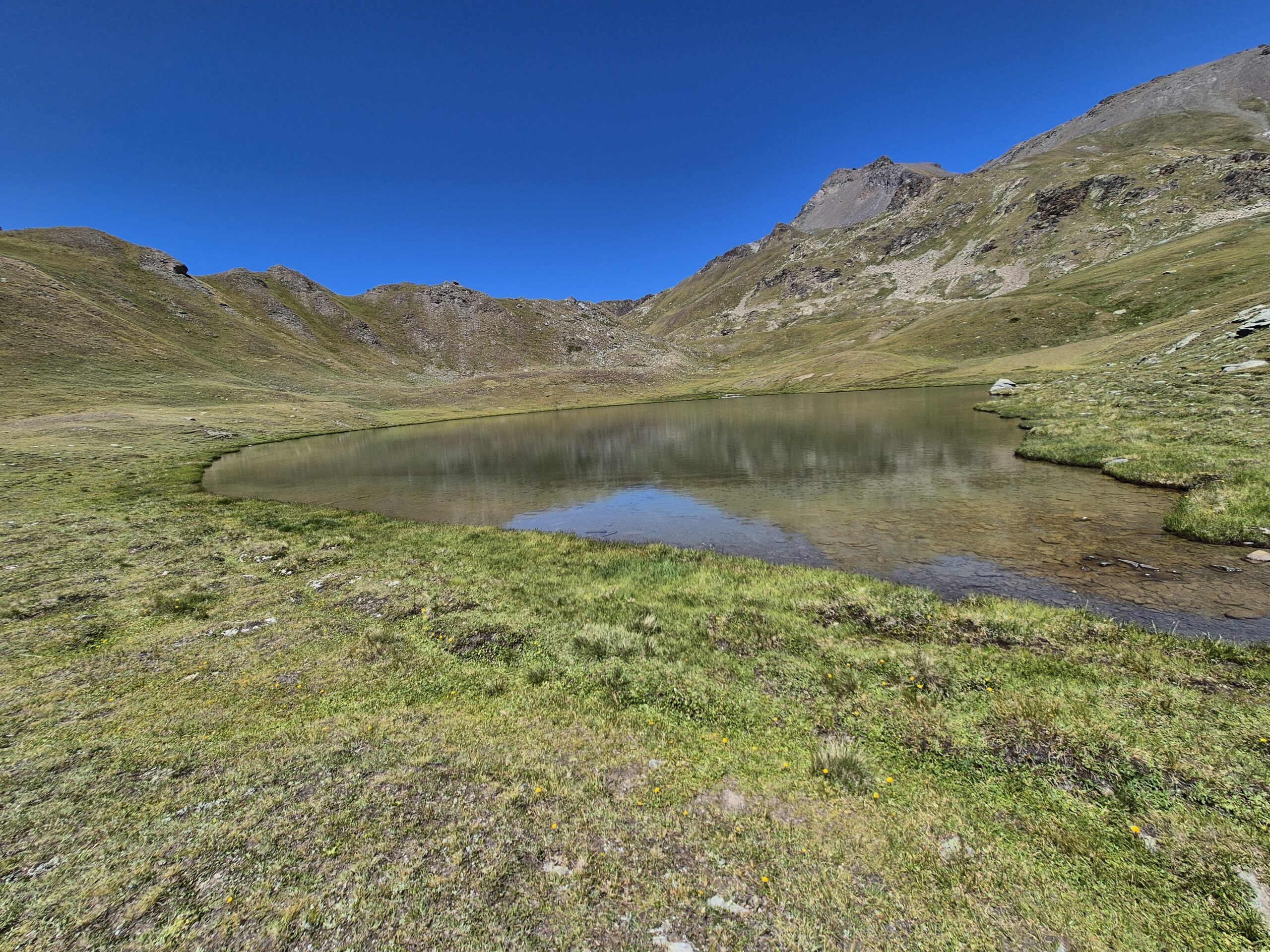 Si prosegue per il sentiero principale, fino ad un bivio. Si seguono le indicazioni per i laghi Lussert, superando una baita isolata a ridosso di un costone erboso (ottima fontana), e poco prima delle Alpi Grauson Nouveau si segue il sentiero inizialmente poco battuto che in breve porta al bellissimo lago Coronaz 2701 m.