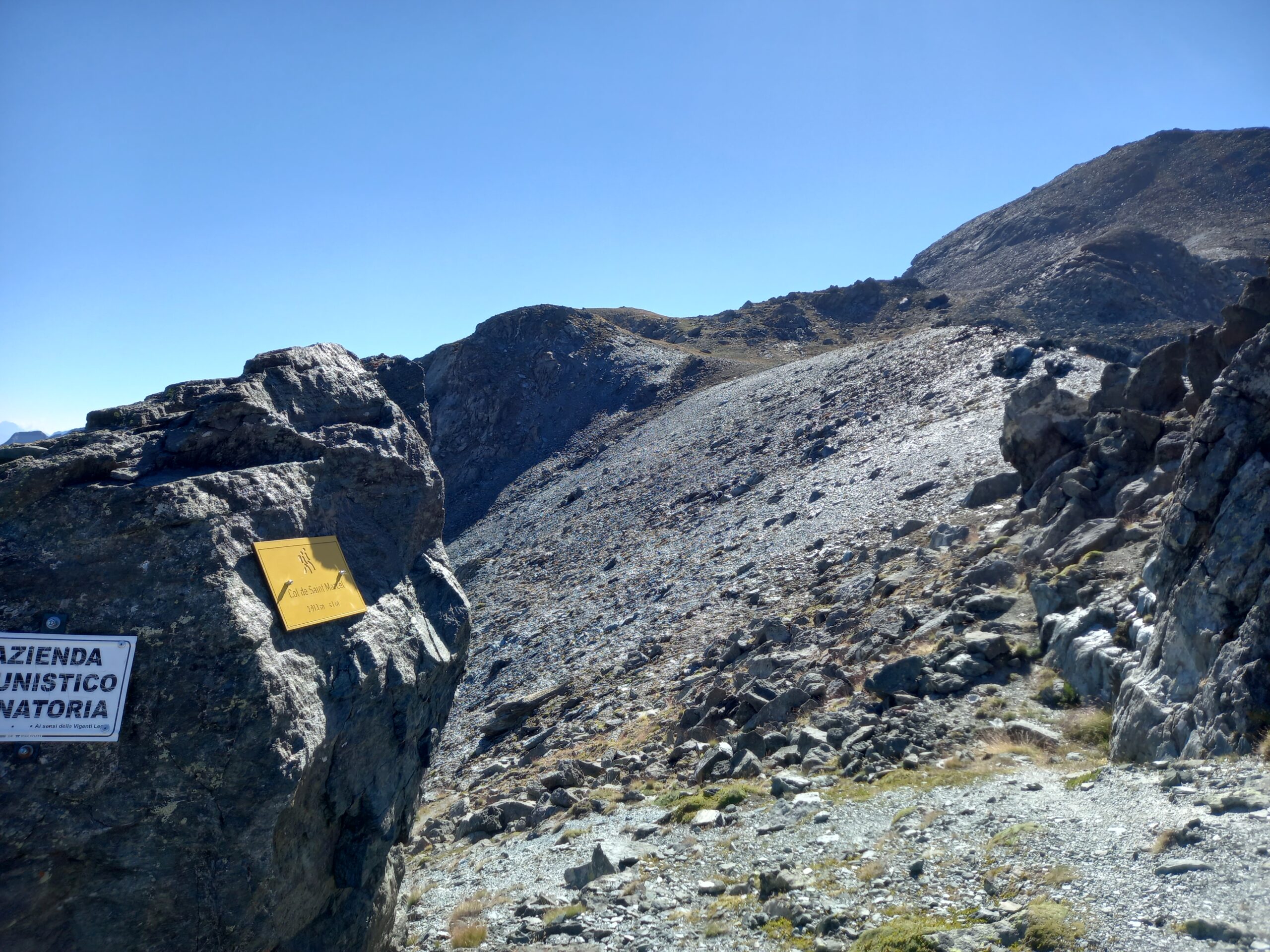 Escursione piuttosto lunga (22 km A/R) ma, nel complesso, non difficile. Si cammina sempre su sentieri ottimamente segnati (sentiero numero 8 da Gimillan e successivamente sentiero numero 8B fino al Col S.Marcel). Fino al Col S.Marcel la valuterei E come livello di difficoltà. Dal colle alle 3 cime (le 2 punte di Laval e la Punta Gian Vert) EE (soprattutto il tratto di collegamento su dorsale tra la 2a punta di Laval e la Gian Vert, tenere sempre alto il livello di attenzione, la traccia comunque si vede). La salita alla Punta Gian Vert non presenta difficoltà (anche qui è presente una traccia che permette di salire piuttosto agevolmente in vette). Si raccomanda comunque sempre CAUTELA…