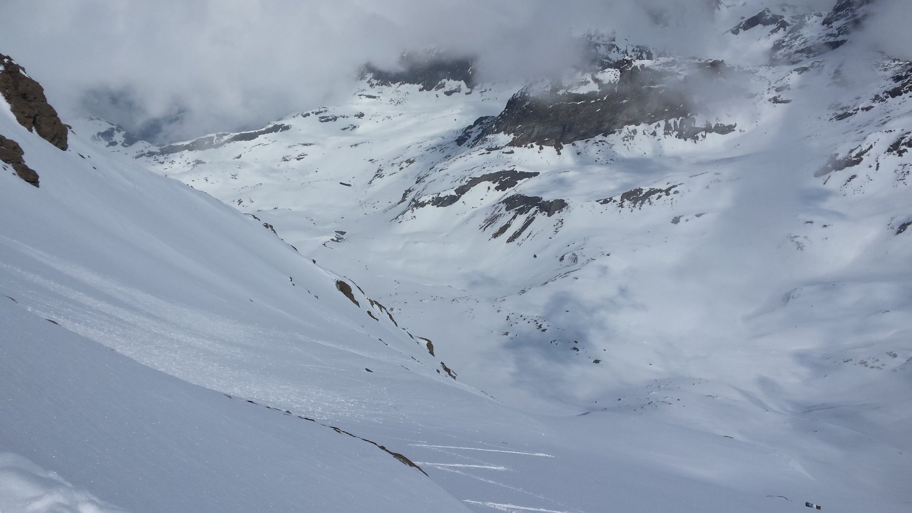 Dal colletto si giunge brevemente alla panoramica cima. Si scende per vallette con bella pendenza fino a raggiungere il sottostante vallone del Grauson. Da valutare bene il traverso che precede l’alpe Pila (pericolo valanga). Si guada il torrente utilizzando il ponticello di Encloseur e si scende fino a Gimillan.