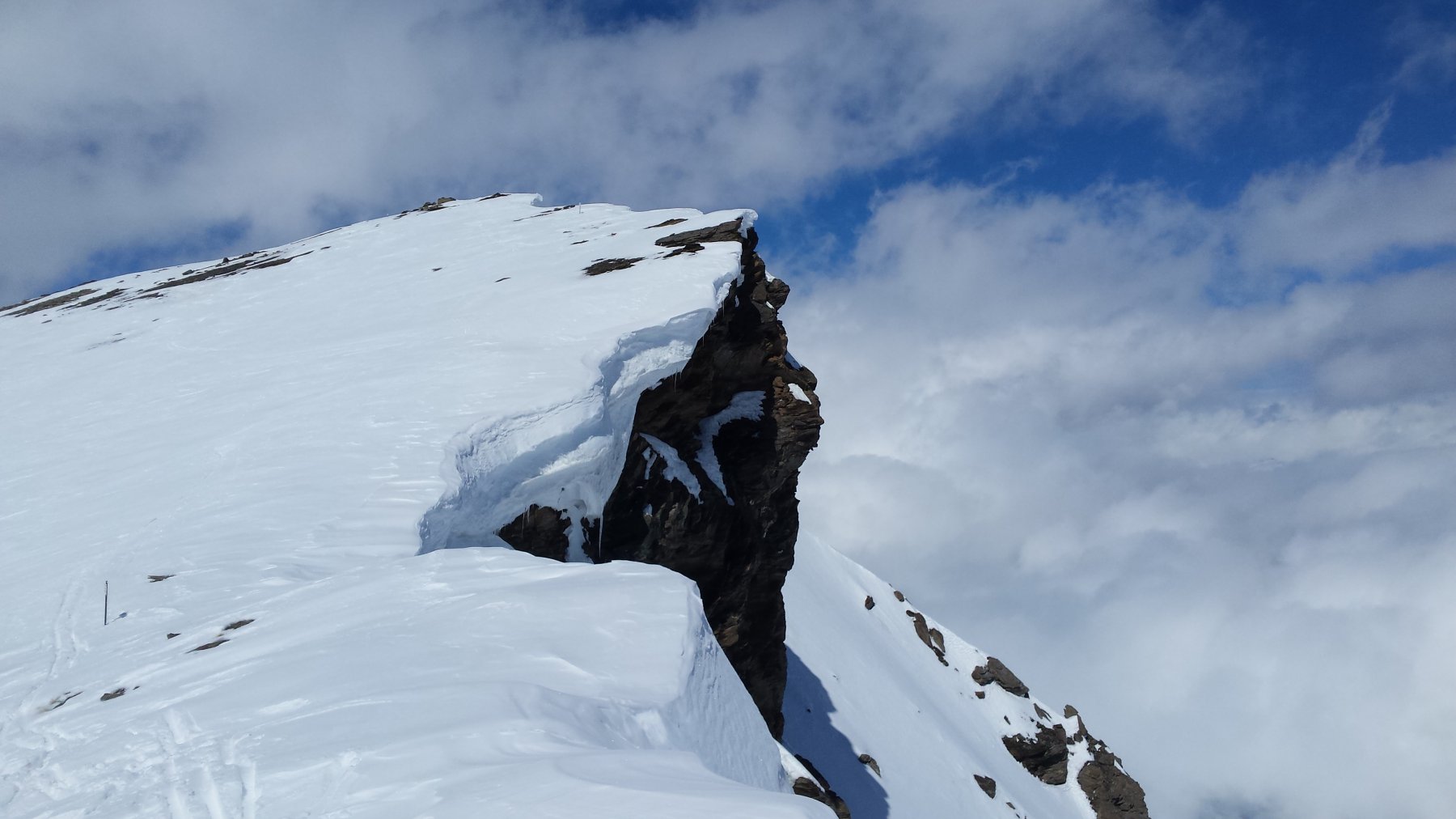 Dall’aera pic-nic si segue la poderare che con vari saliscendi e lunghi pianori si addentra nella riserva privata. Si transita in prossimità di diverse miniere ormai in disuso. Giunti nel pianoro soprastante il laghetto (sepolto dalla neve), ci si dirige verso il ripido pendio che scende a sx della punta (est ). Qui il superamento della cornice può dare qualche noia.