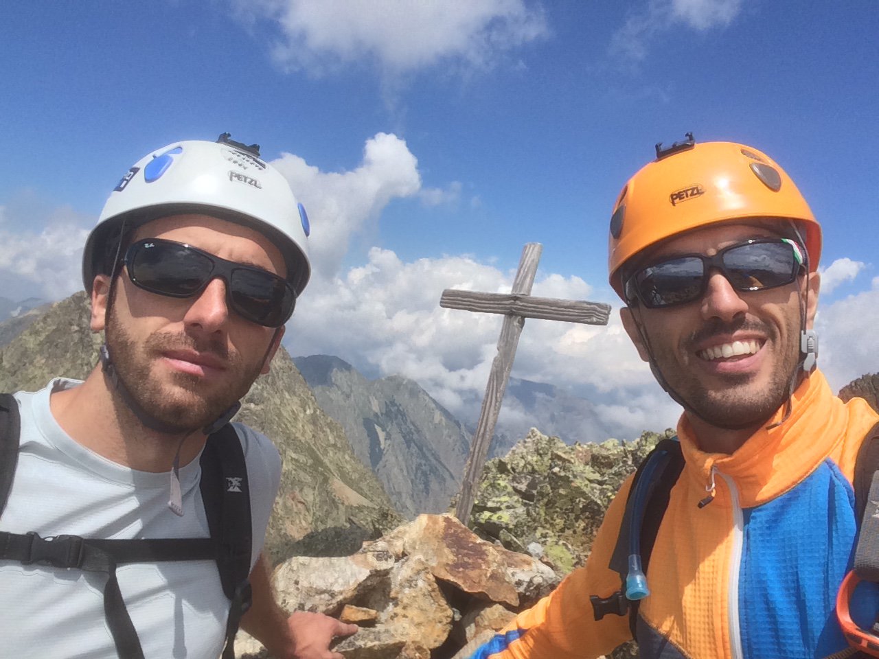 Bella via in un bell’ambiente. Via parzialmente spittata, soste ottime. Possibilità di integrare, non indispensabile.