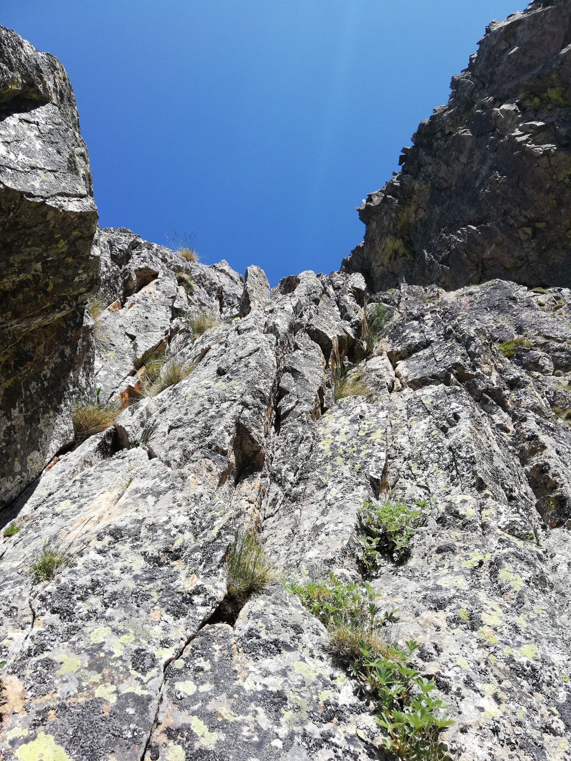 Attaccato il primo tiro troppo a sx senza vedere gli spit…poco male, piazzato un paio di friend e fermato alla sosta a chiodi (meglio salire e andare alla sosta a spit).
