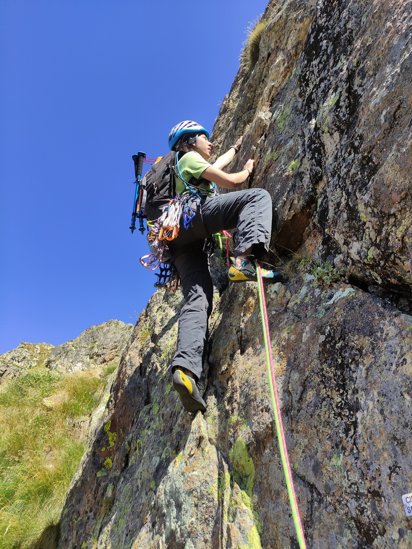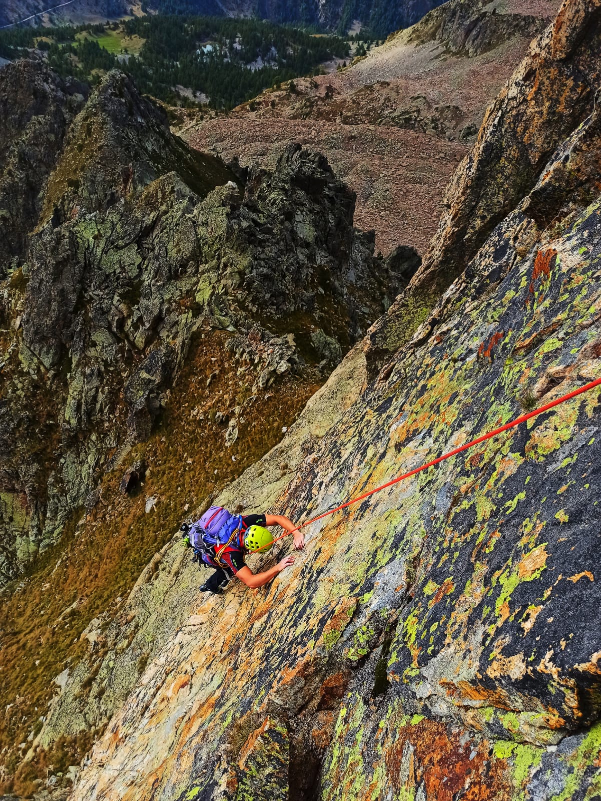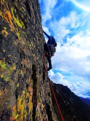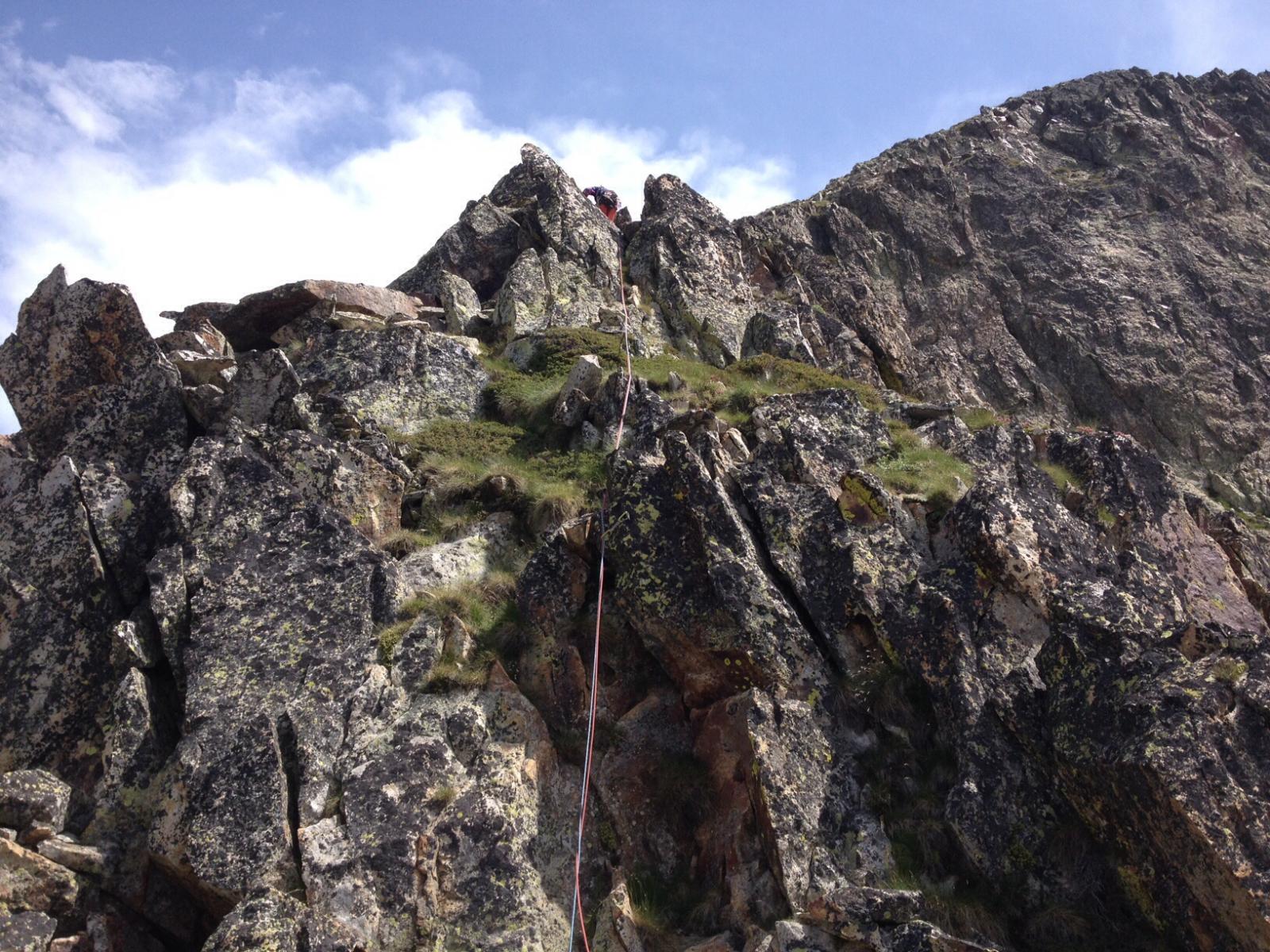 - L5- Continuare sopra la sosta per placche poi in cresta raggiungere un secondo gendarme