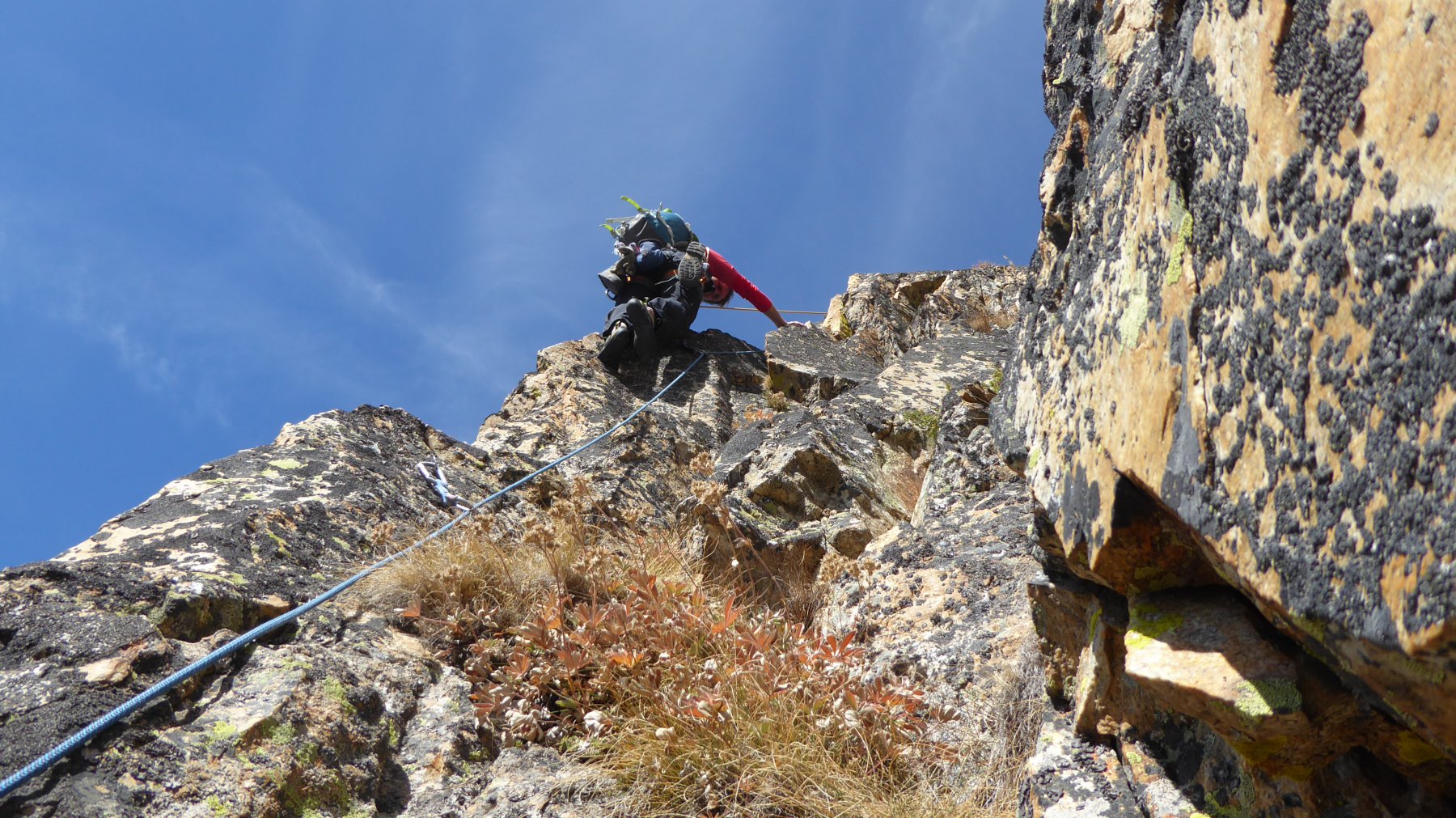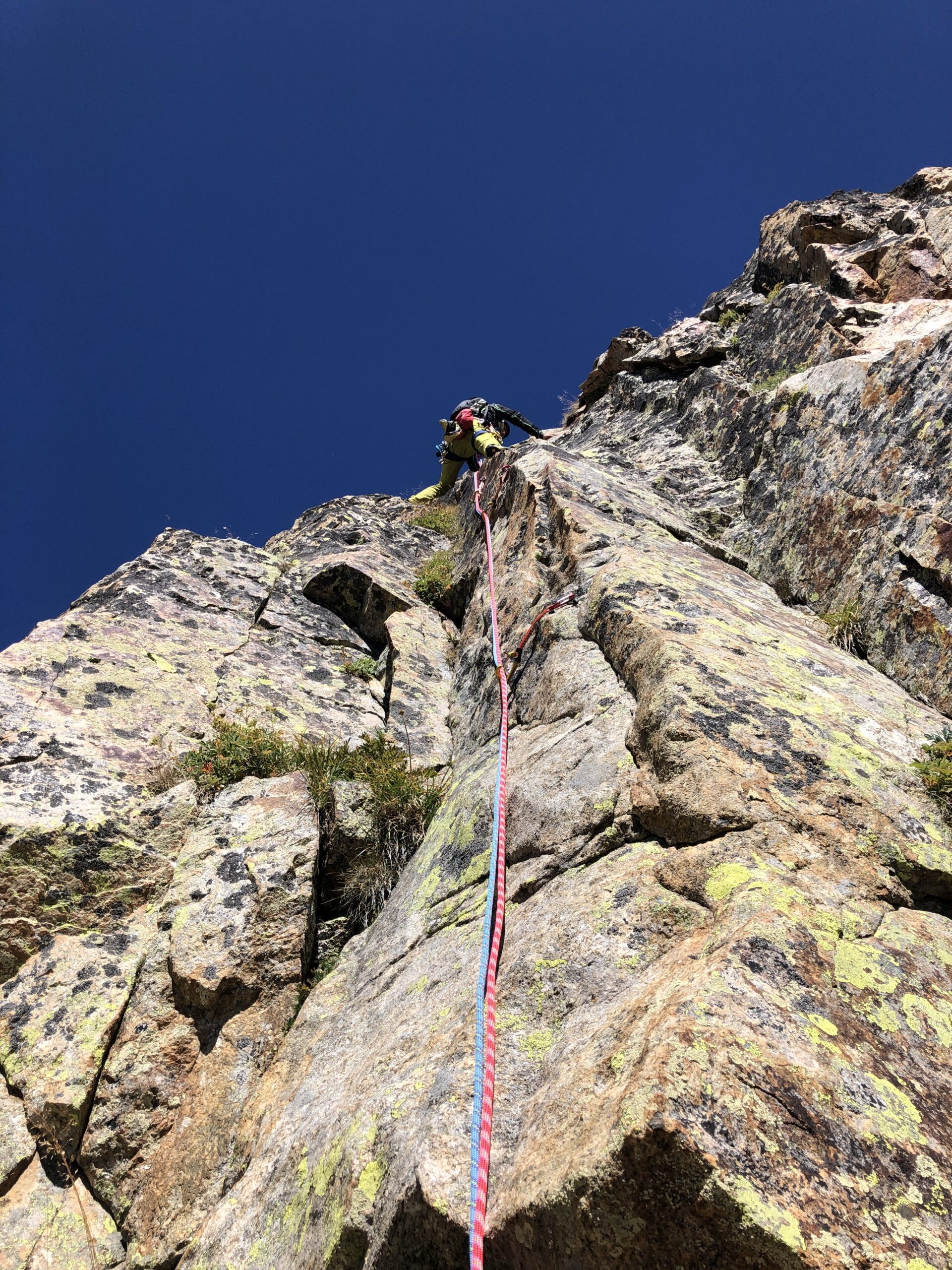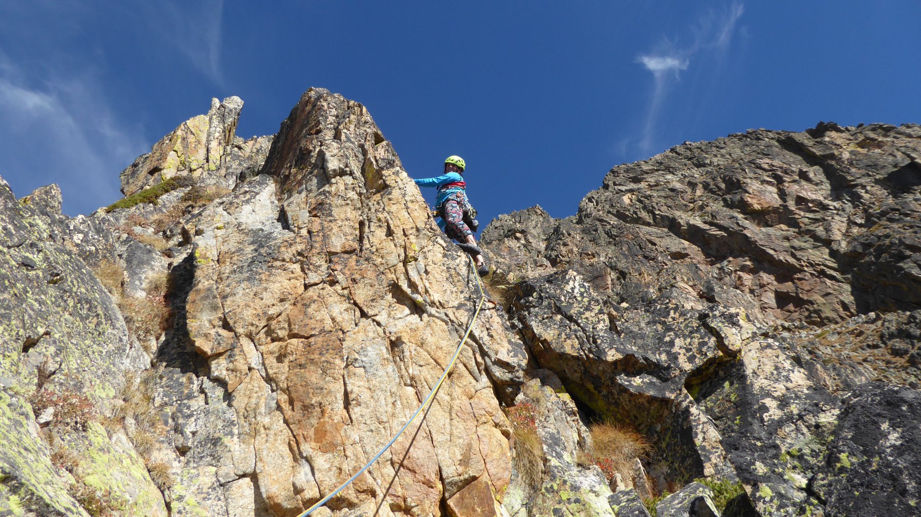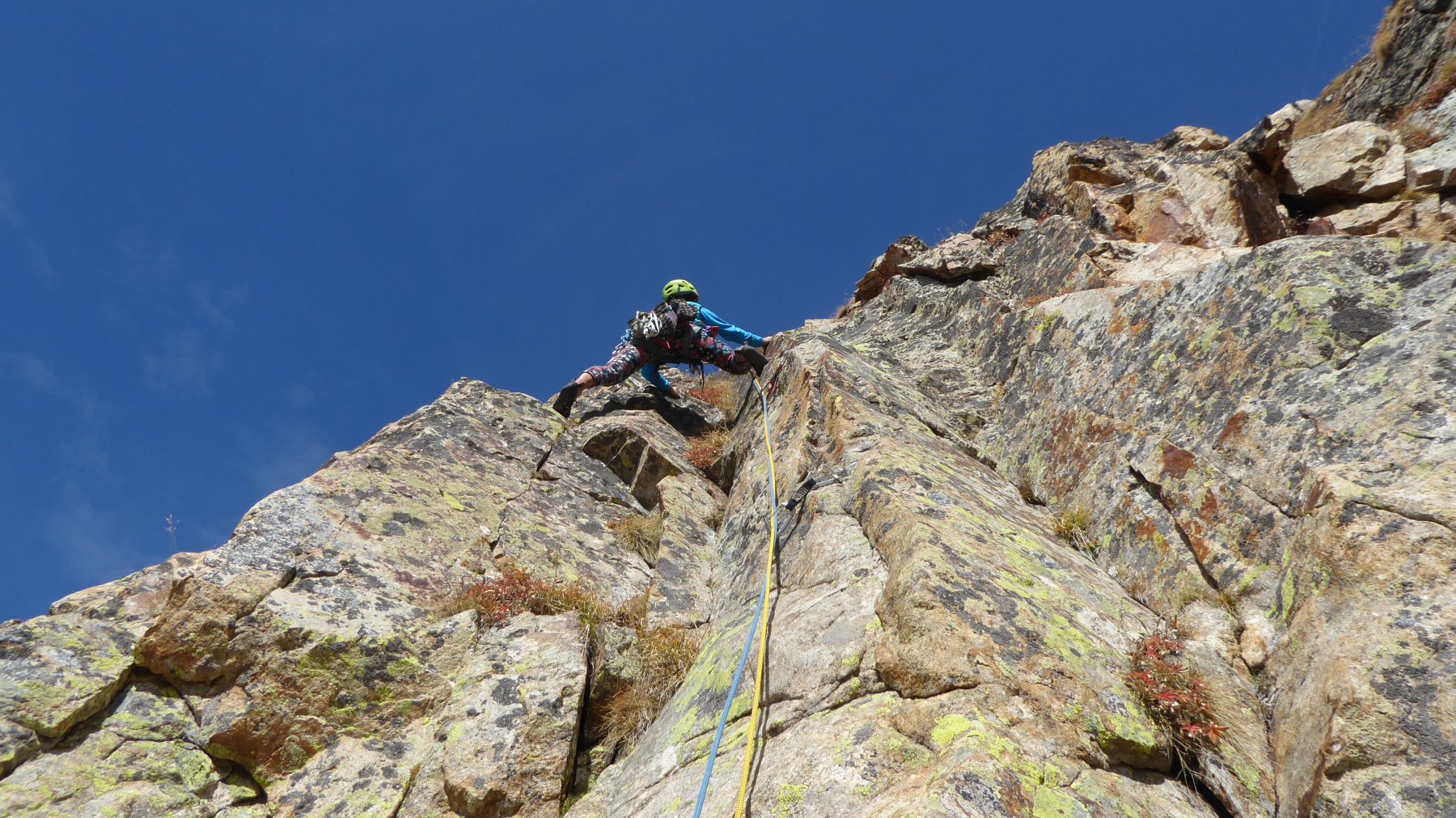 Se dalla fine si prosegue per cresta, non è attrezzato (molti blocchi pericolosi). Dall’ultima sosta uscire a sx poi per prati e roccette si va in punta.