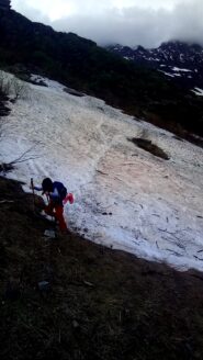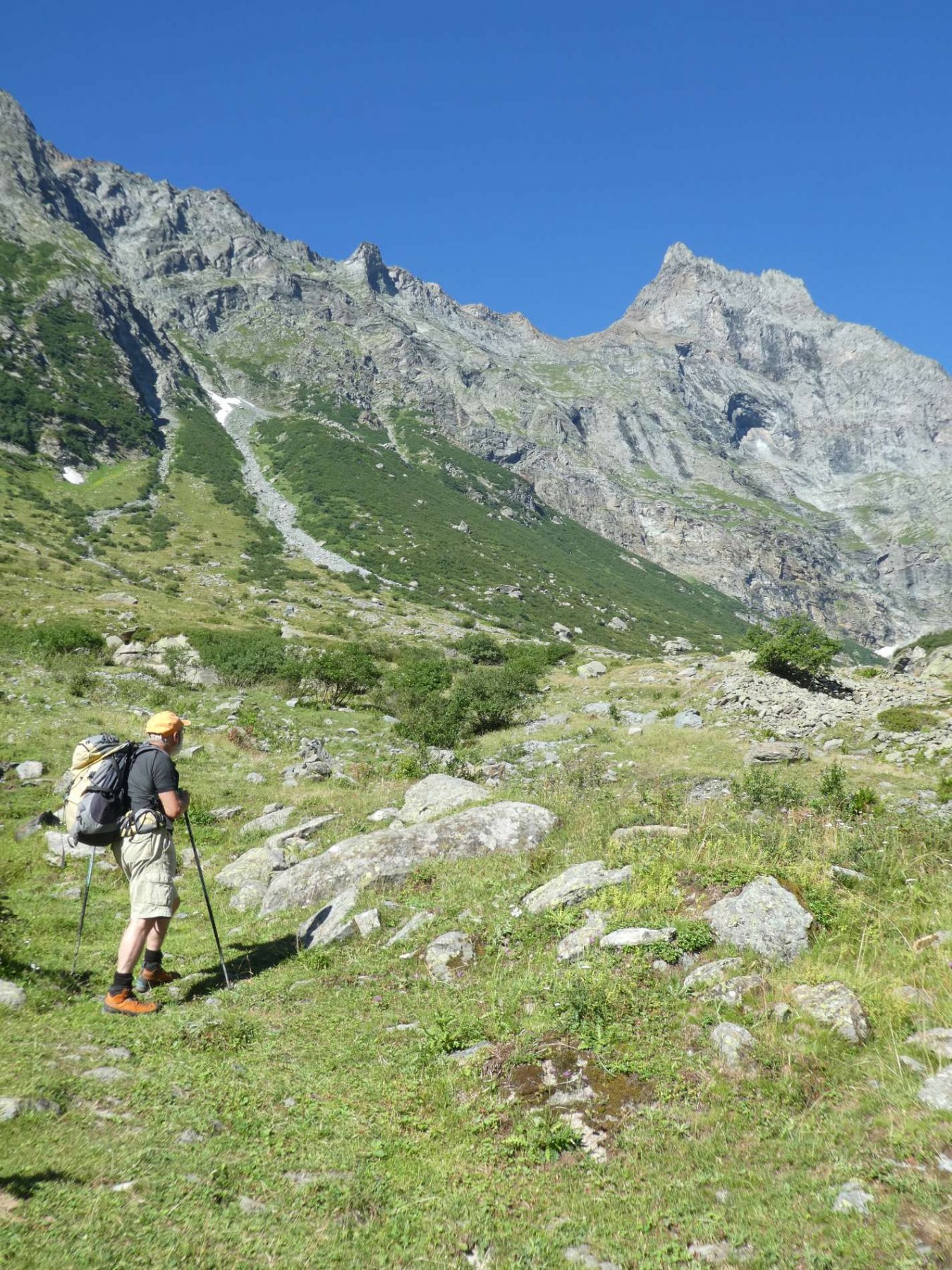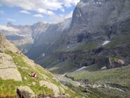 Superate le costruzioni, si aggira un cocuzzolo e con una breve salita si guadagna un vasto pianoro a metà del quale, a destra, vi è il Gias Nuovo (1888 metri).