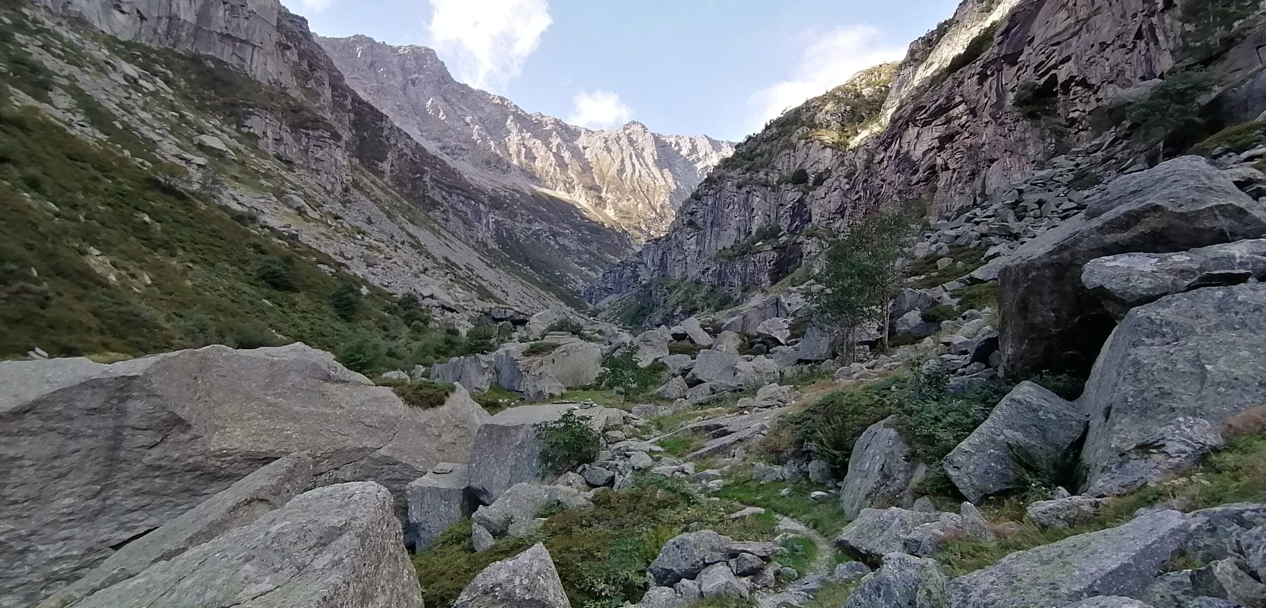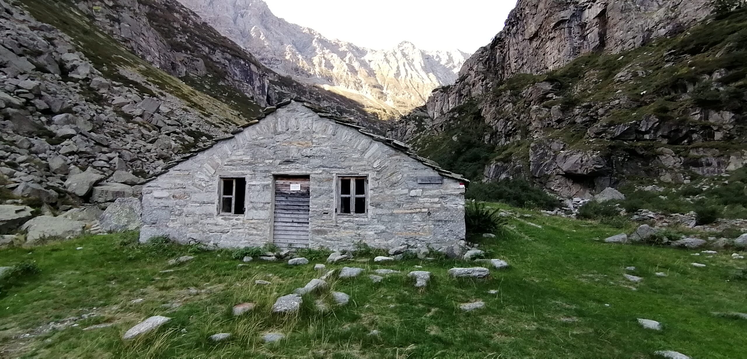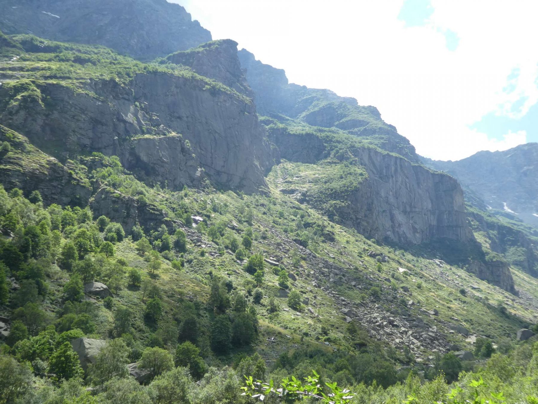 Salendo in mezzo ad una bassa vegetazione giunge, dopo aver attraversato un’altra volta il torrente, all’Alpe di Sea (1785 metri), posta sotto un enorme masso.