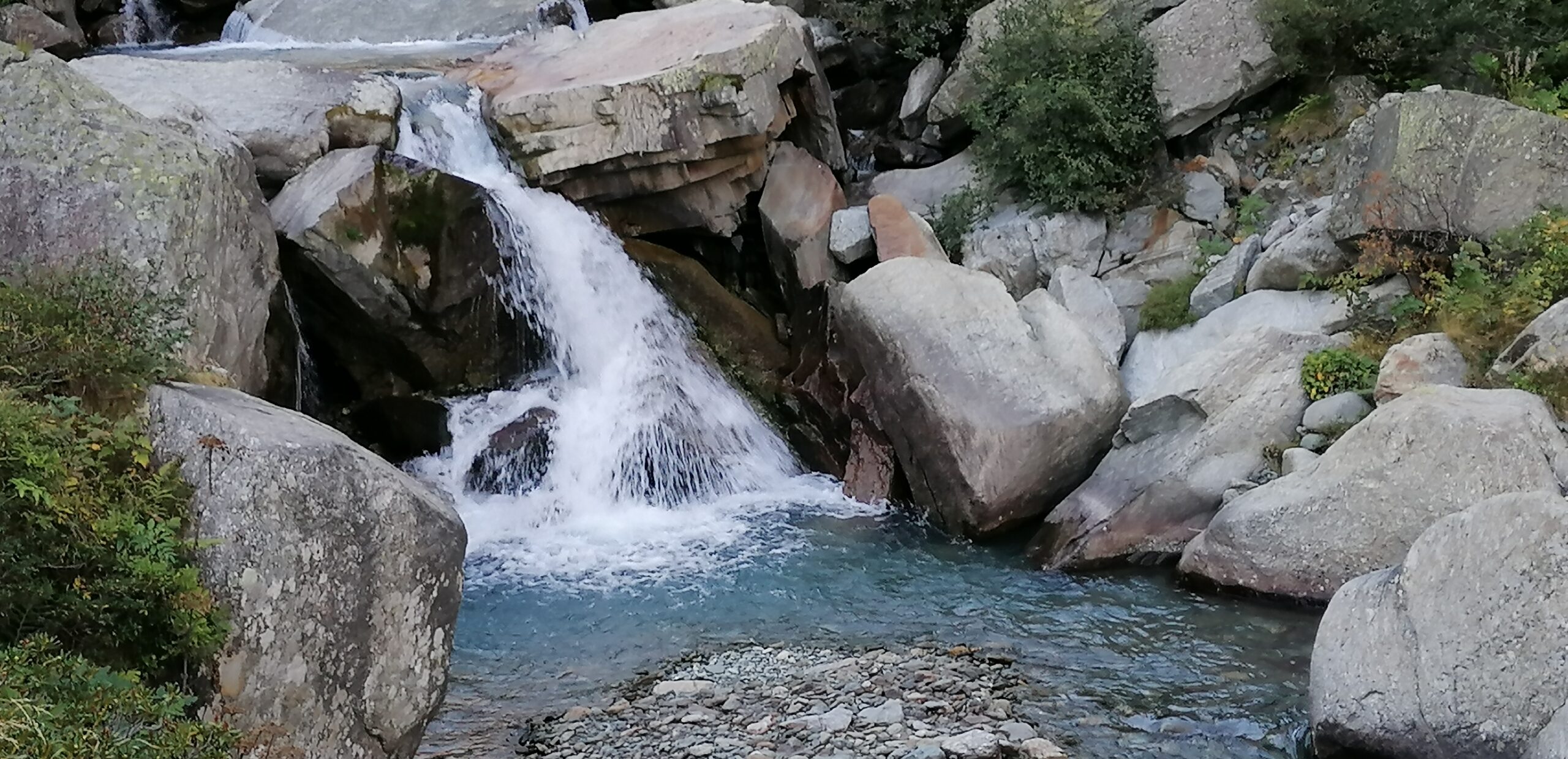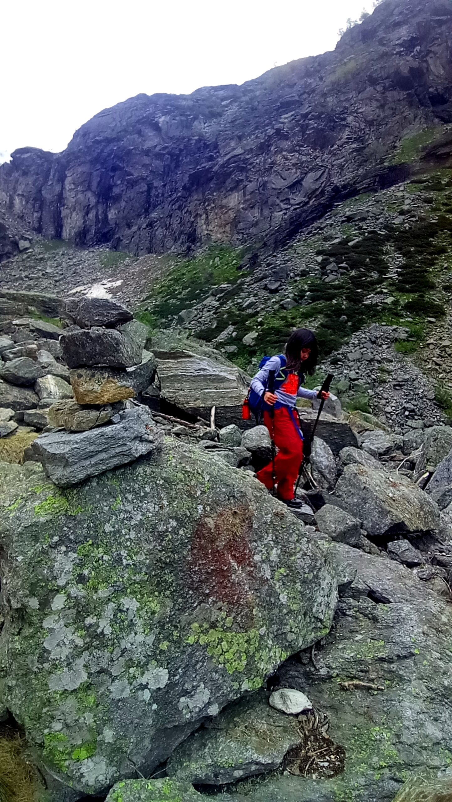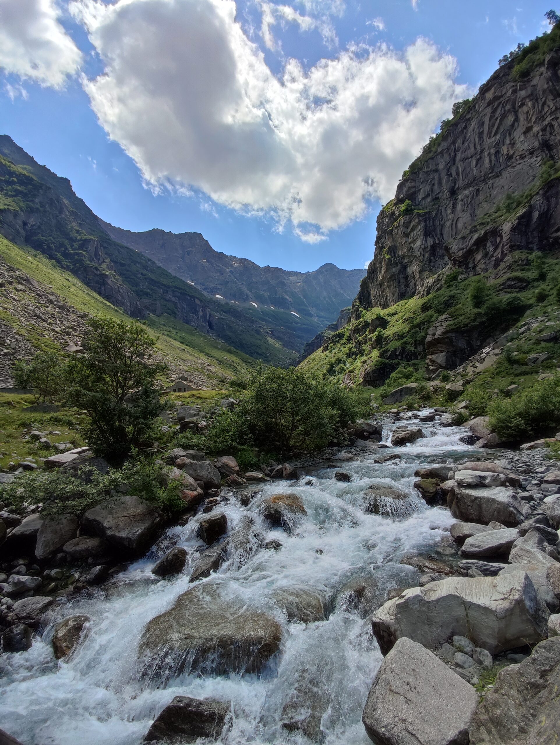 Salendo in mezzo ad una bassa vegetazione giunge, dopo aver attraversato un’altra volta il torrente, all’Alpe di Sea (1785 metri), posta sotto un enorme masso.