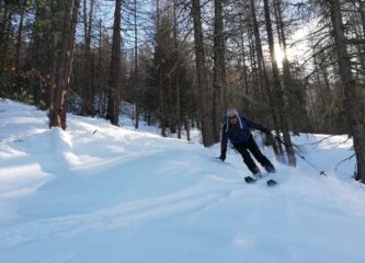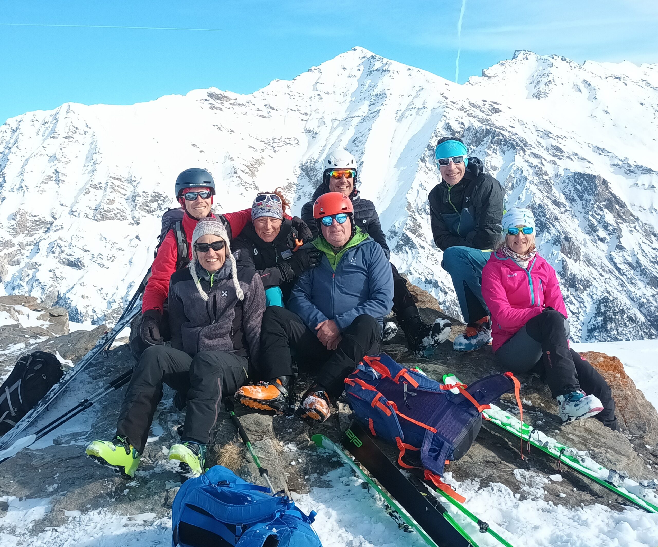 Gita azzeccata oggi al Giassiez. Nonostante la temperatura abbastanza elevata (ma temevamo peggio, date le previsioni) il manto nevoso, grazie all’esposizione favorevole, si è mantenuto ottimo regalandoci una discesa al top. Neve polverosa da cima a fondo (per la correttezza a Ruilles), solo leggermente più pesante ma sciabilissima nel bosco. Stradina di rientro ancora ben innevata, con un poco di ghiaccio al mattino. Panoramiche super e una grande compagnia di amici con Danilo (che ringrazio di cuore per l’eccellente riparazione e preparazione dei miei sci), Vincenzo, Federica, Luca, Roby e Alessandra.