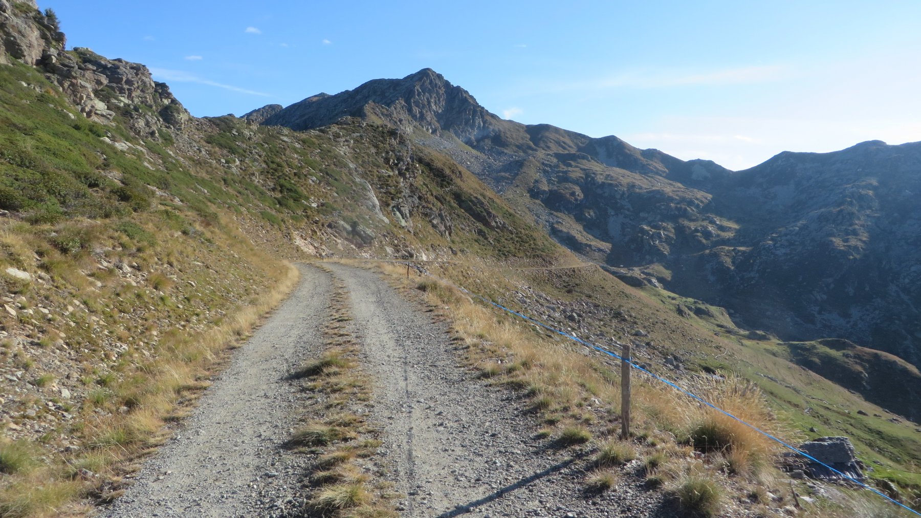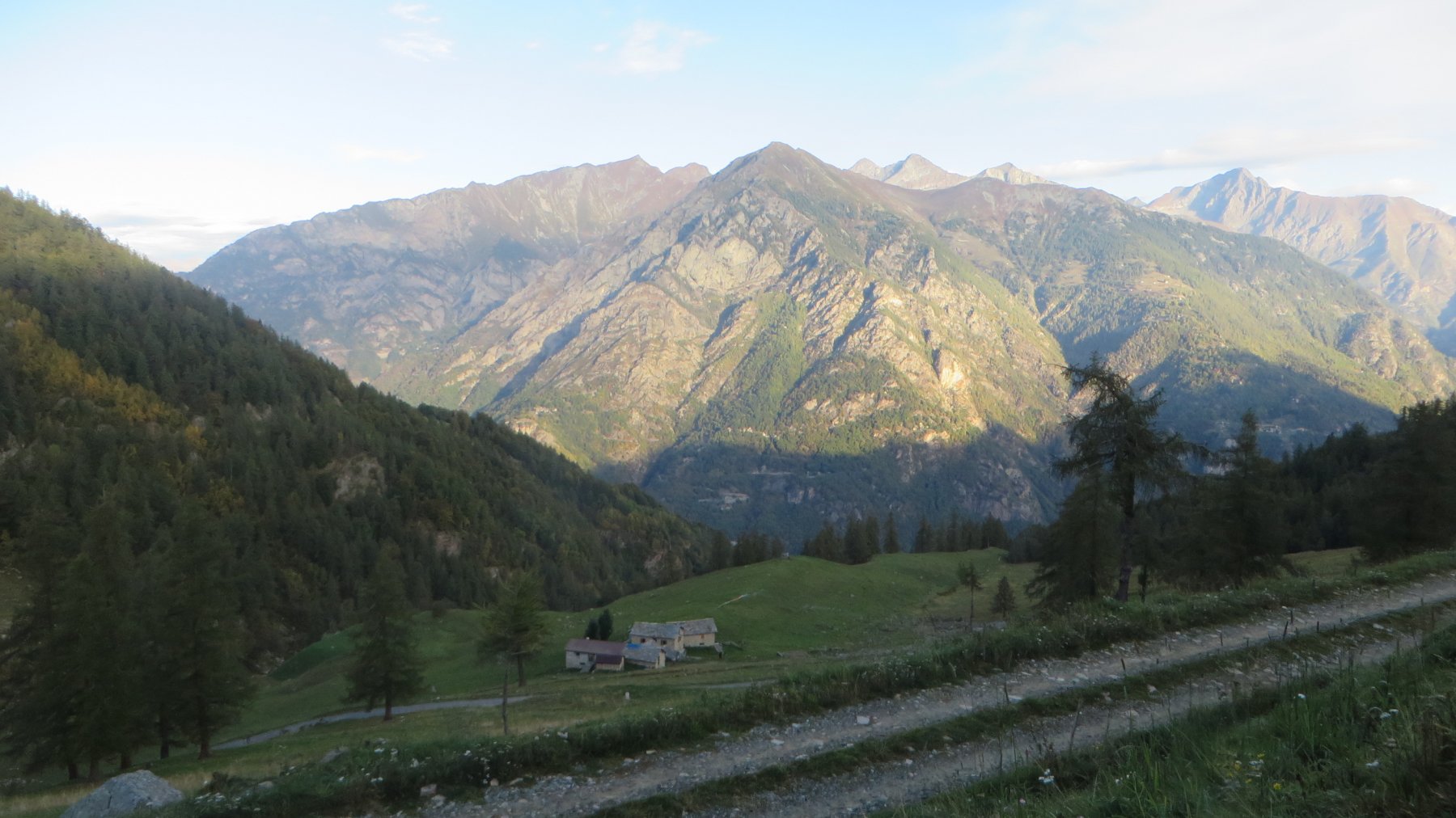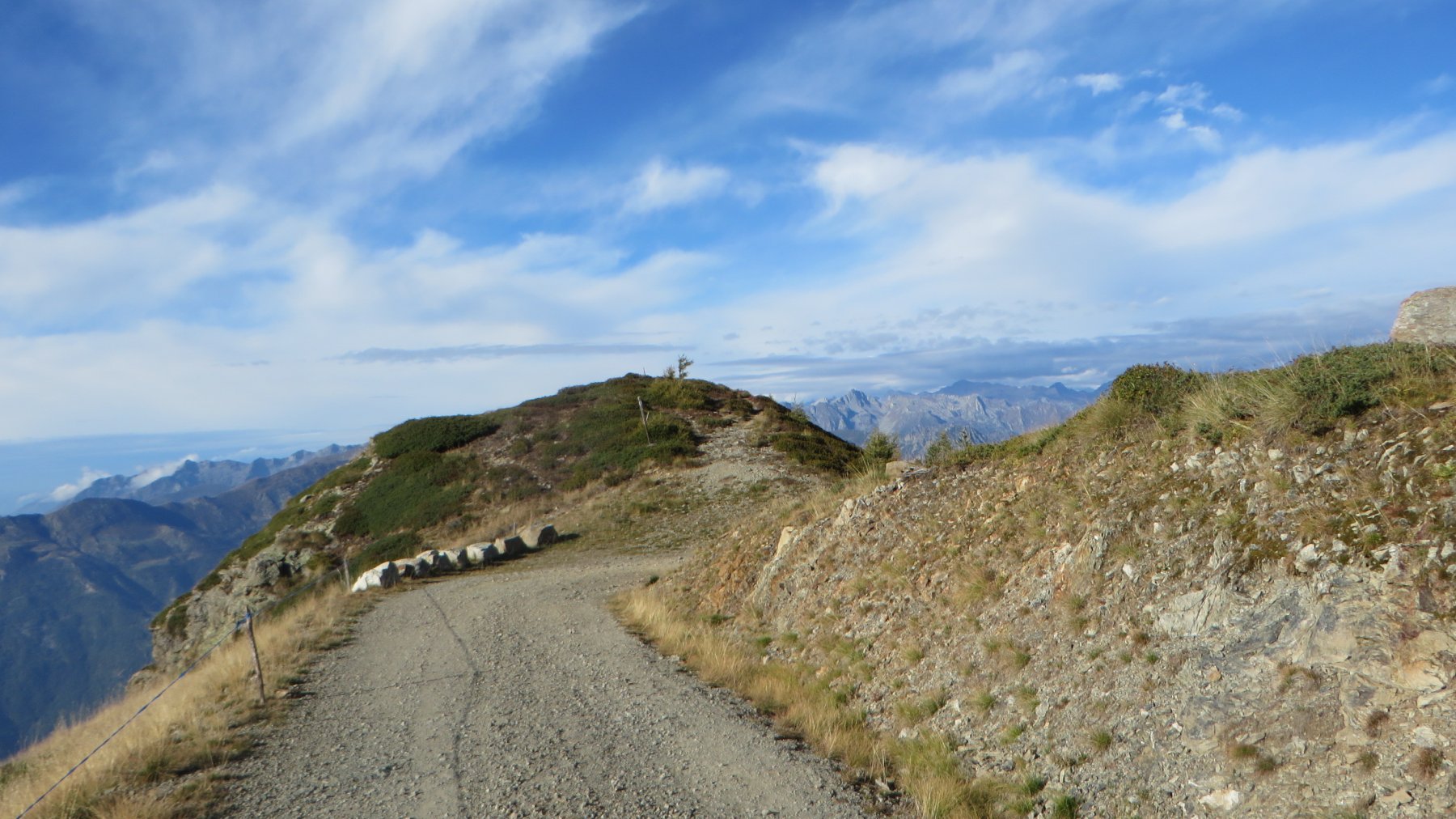 In località Stoba si prende a destra e si prosegue di poderale fino a giungere sulla cresta di confine tra Piemone e Val d’Aosta a 2050mt.