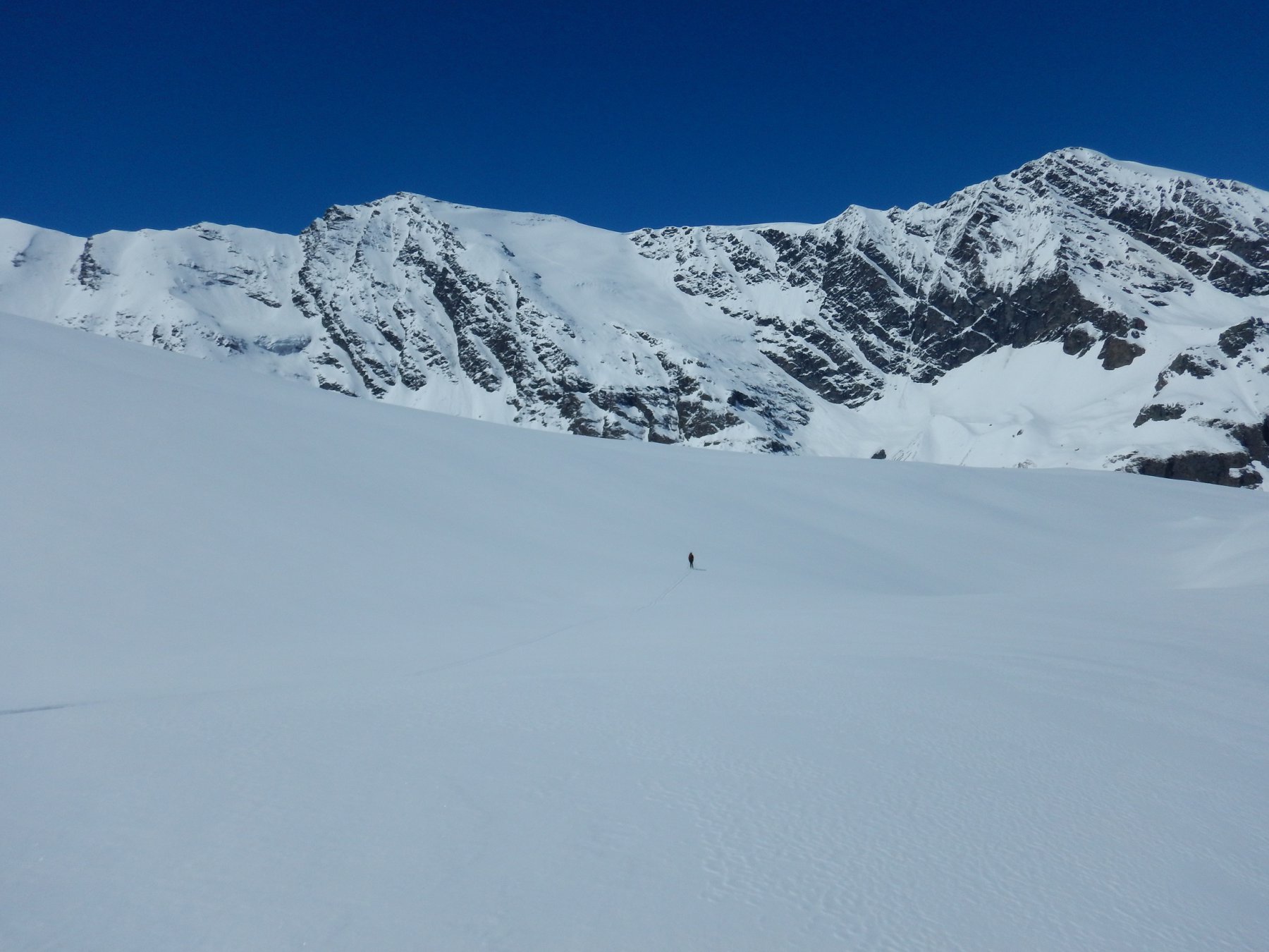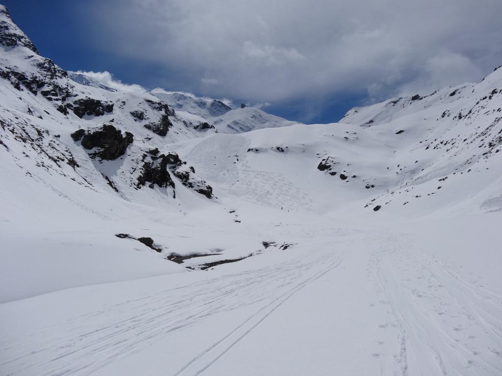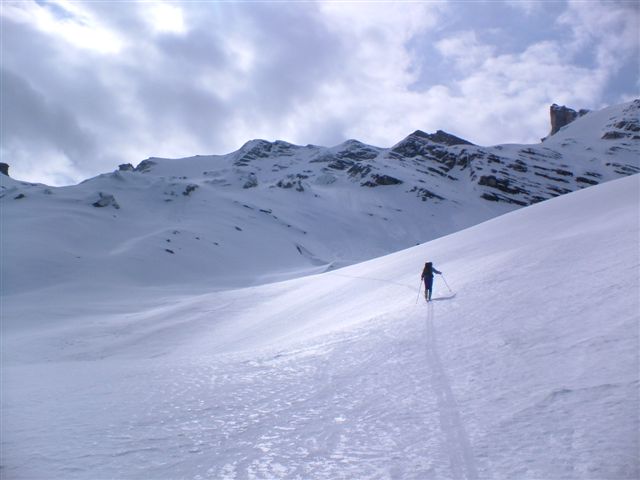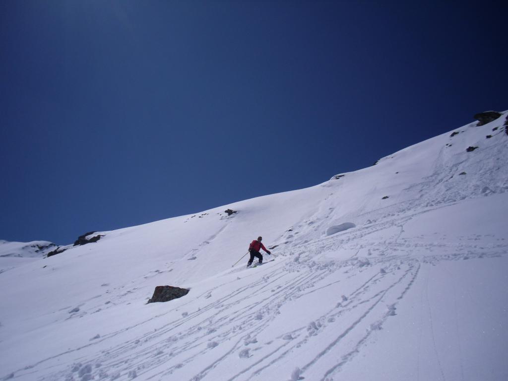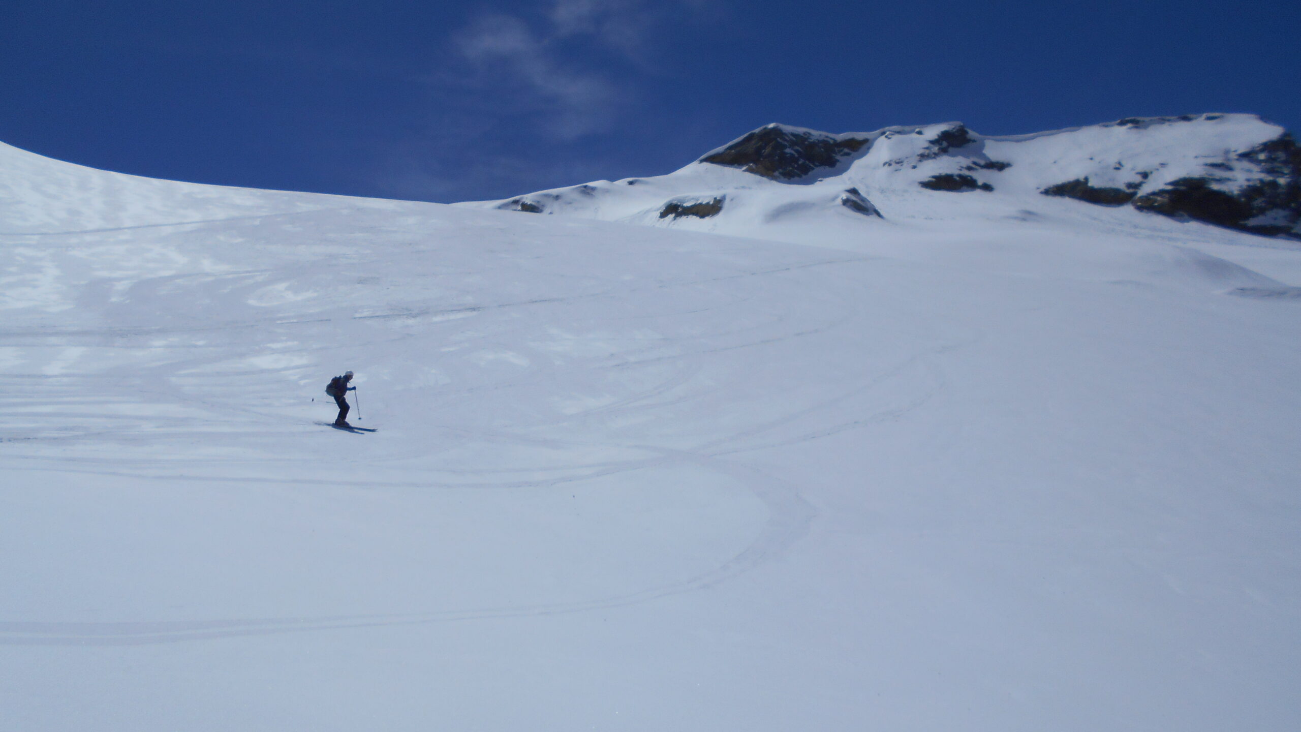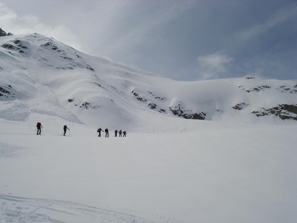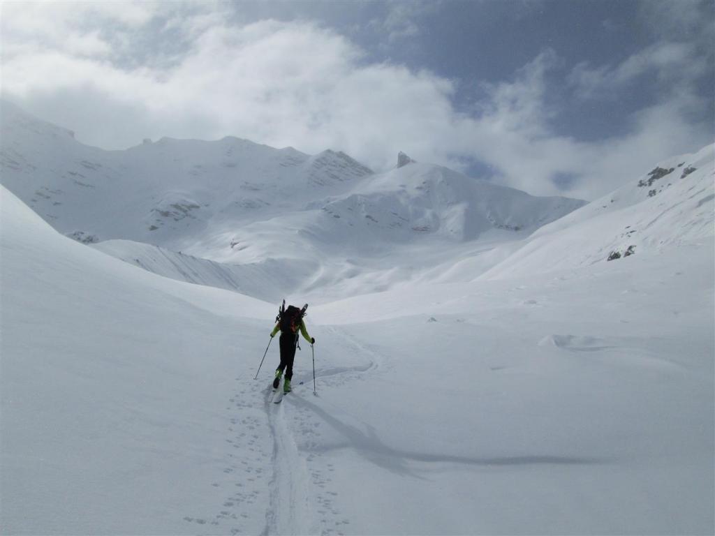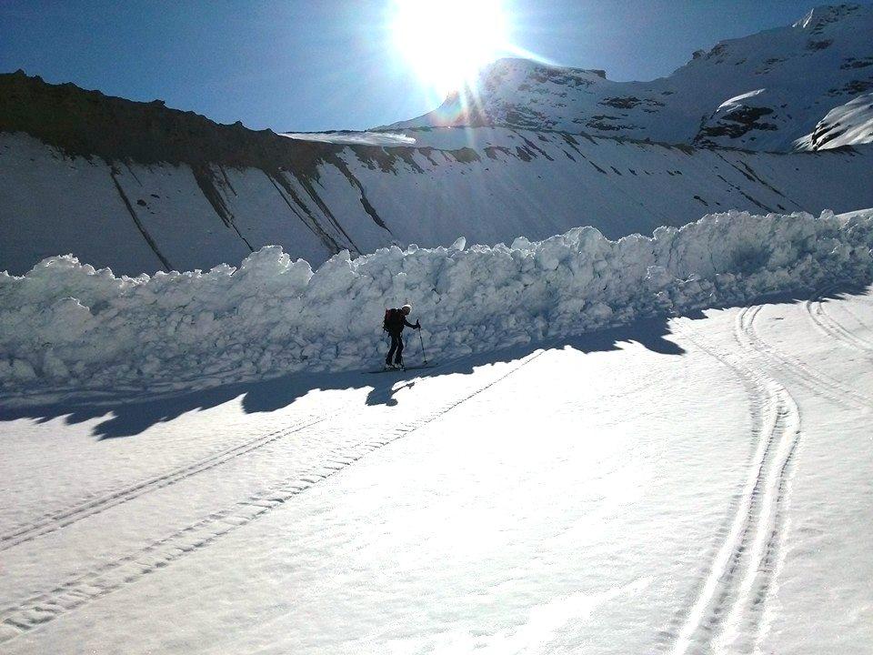 Da effettuarsi a fine stagione con innevamento stabile e assestato, in quanto la via di salita passa in alcuni punti potenzialmente soggetti a scariche dai pendii laterali.