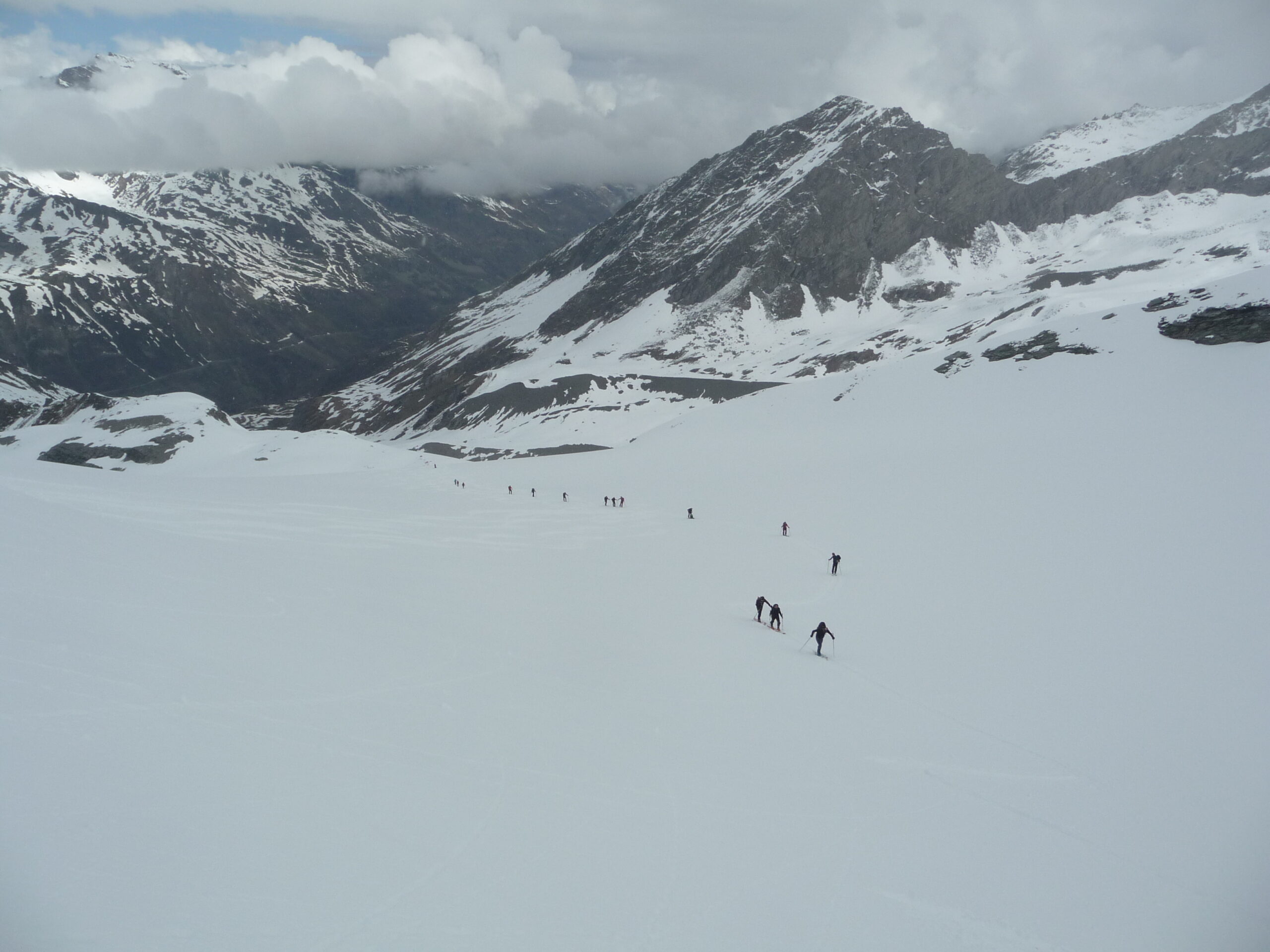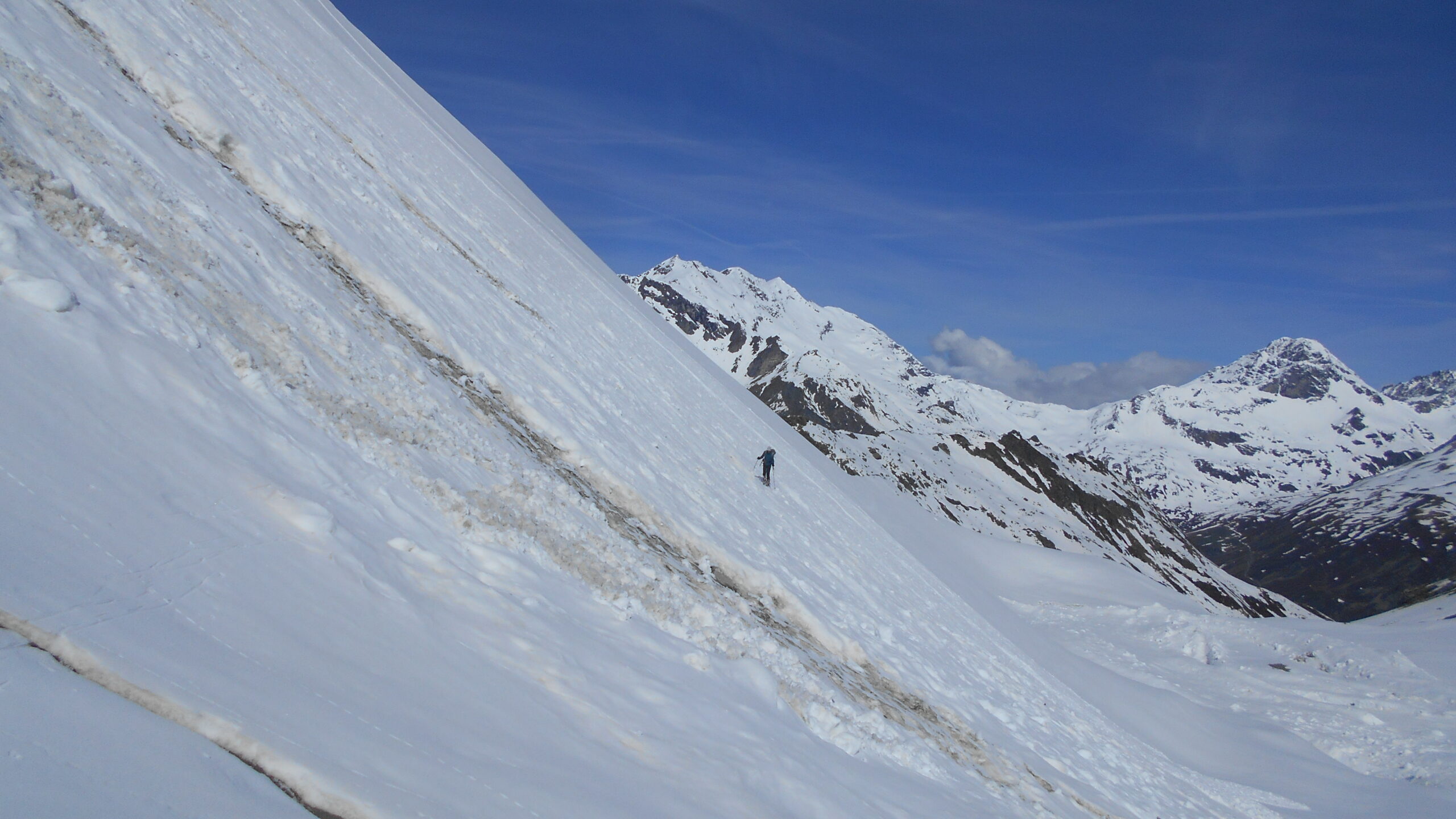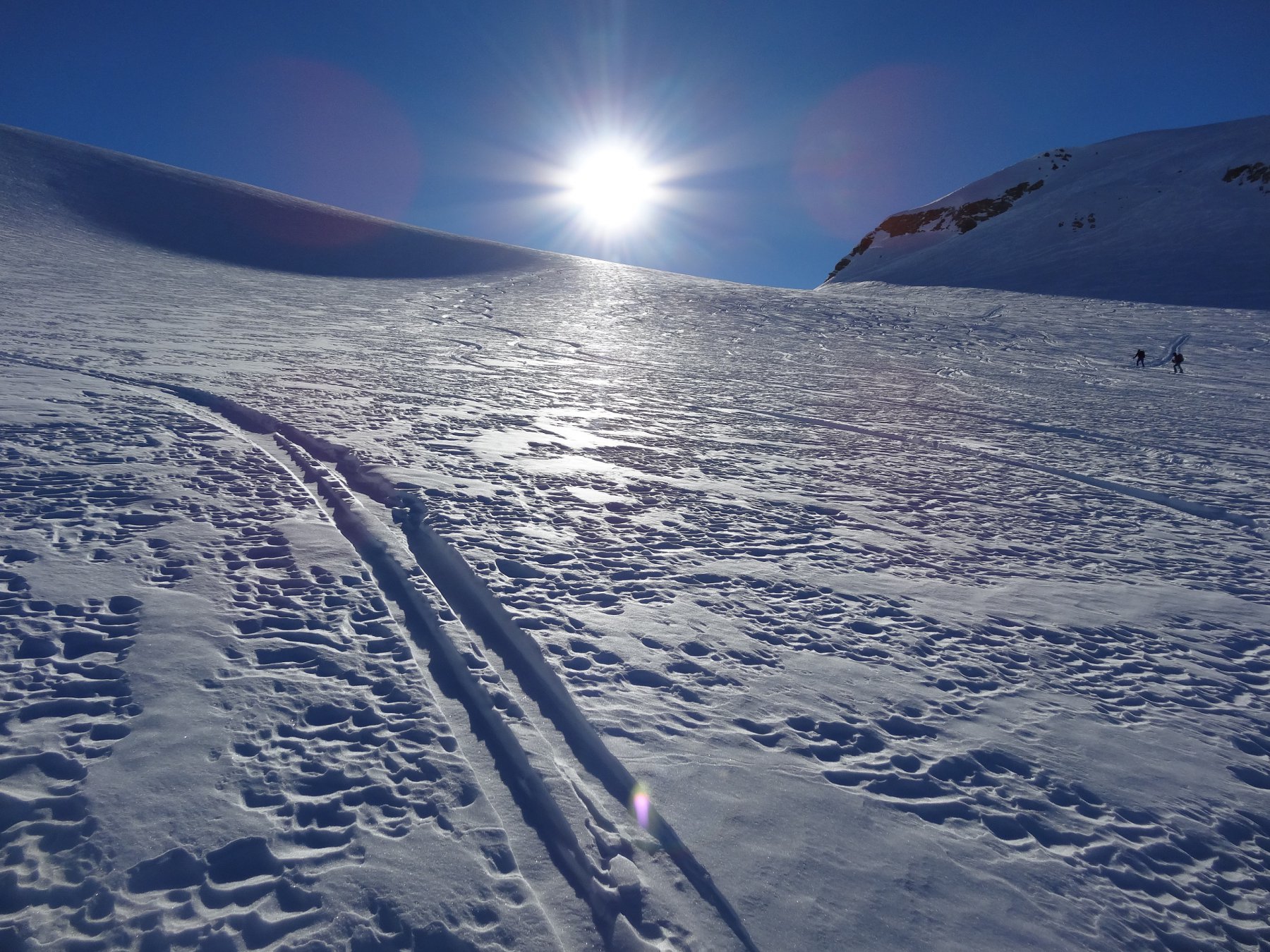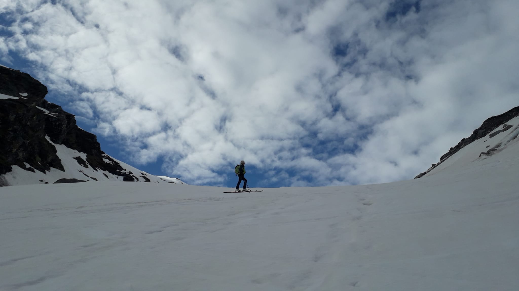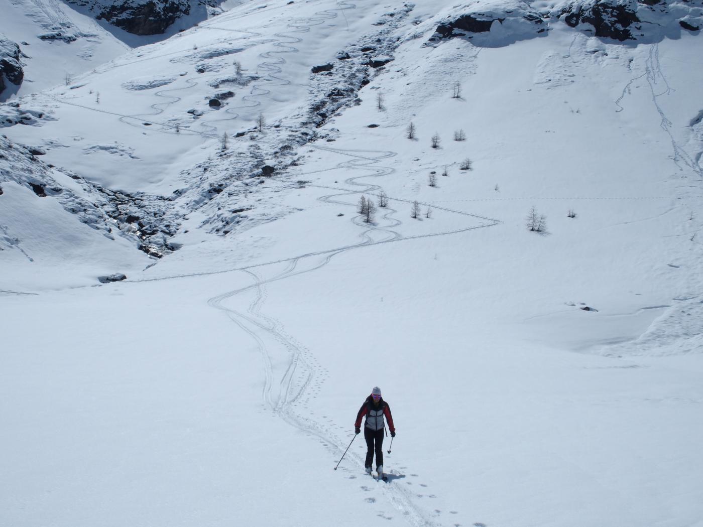 Da effettuarsi a fine stagione con innevamento stabile e assestato, in quanto la via di salita passa in alcuni punti potenzialmente soggetti a scariche dai pendii laterali.