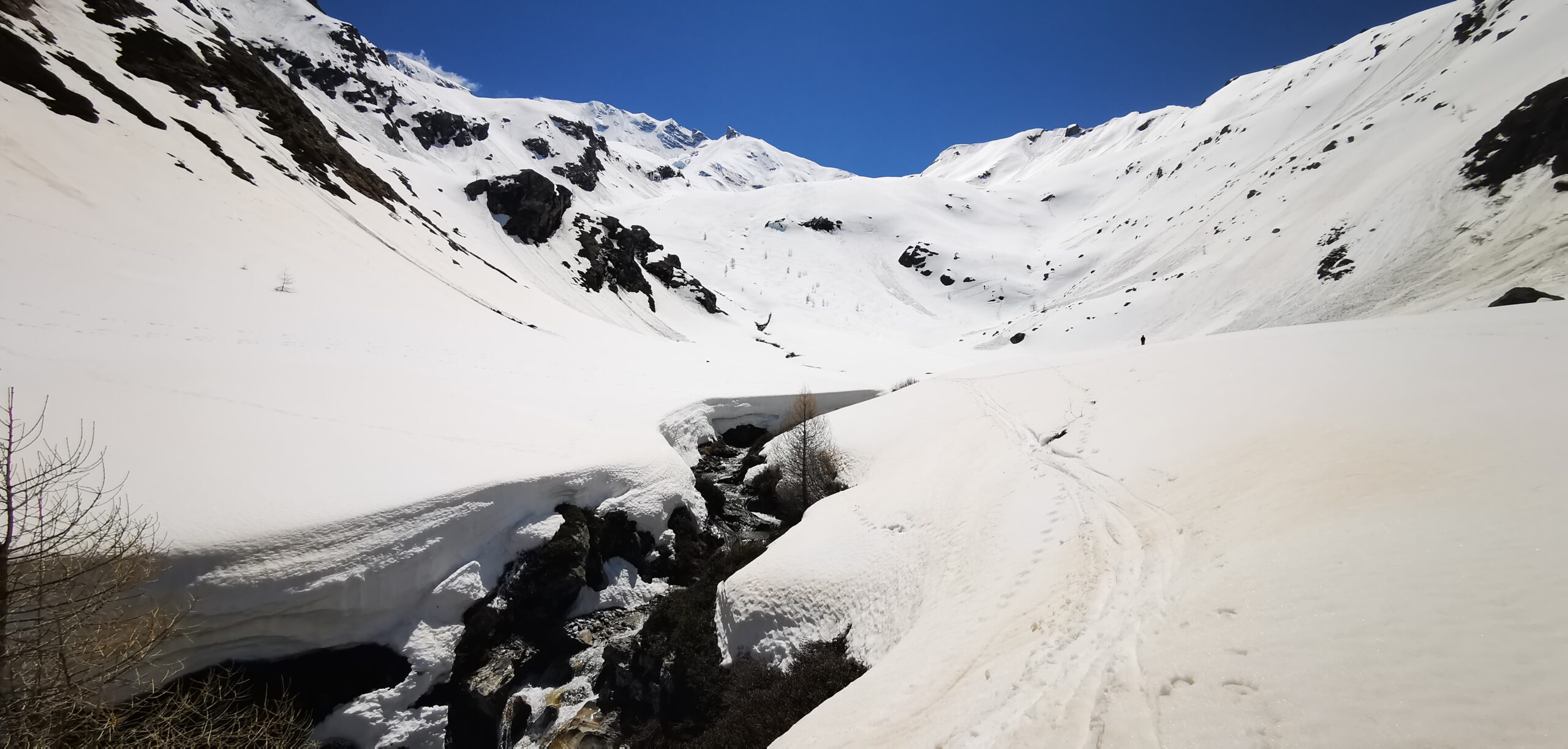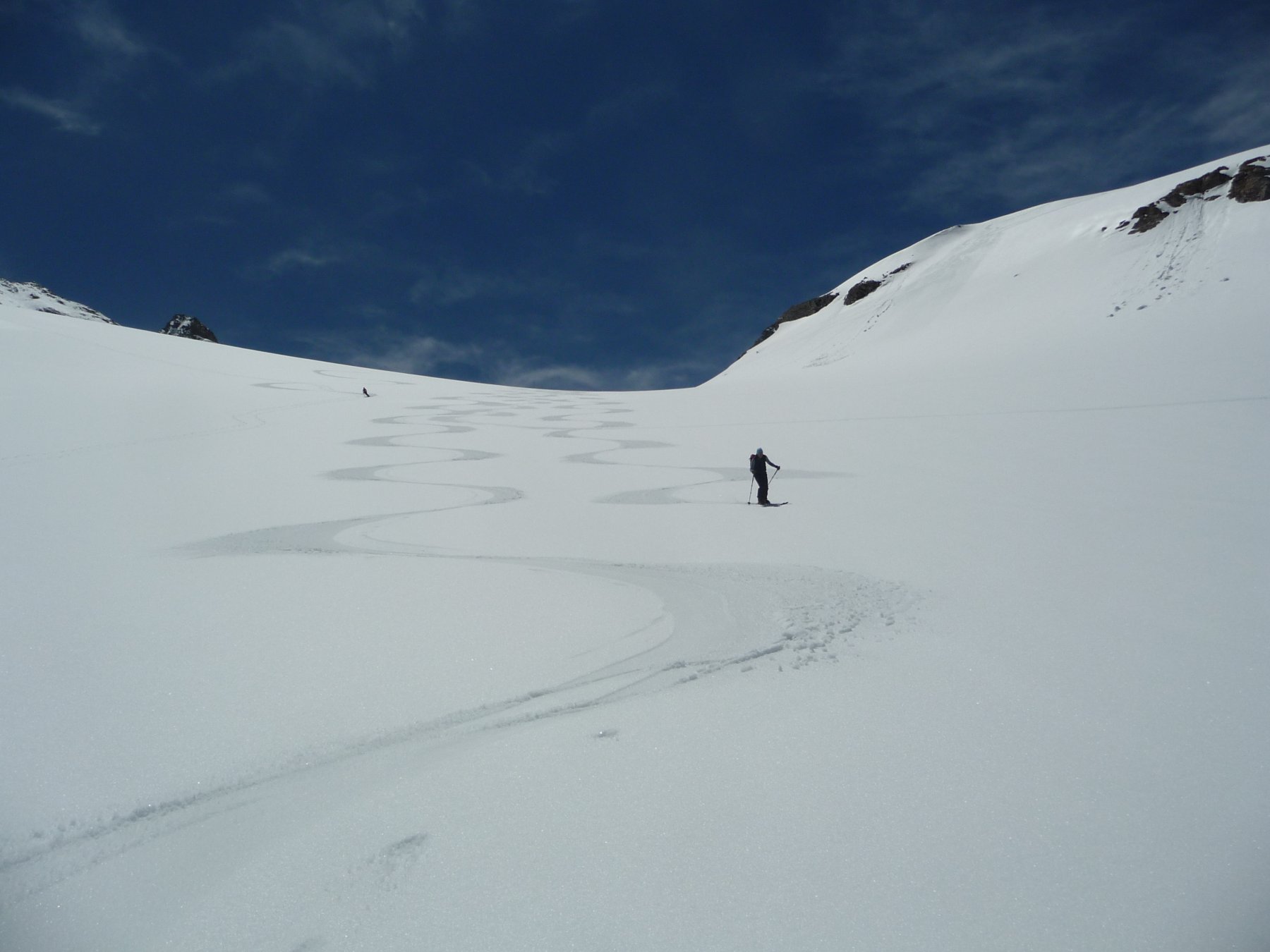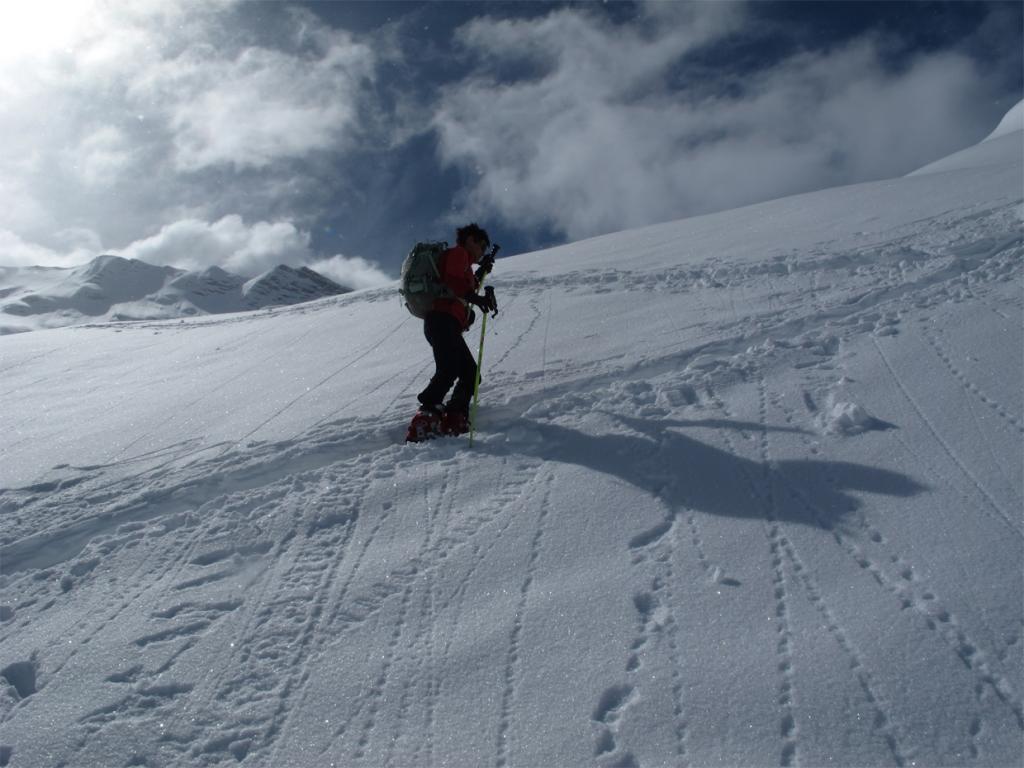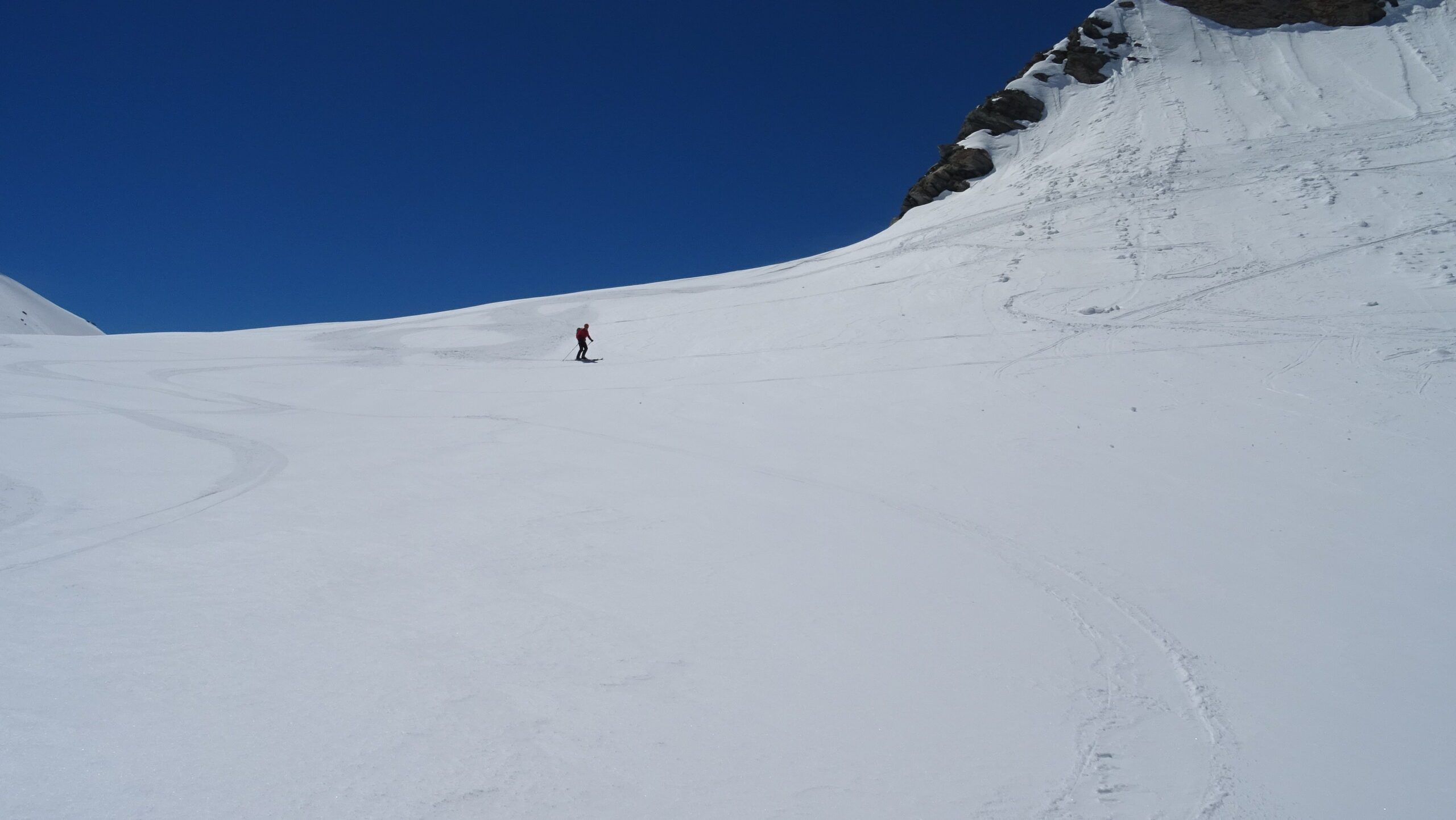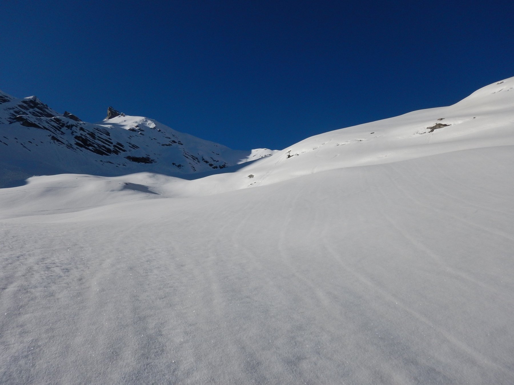 Da effettuarsi a fine stagione con innevamento stabile e assestato, in quanto la via di salita passa in alcuni punti potenzialmente soggetti a scariche dai pendii laterali.