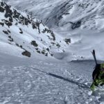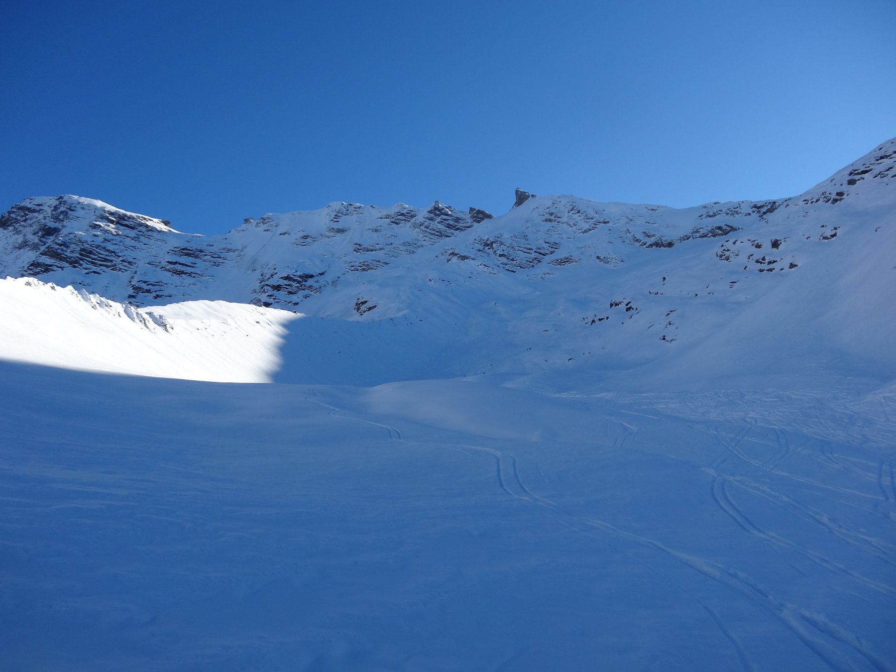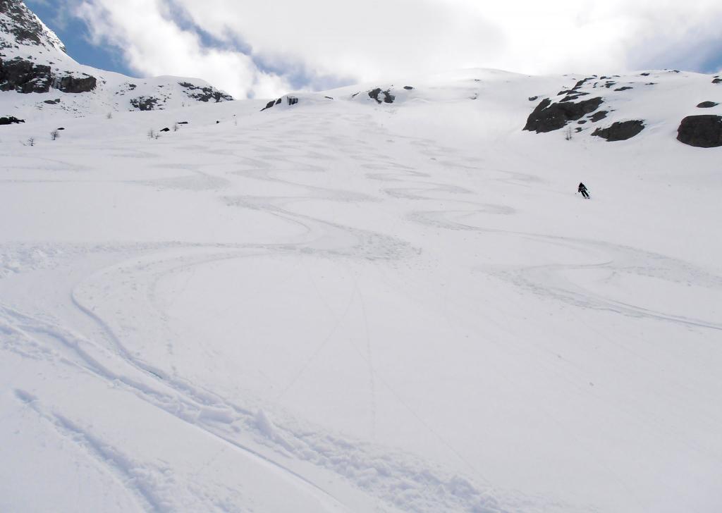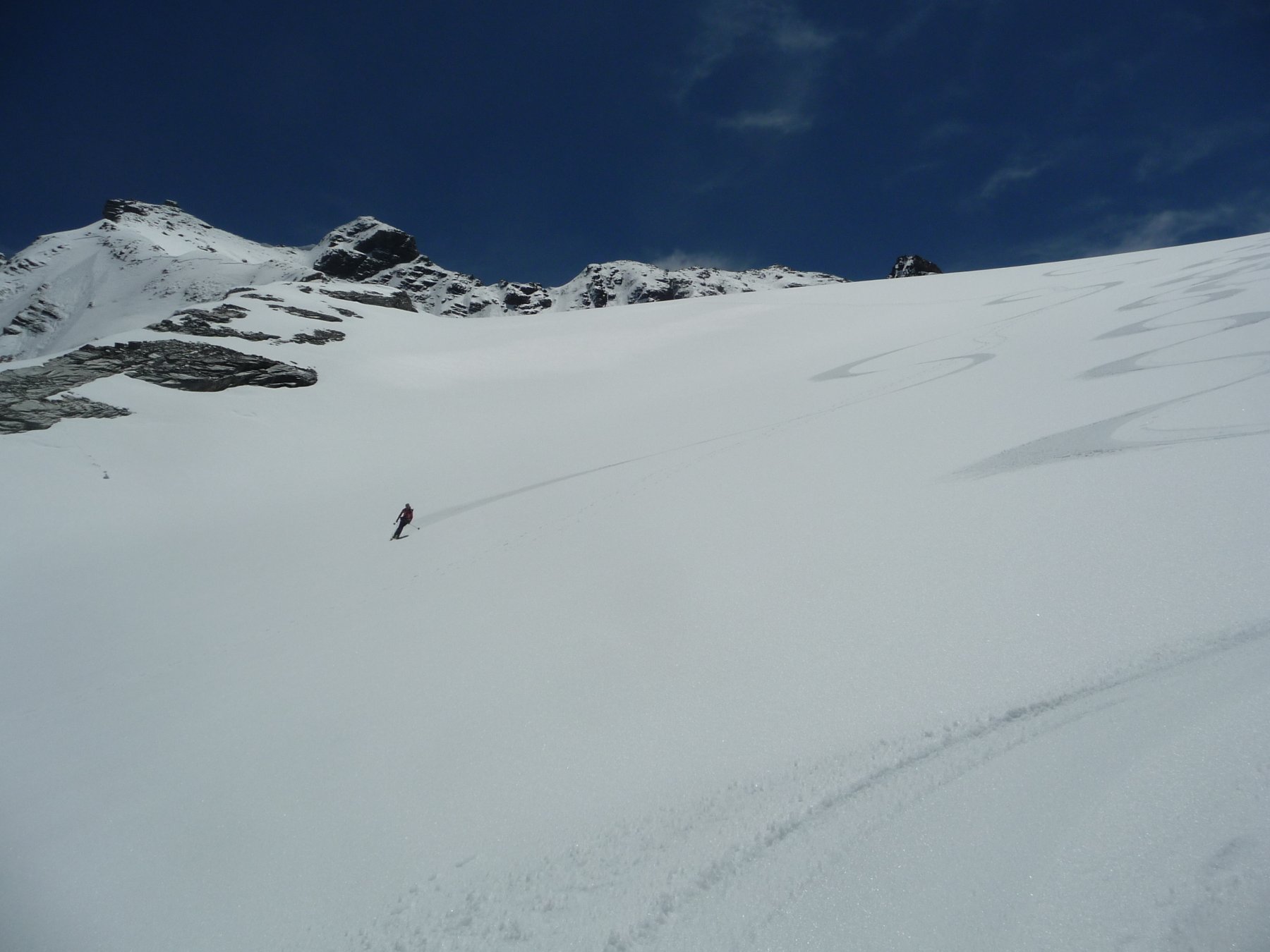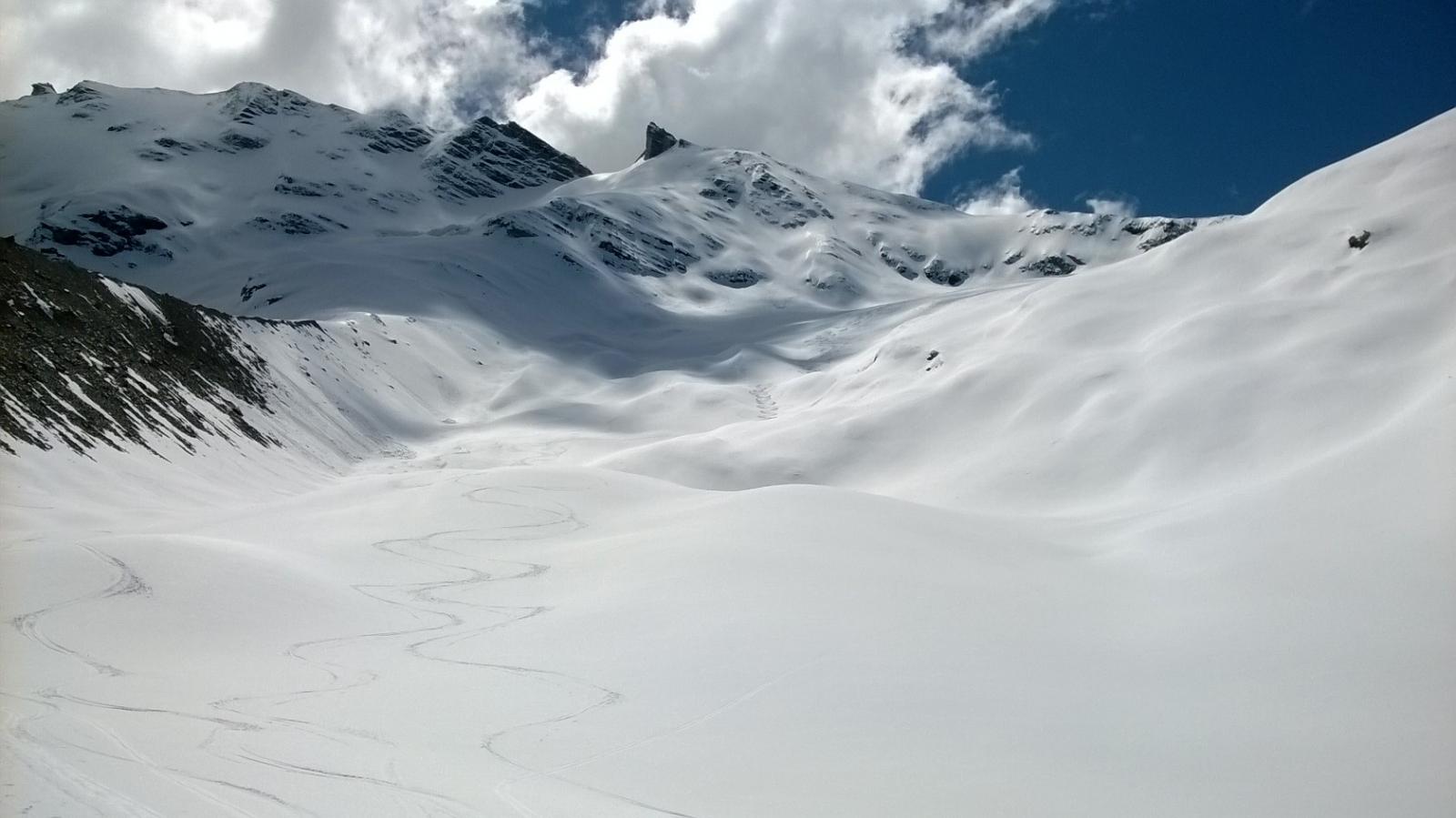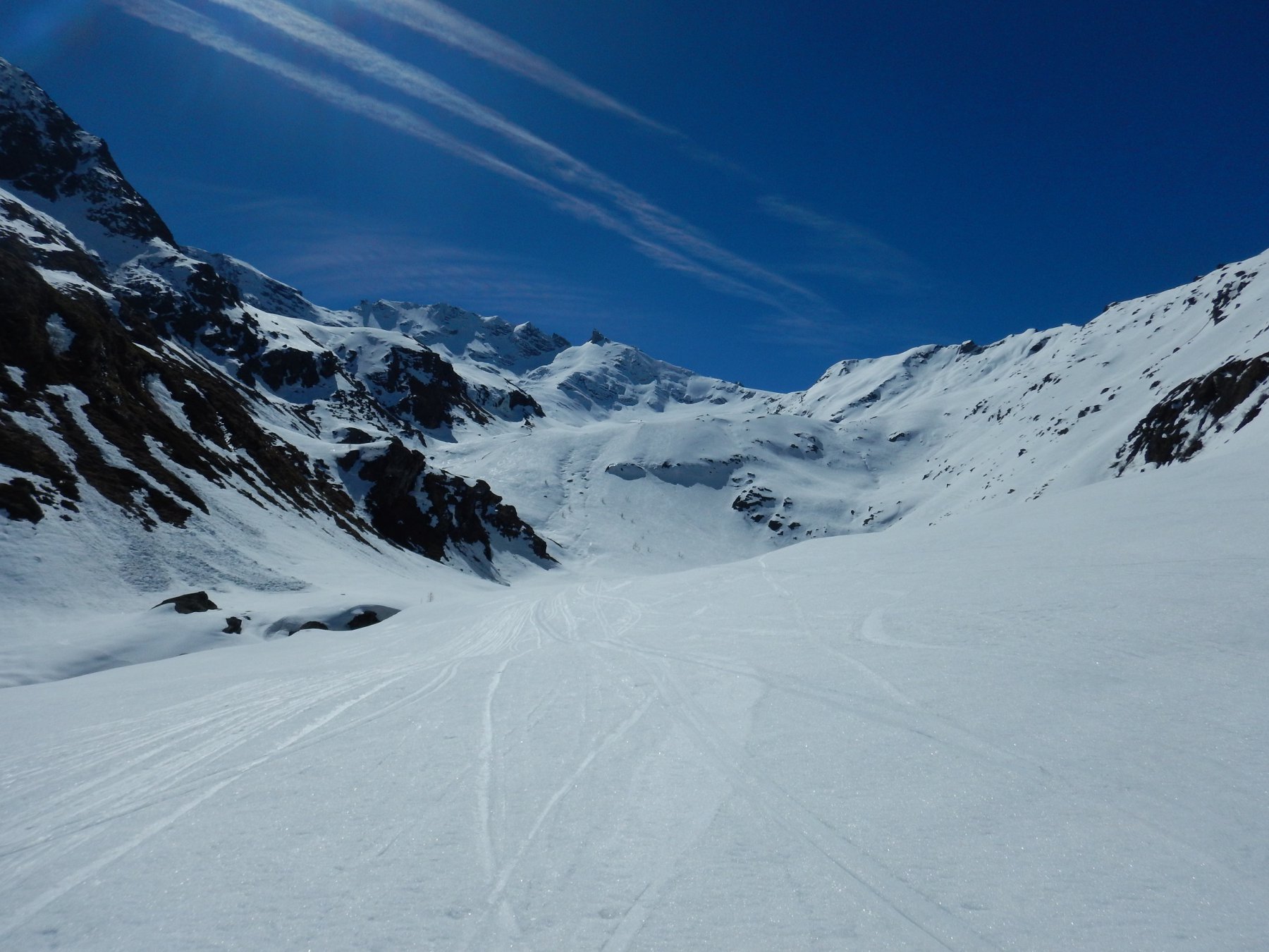 Da effettuarsi a fine stagione con innevamento stabile e assestato, in quanto la via di salita passa in alcuni punti potenzialmente soggetti a scariche dai pendii laterali.