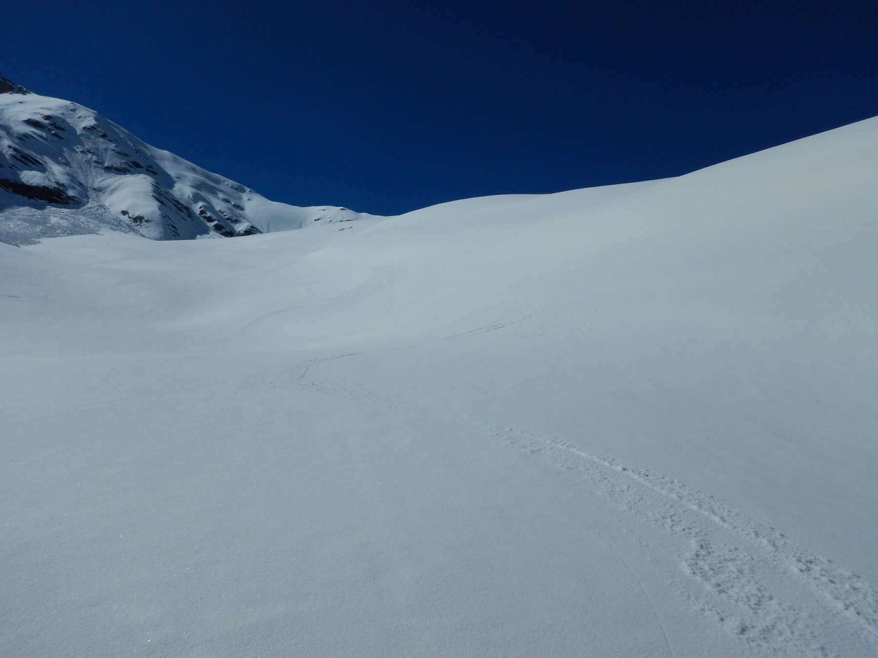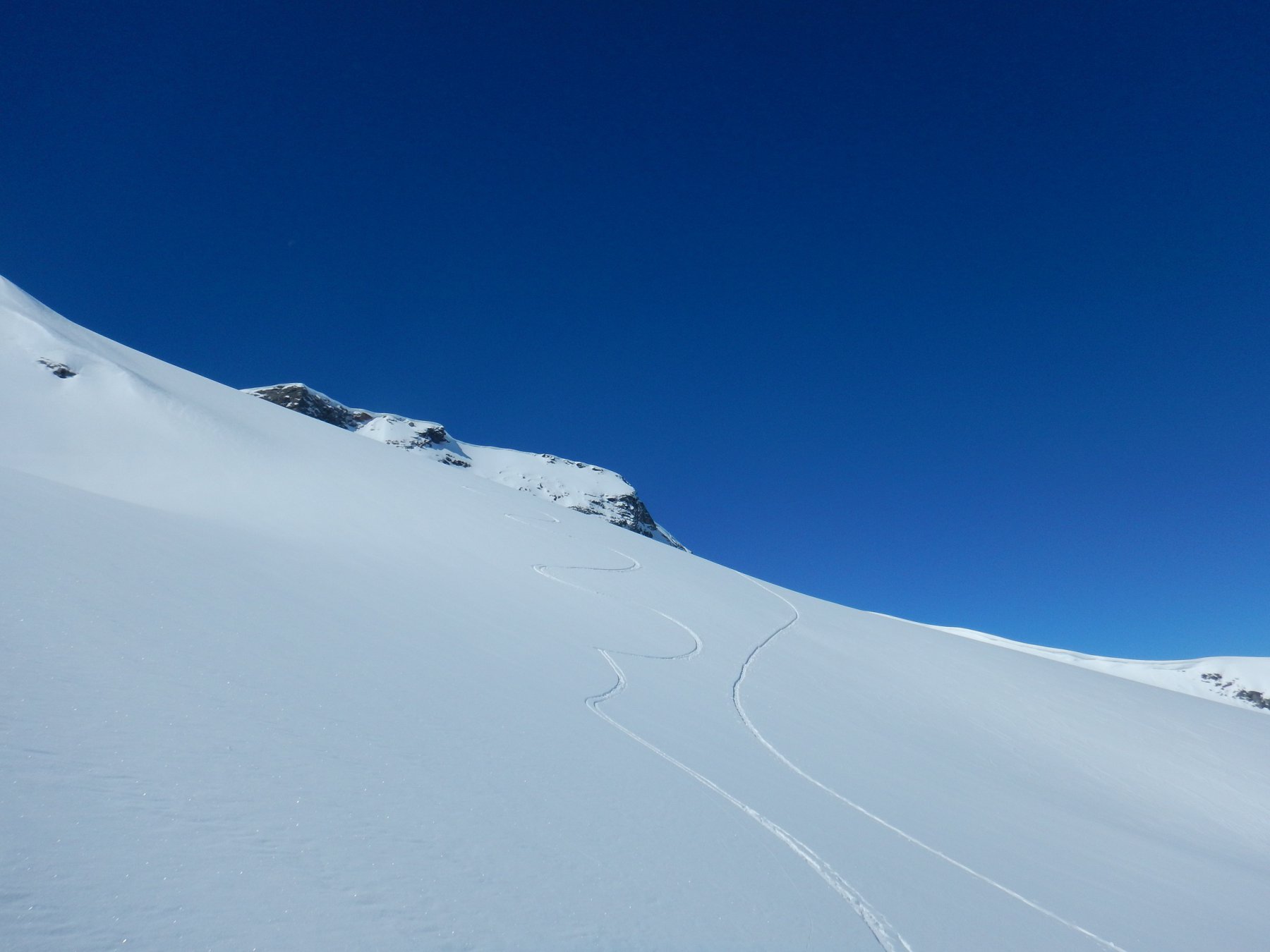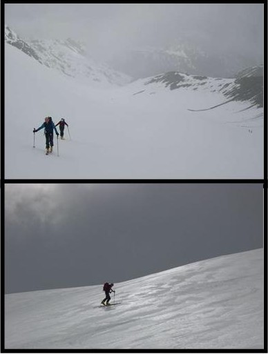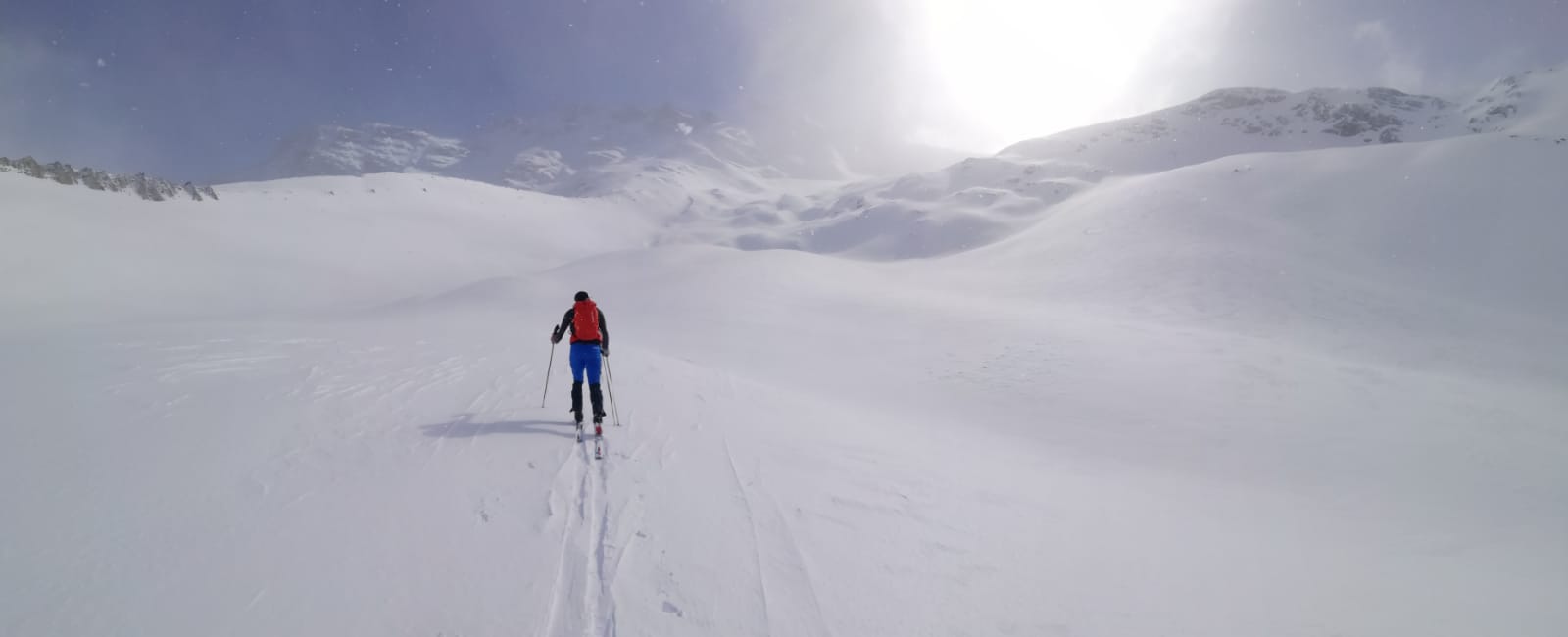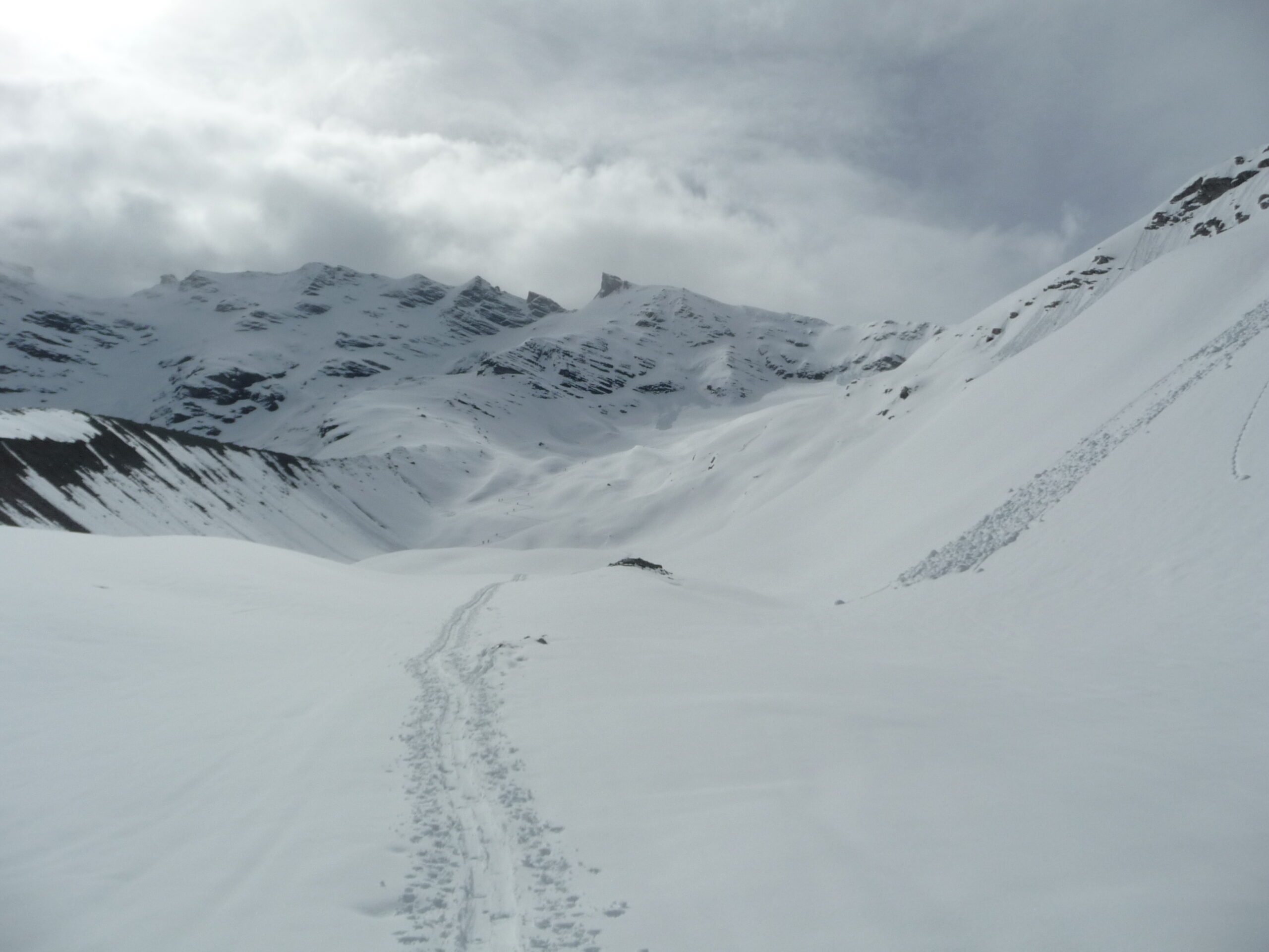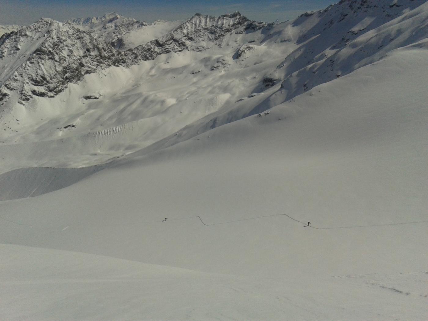 Da effettuarsi a fine stagione con innevamento stabile e assestato, in quanto la via di salita passa in alcuni punti potenzialmente soggetti a scariche dai pendii laterali.