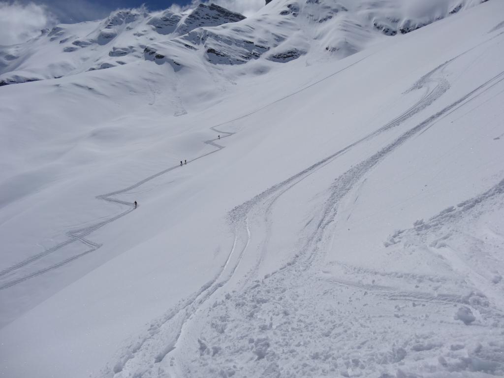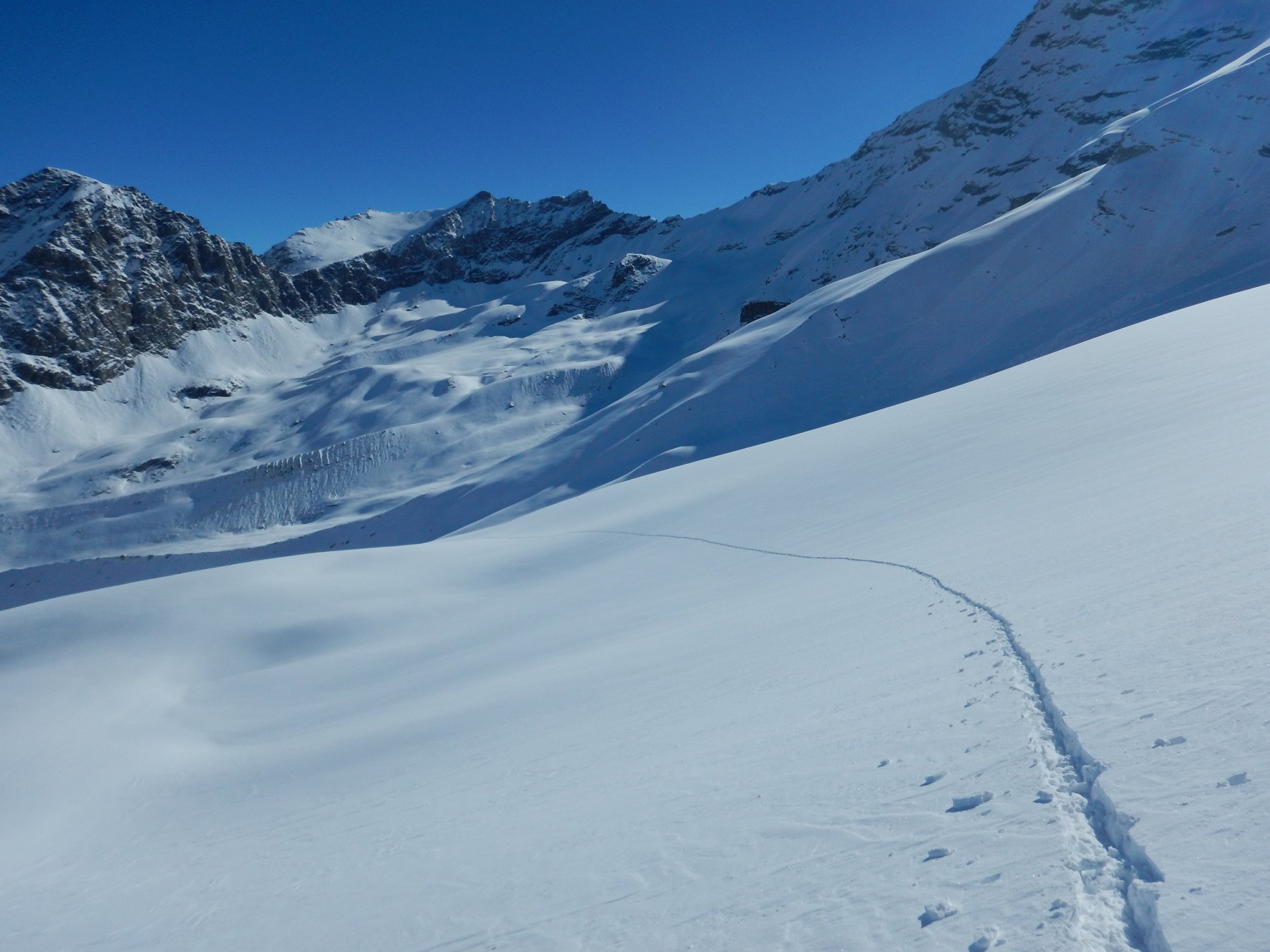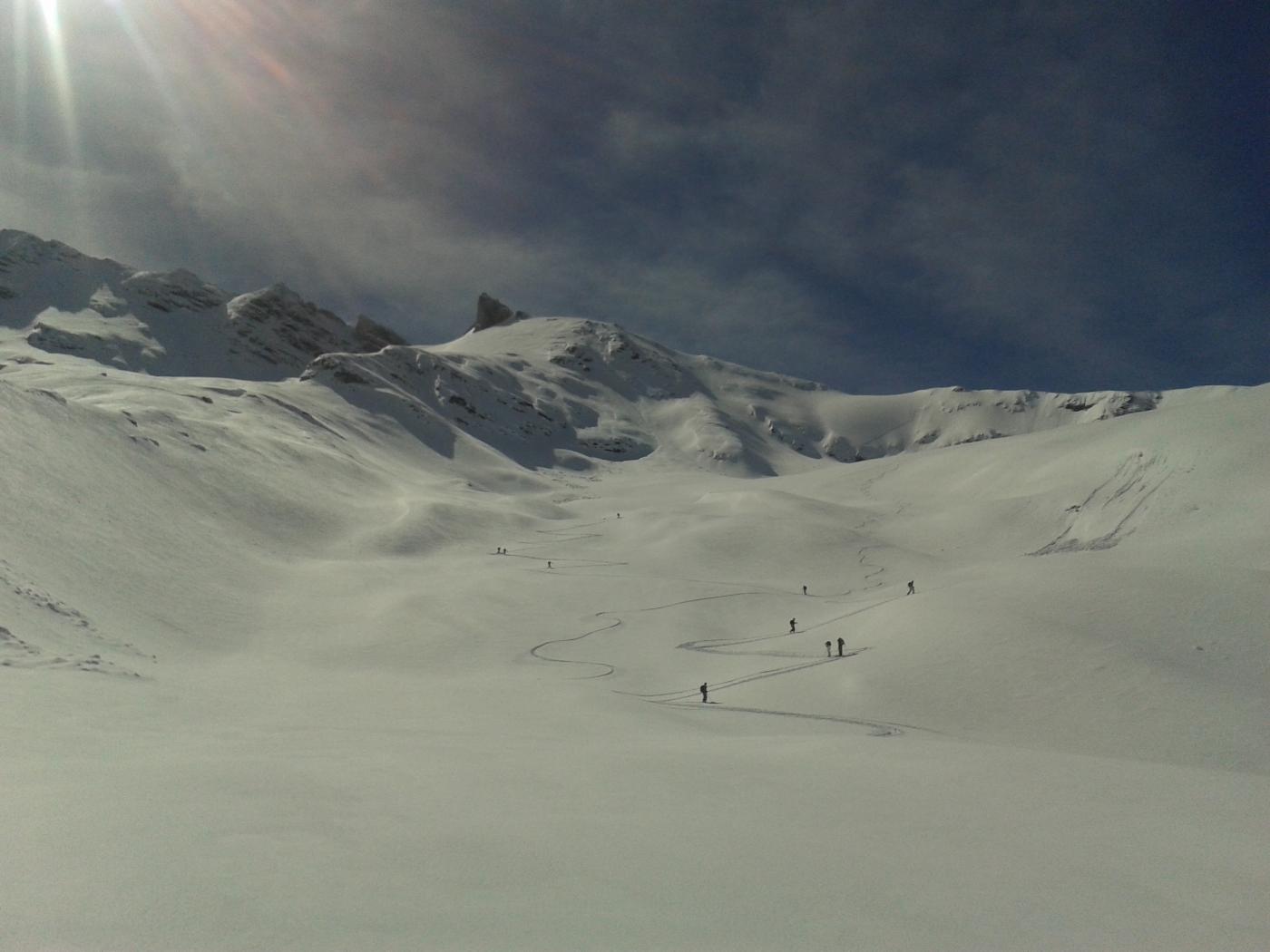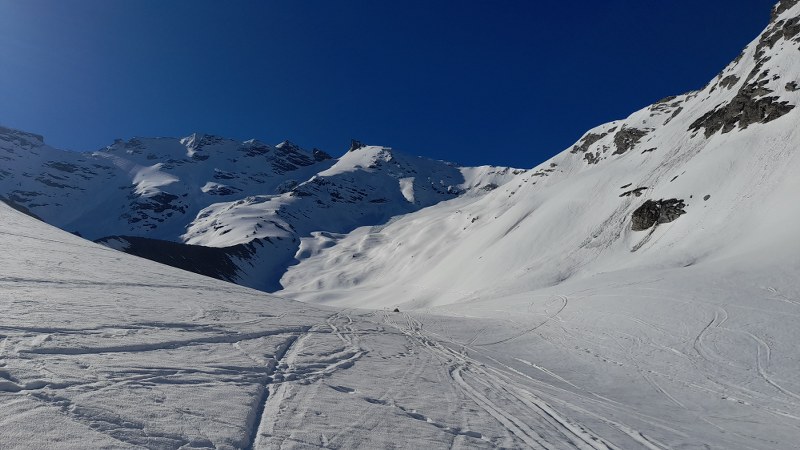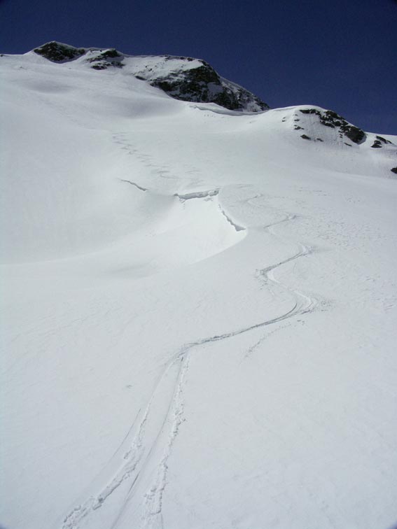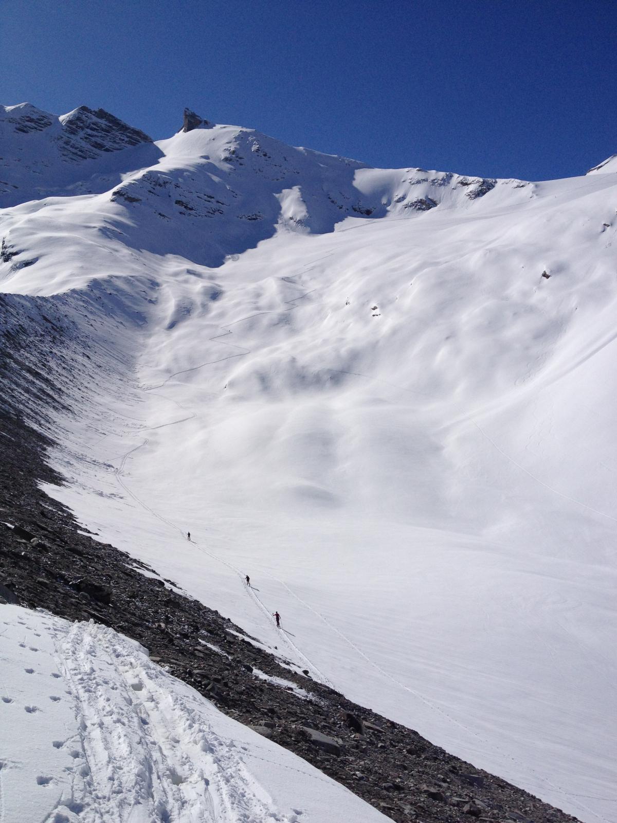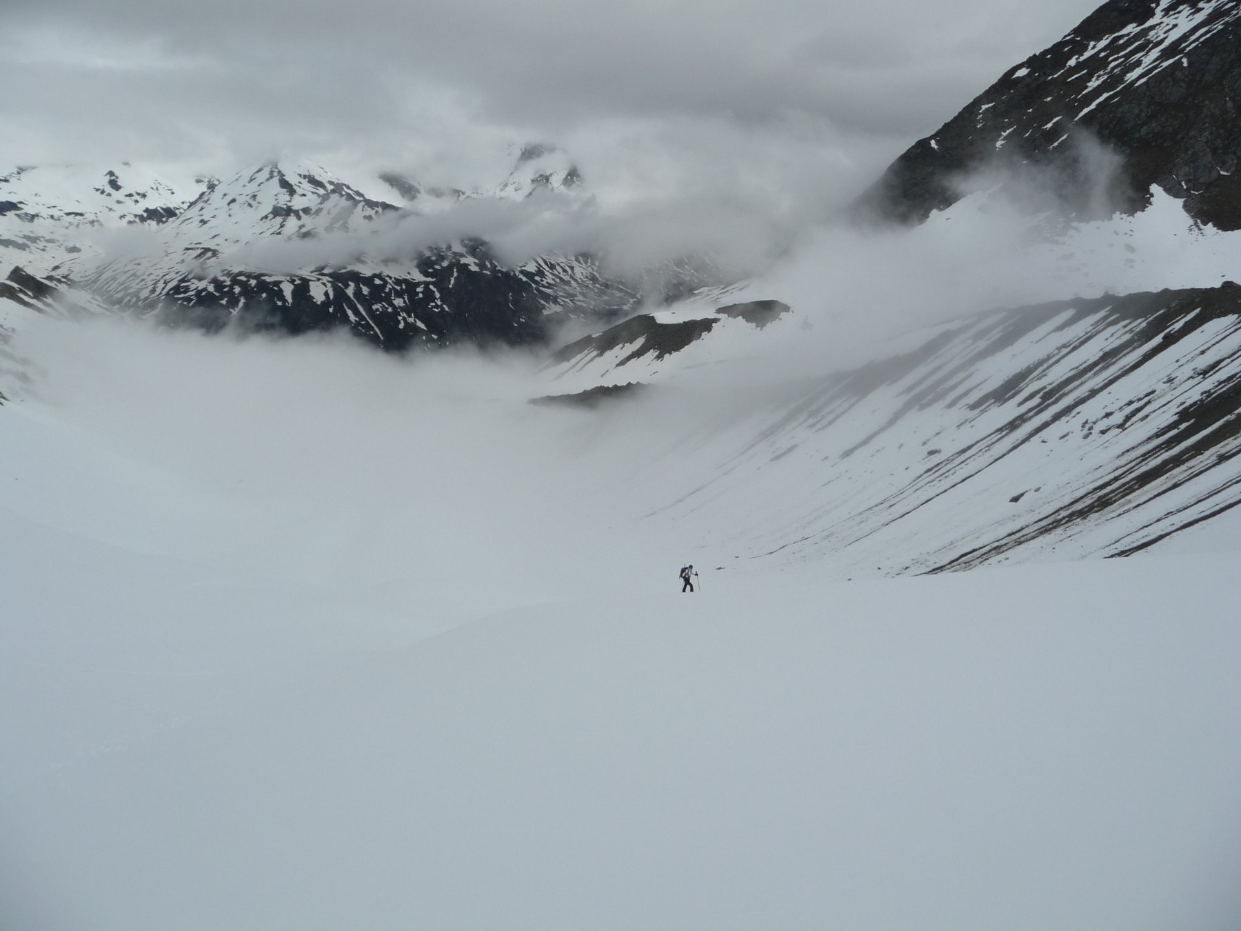 Da effettuarsi a fine stagione con innevamento stabile e assestato, in quanto la via di salita passa in alcuni punti potenzialmente soggetti a scariche dai pendii laterali.