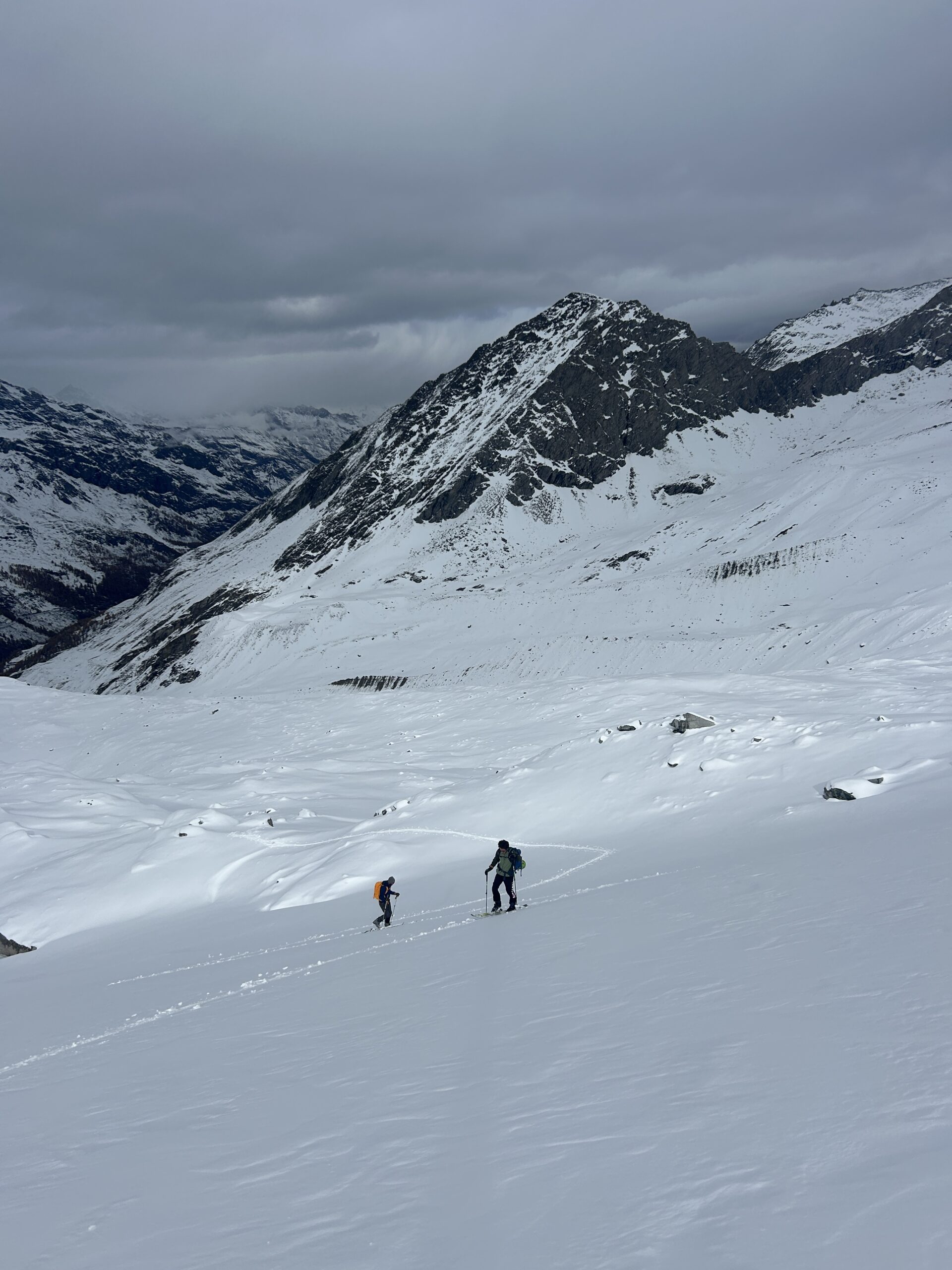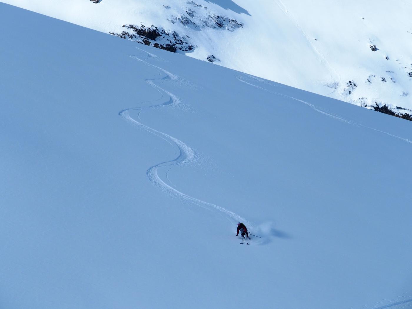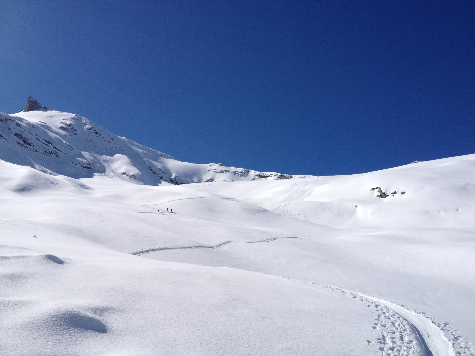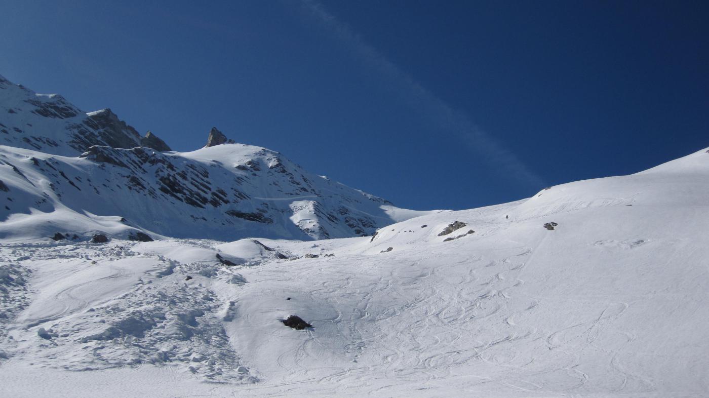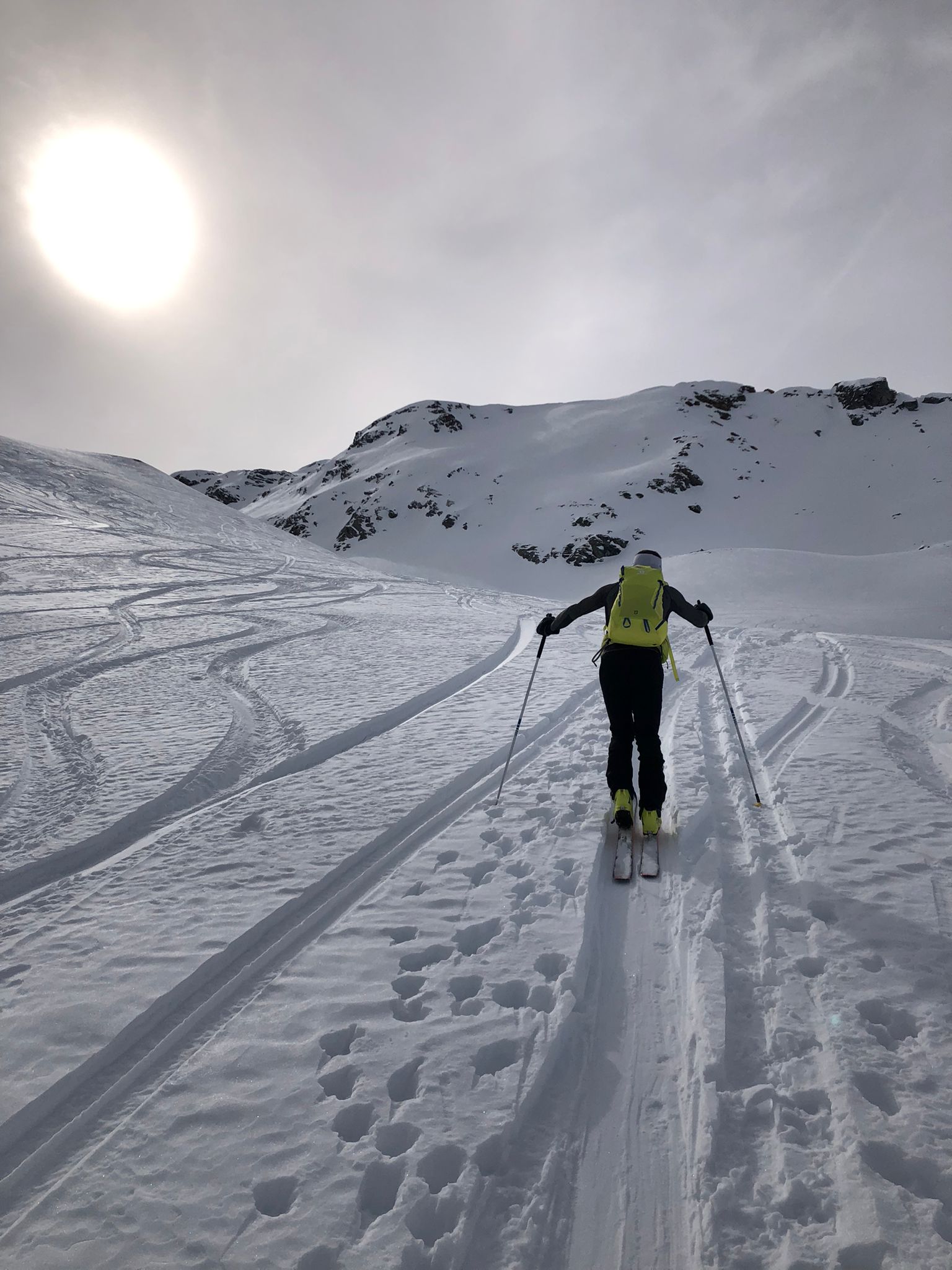 Da effettuarsi a fine stagione con innevamento stabile e assestato, in quanto la via di salita passa in alcuni punti potenzialmente soggetti a scariche dai pendii laterali.