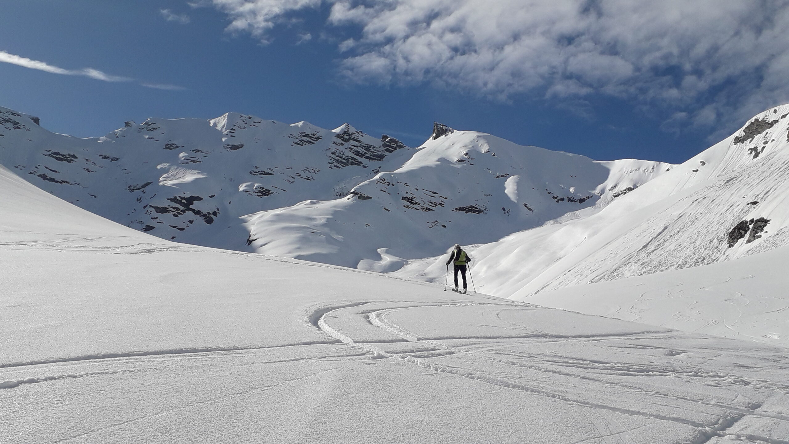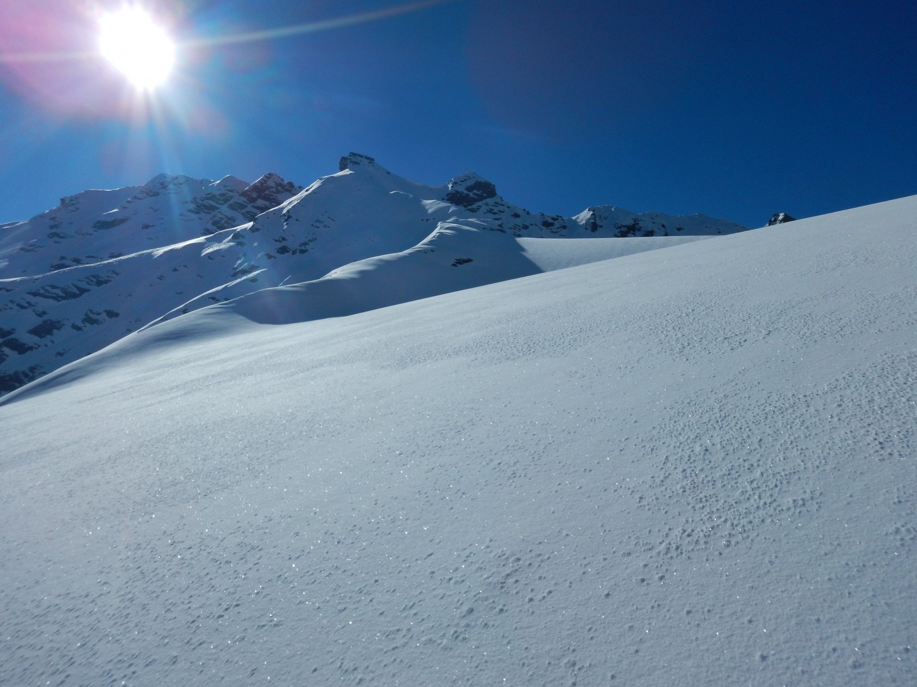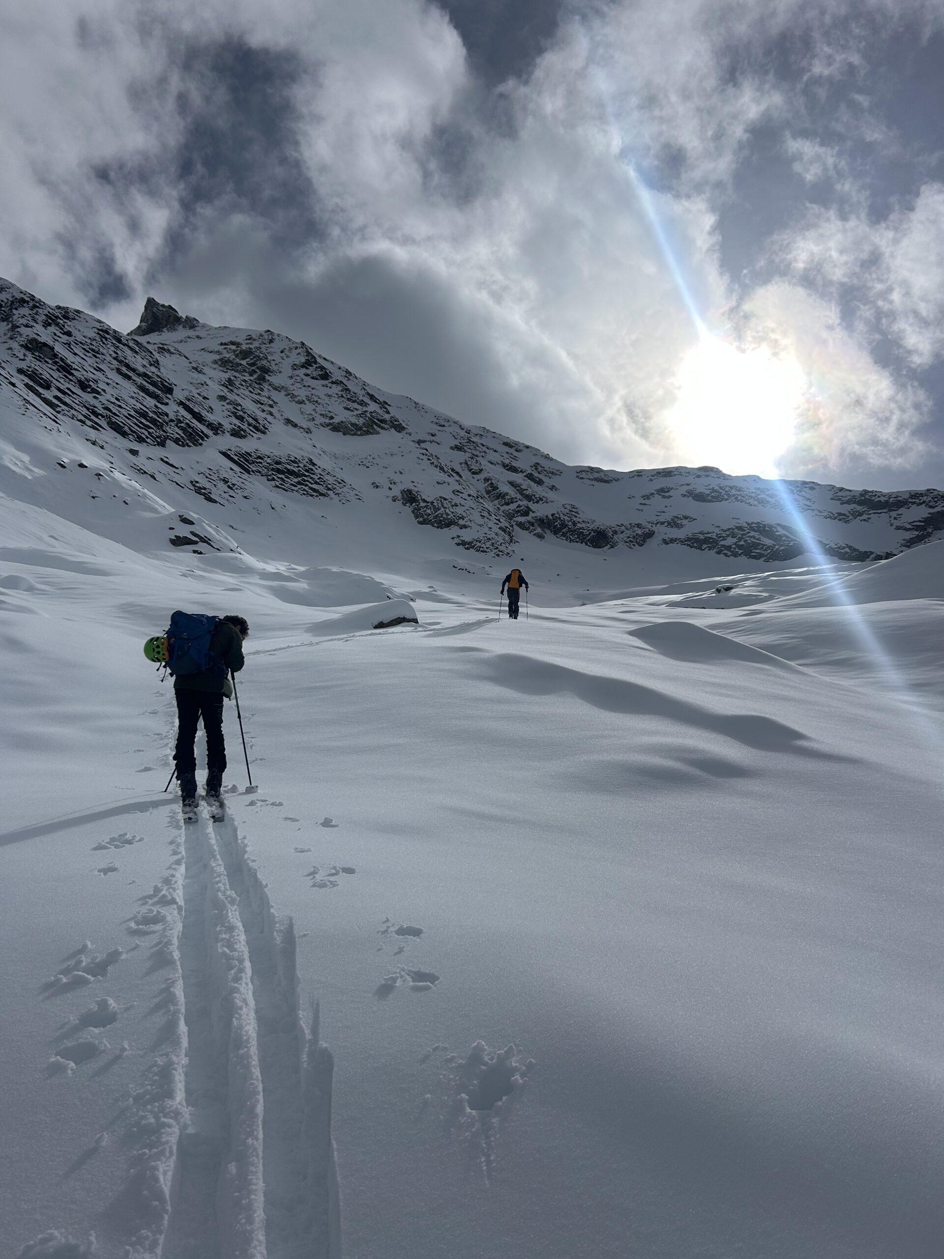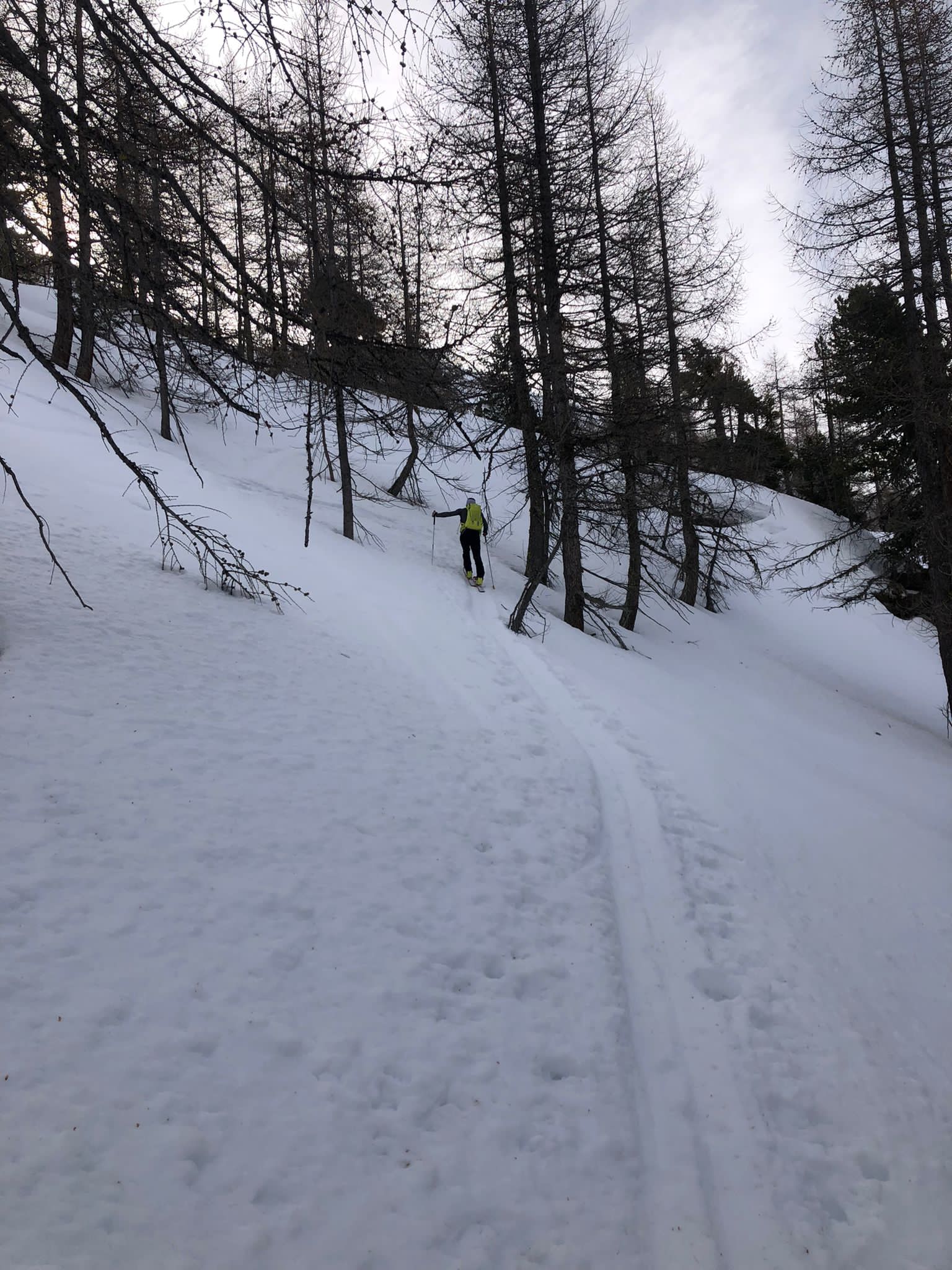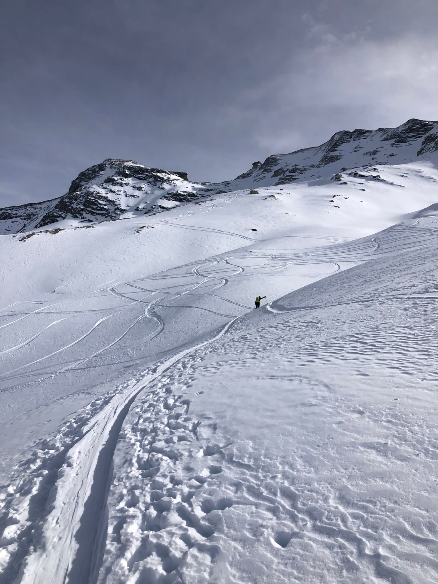 Da effettuarsi a fine stagione con innevamento stabile e assestato, in quanto la via di salita passa in alcuni punti potenzialmente soggetti a scariche dai pendii laterali.