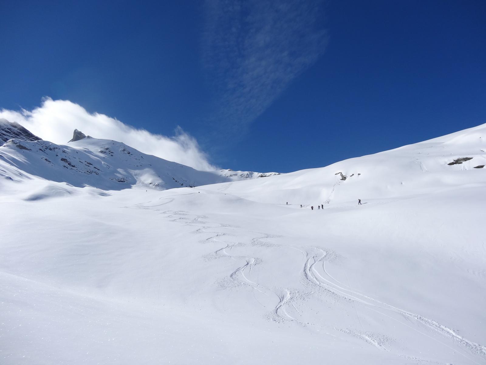 Splendida! Si arriva ancora con gli sci alla macchina(per poco). Partito verso le 6, con ottimo rigelo, nella prima parte leggera spolverata su fondo duro, mentre nella parte alta bella neve polverosa. Discesa iniziata verso le 10. Ottima dall’inizio alla fine, neve fresca nella prima parte, poi primaverile ancora dura, che non aveva smollato neanche nel bosco. Molto bella.